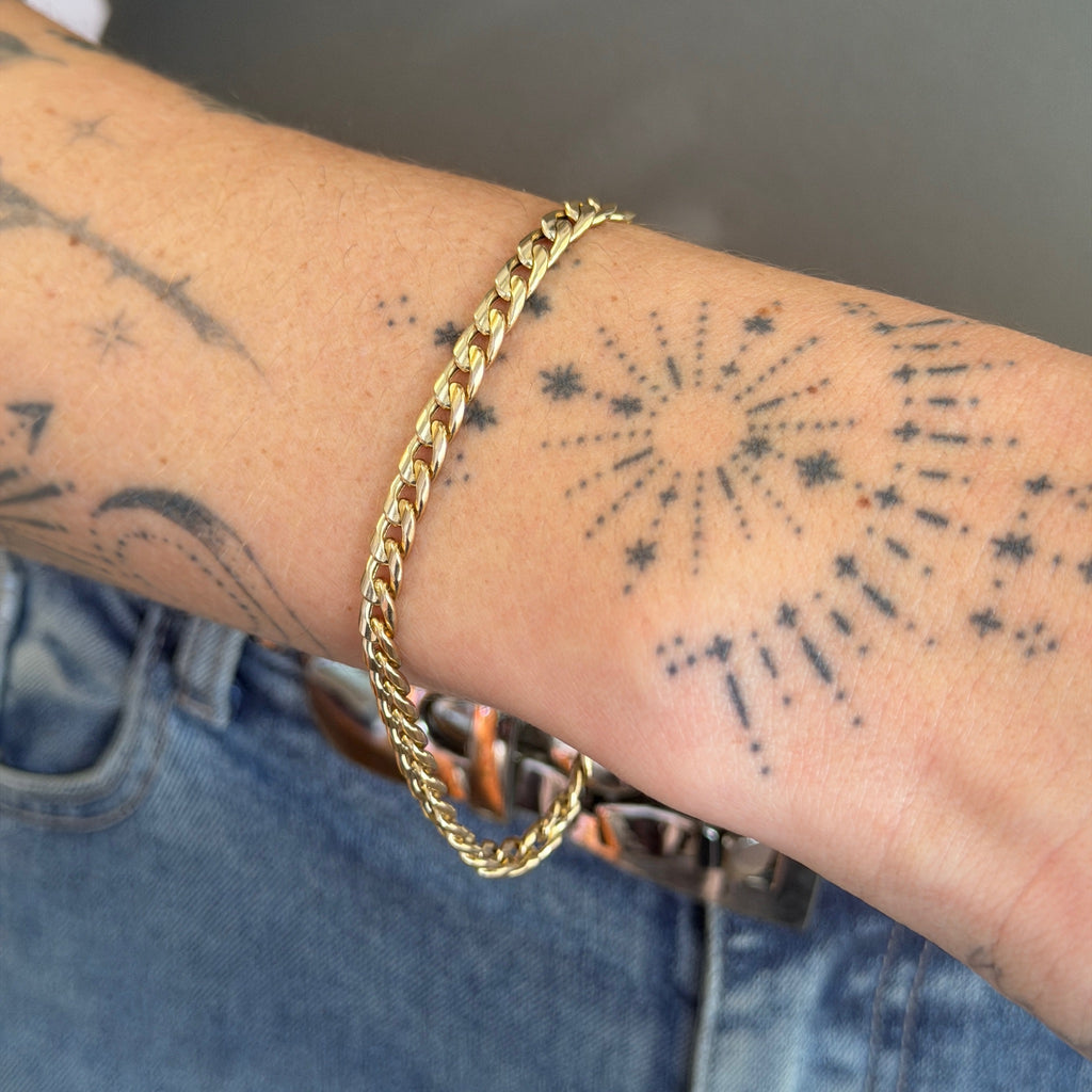 Vintage 14K Yellow Gold Solid Fancy Curb Bracelet