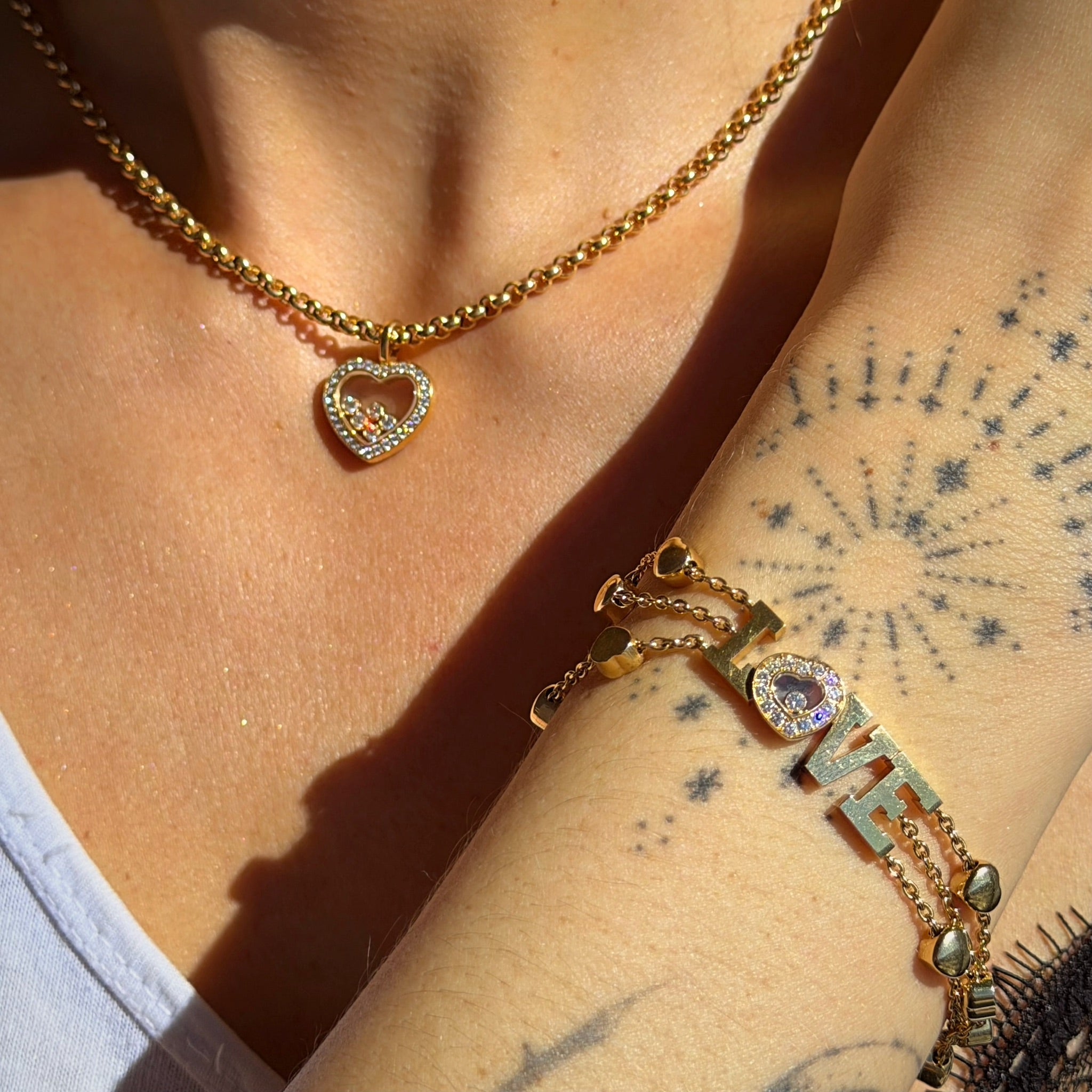 The signature Happy Diamonds design allows a free-floating diamond to dance playfully within the heart, catching the light with every graceful movement.