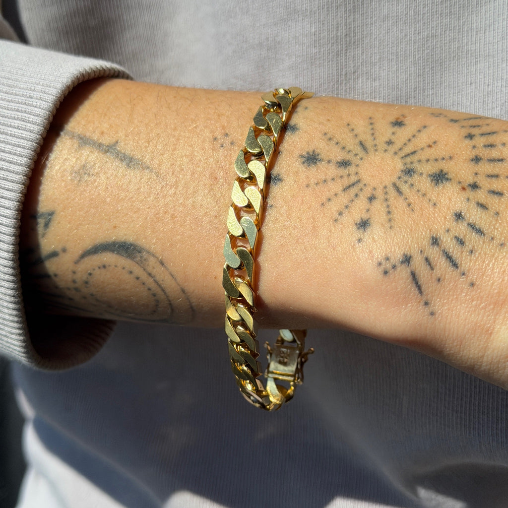 Vintage 18K Yellow Gold Solid Curb Bracelet.
