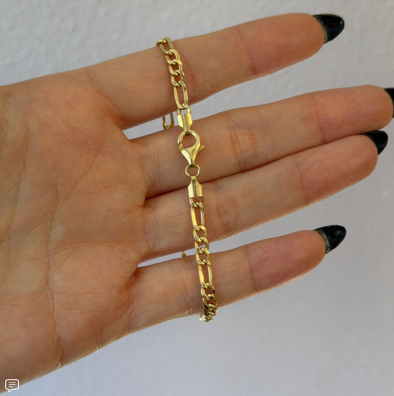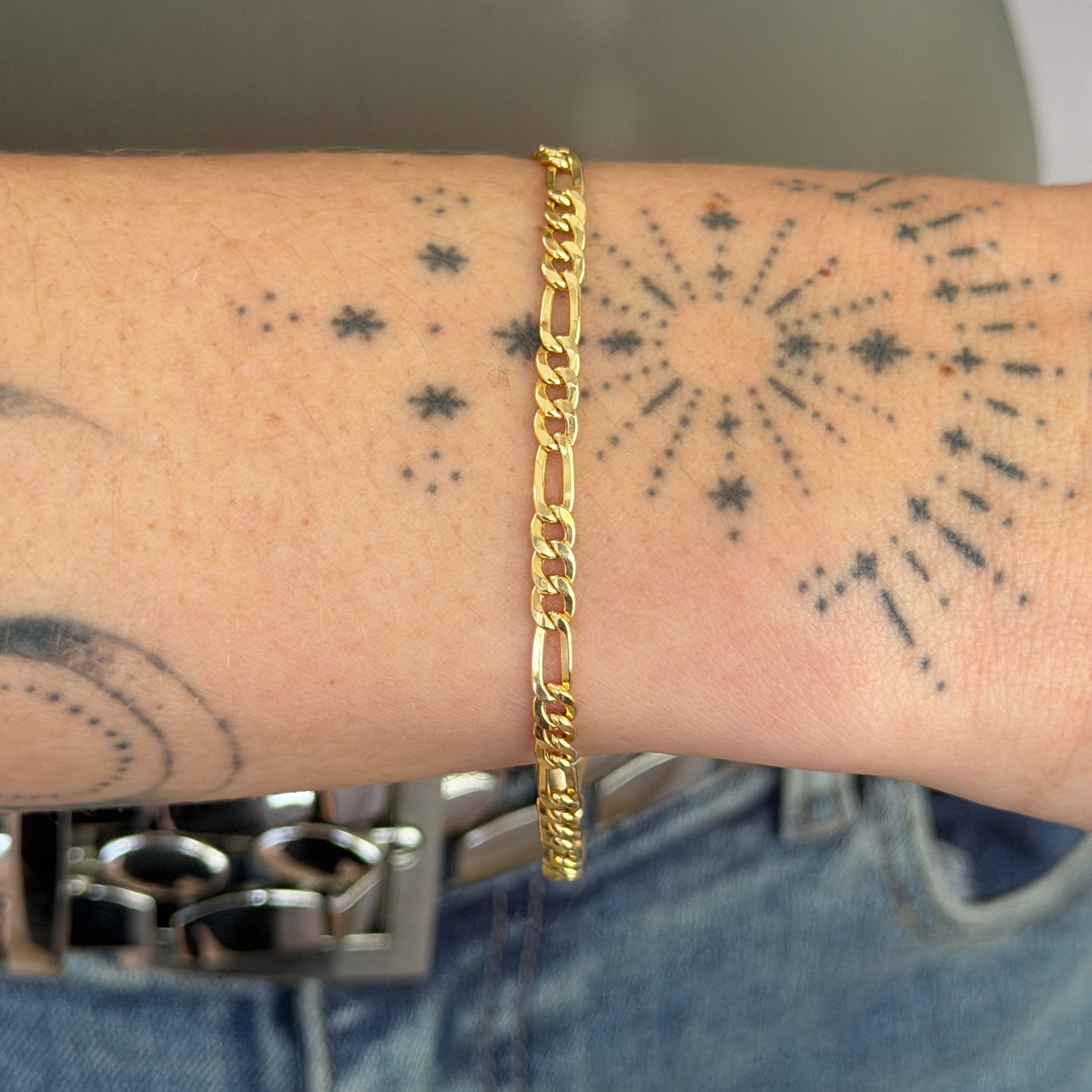 18K Figaro Bracelet. Vintage 18K Yellow Gold Italian Figaro Bracelet