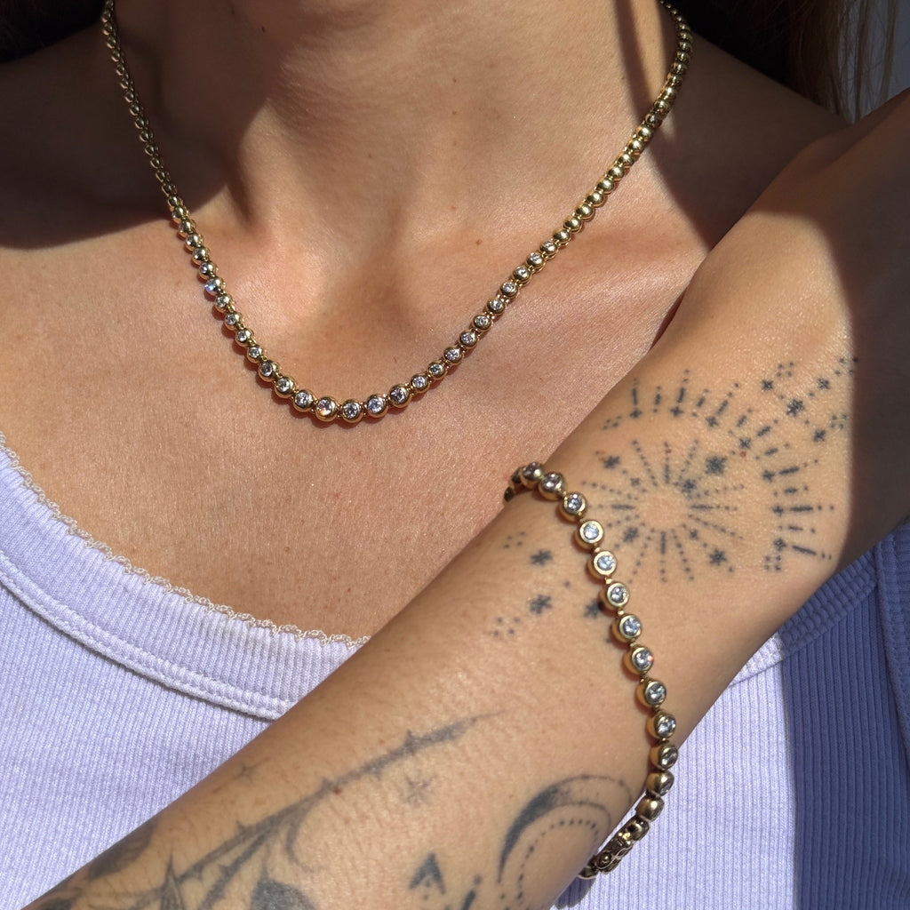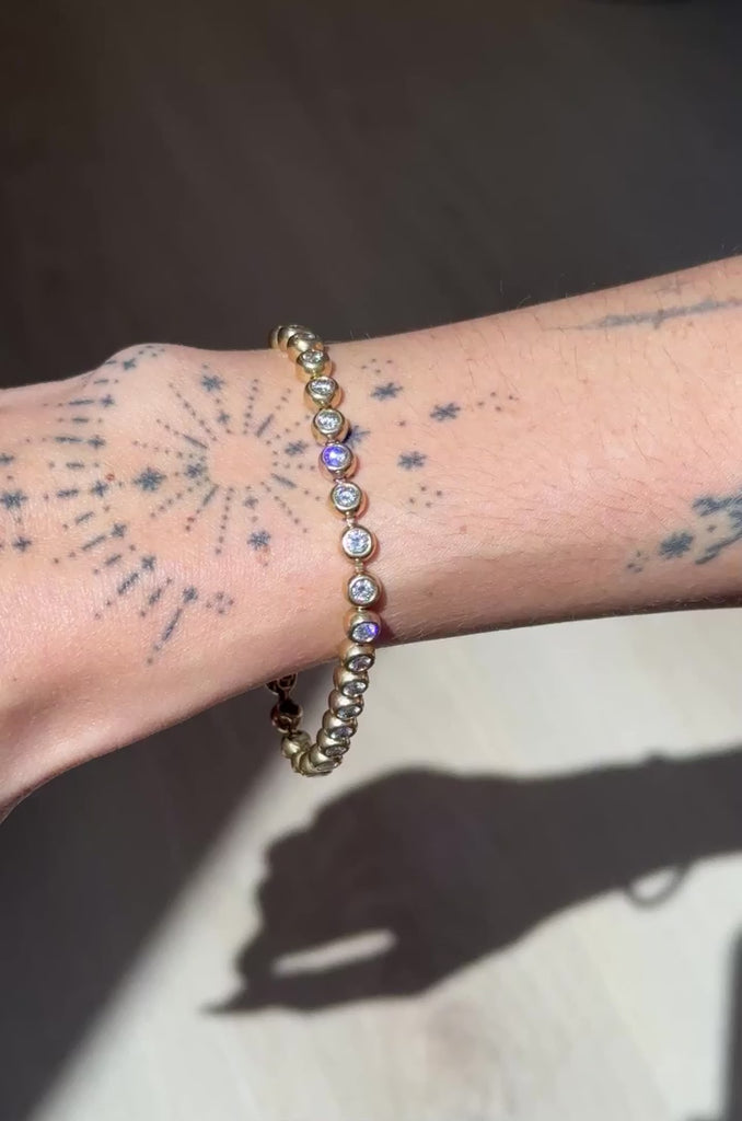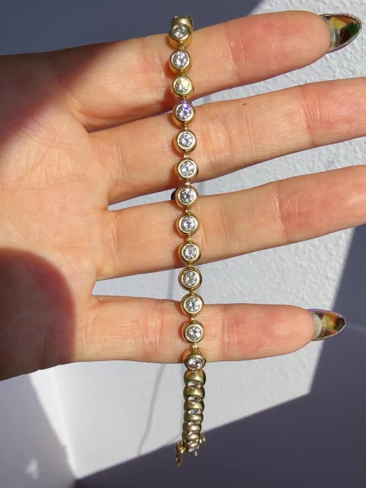 Vintage 14K Yellow Gold Diamond Bezel Tennis Bracelet