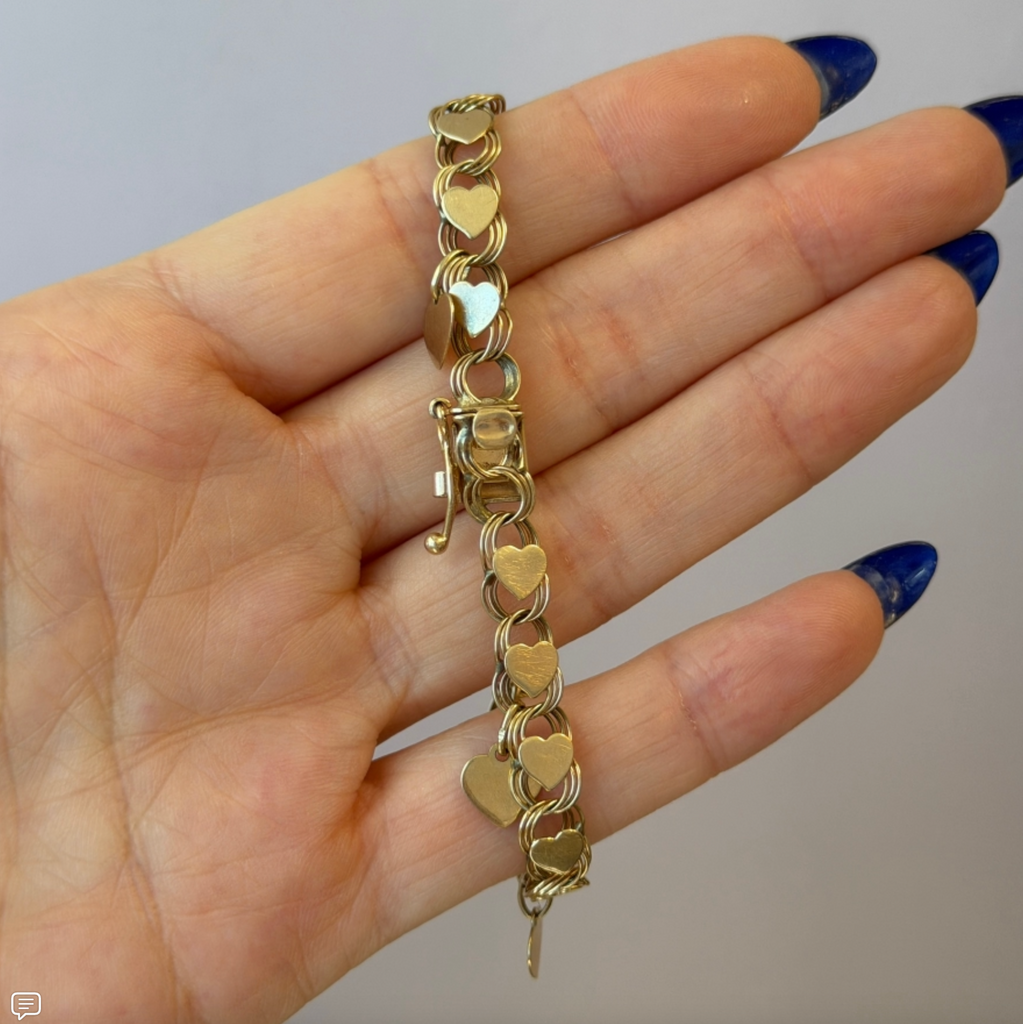 Vintage 14K Yellow Gold Heart Charm Bracelet with 6 Dangling Hearts