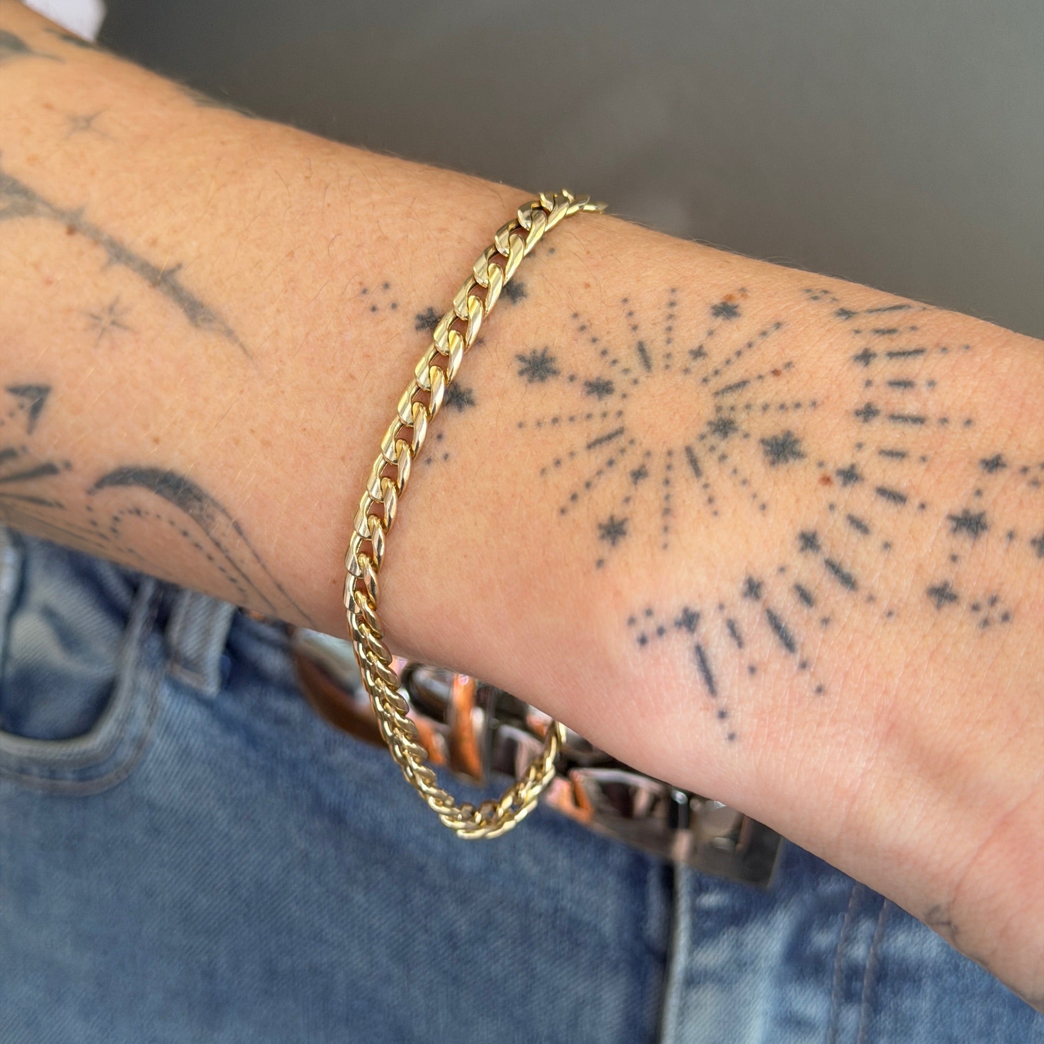 Vintage Italian 14K Yellow Gold Semi Hollow Curb Bracelet