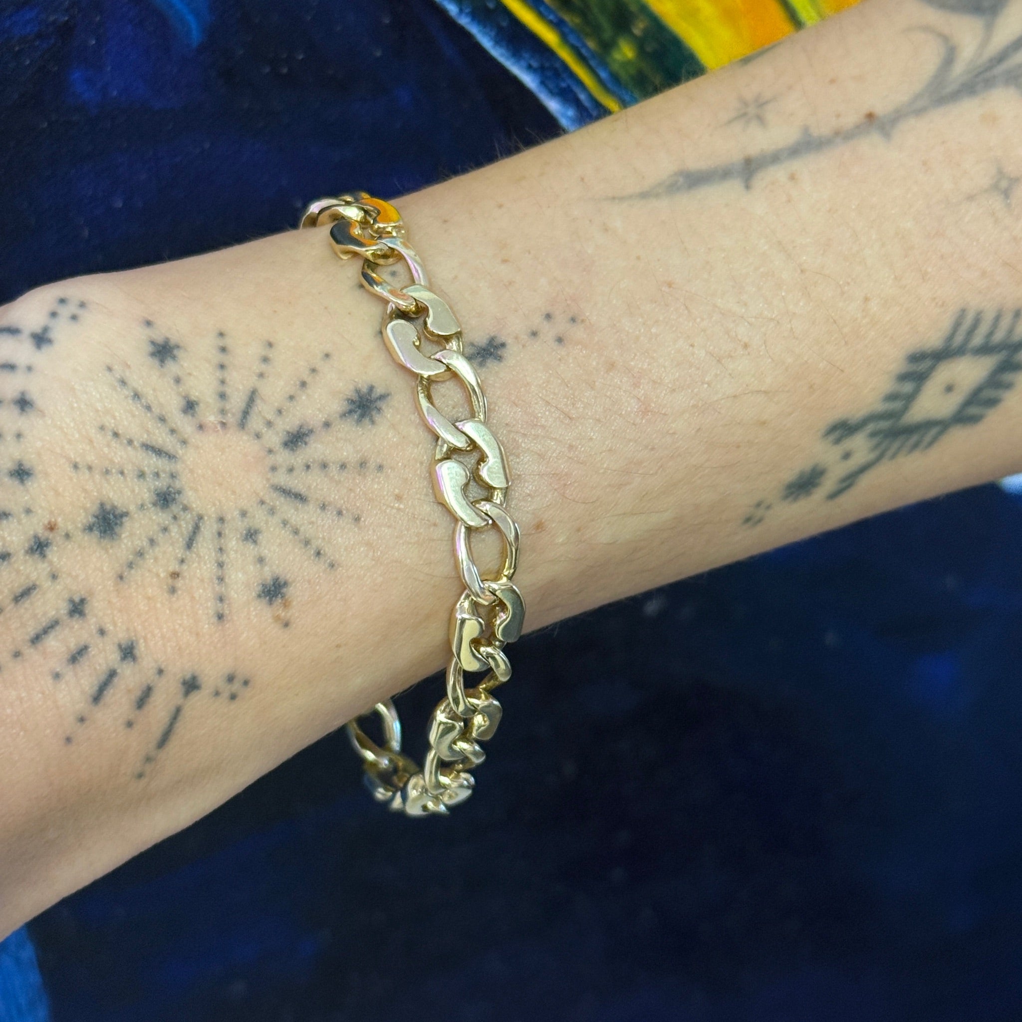 Vintage 14K Yellow Gold Solid Fancy Curb Bracelet