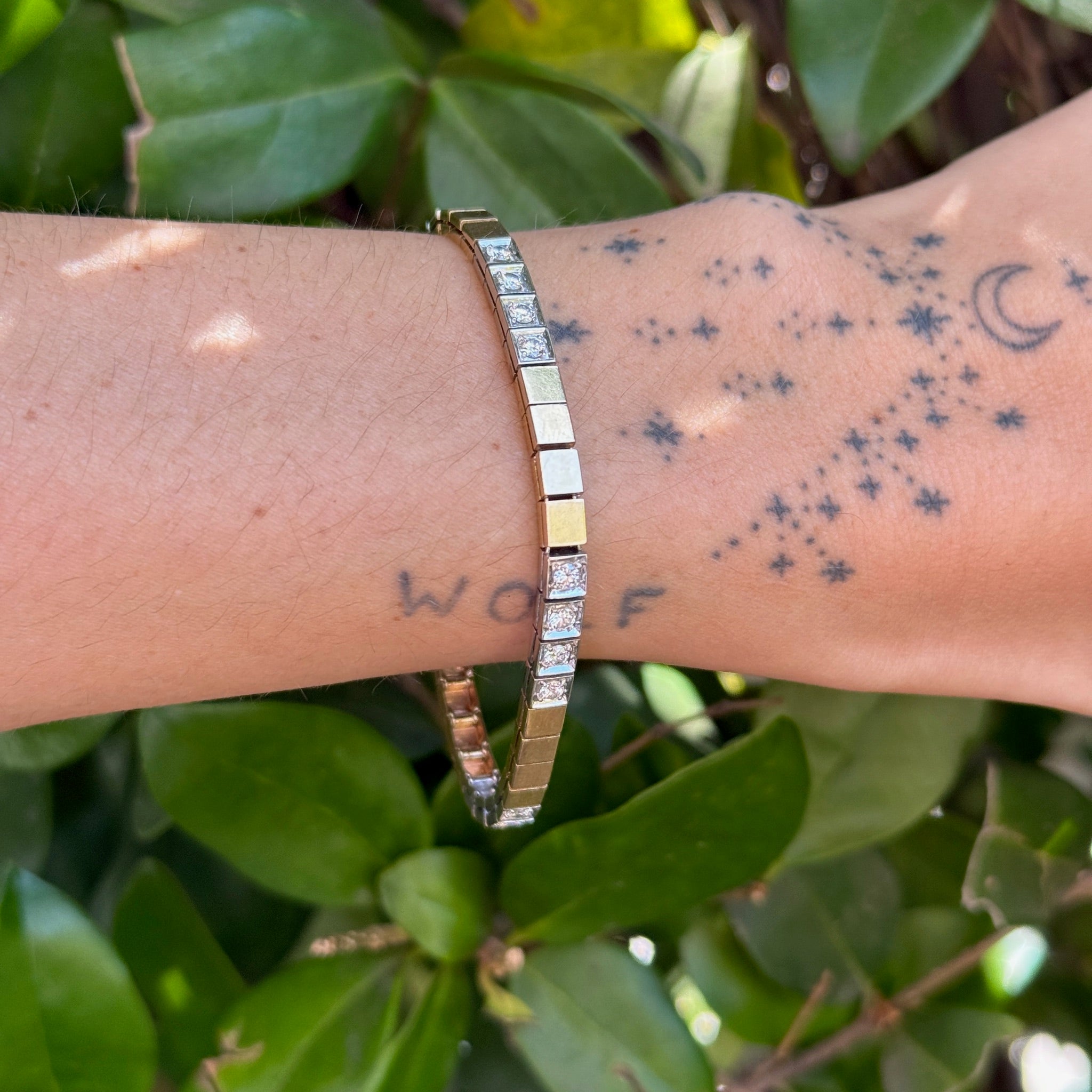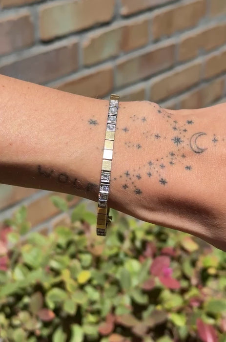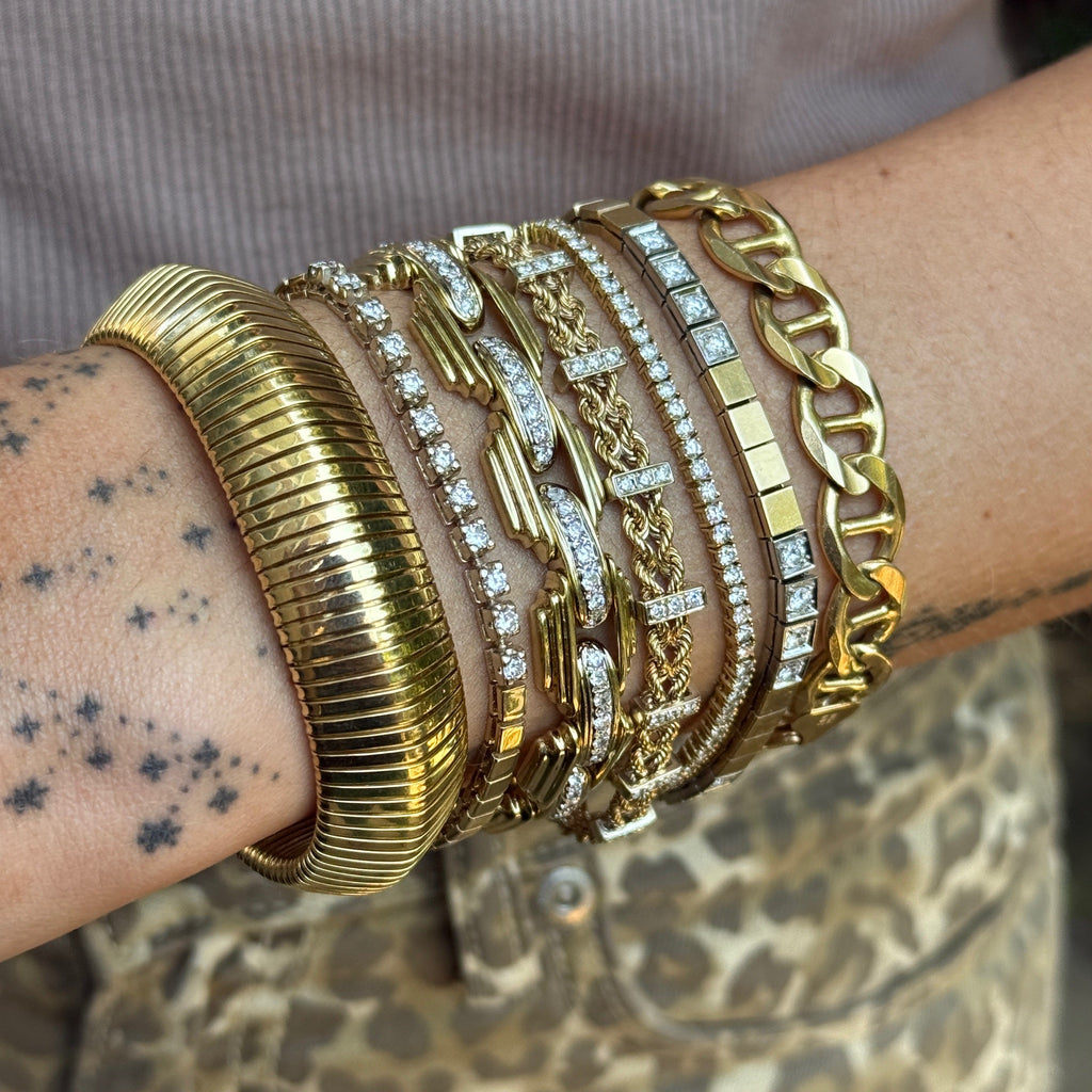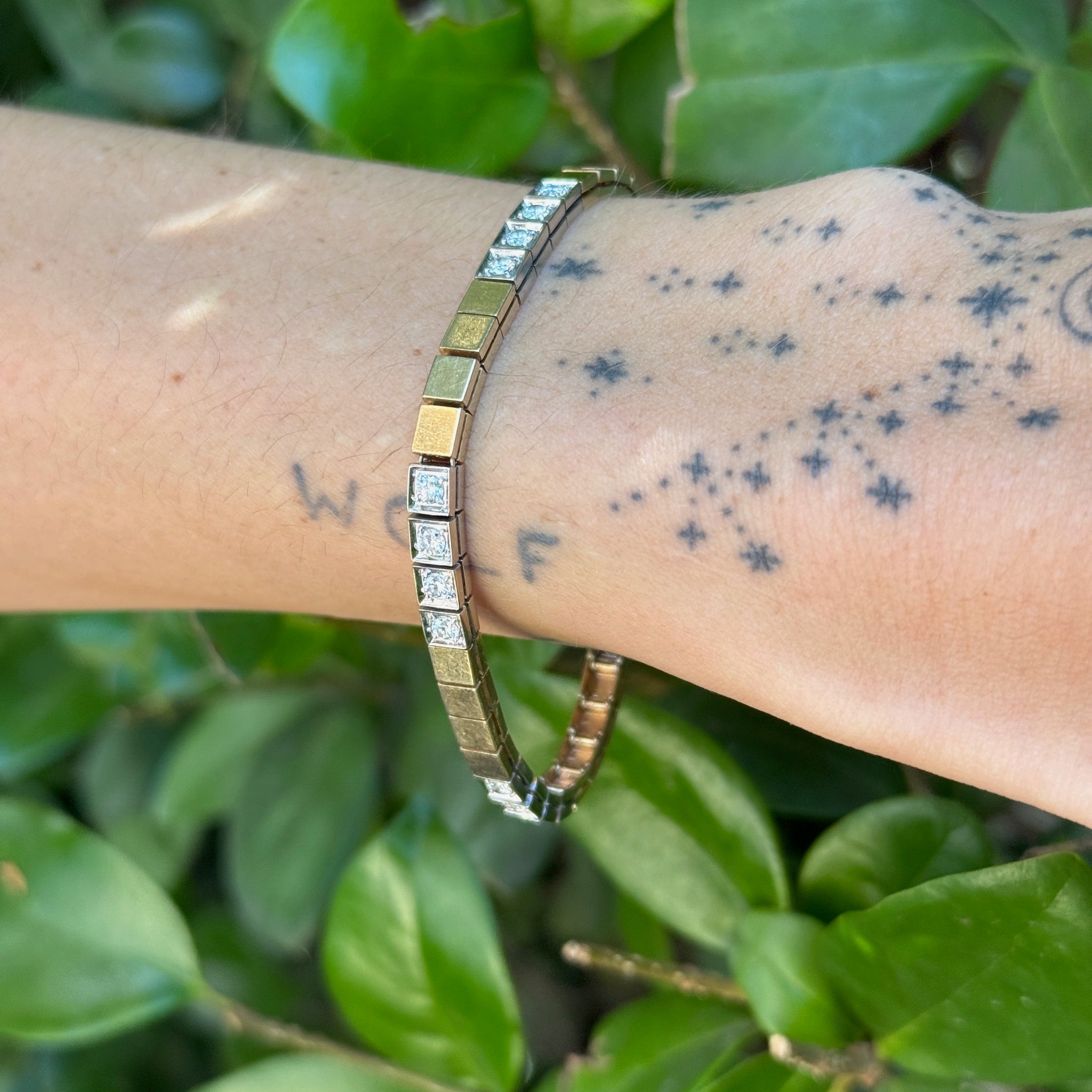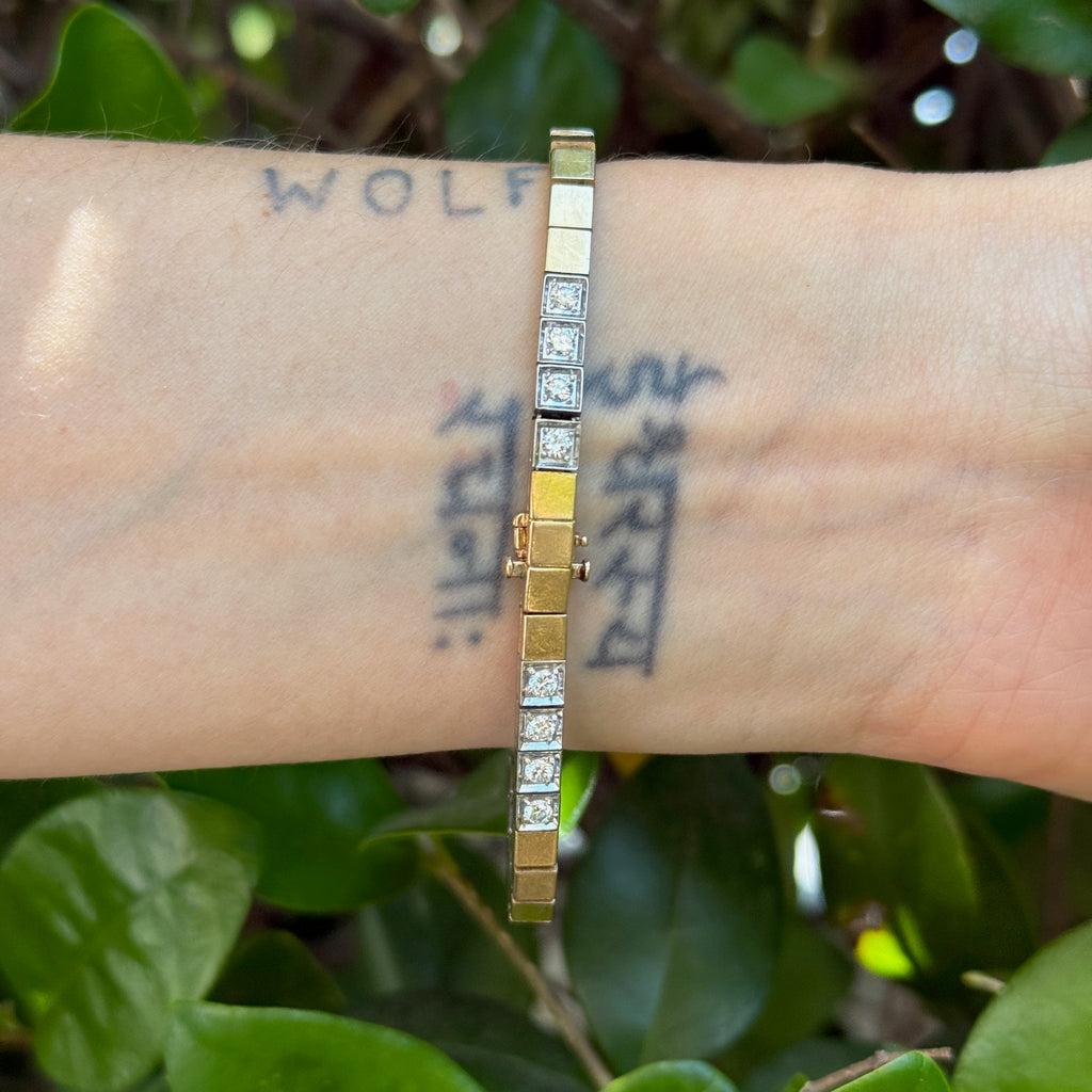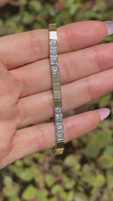 Vintage 14K Yellow Gold Square Bead and Diamond Tennis Bracelet
