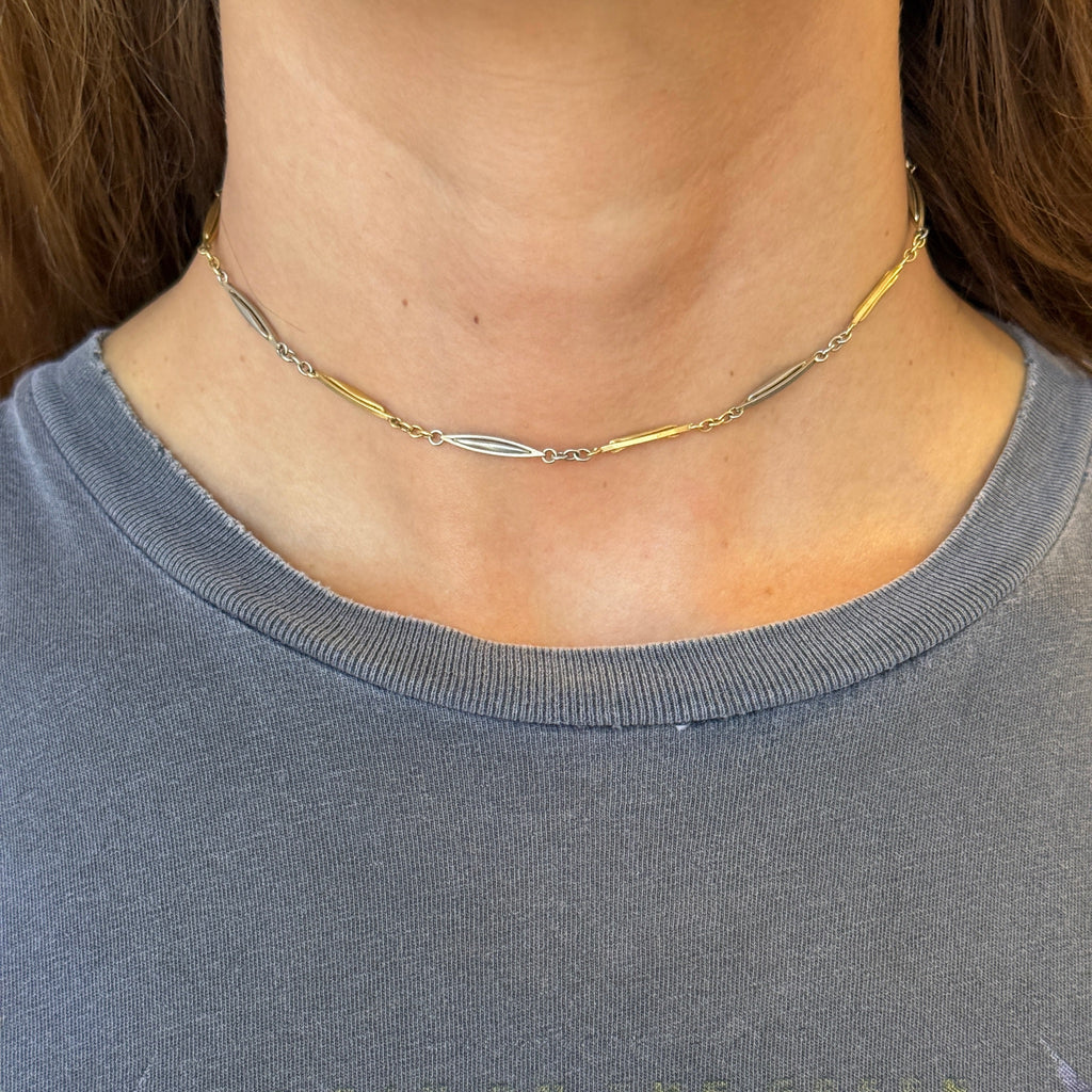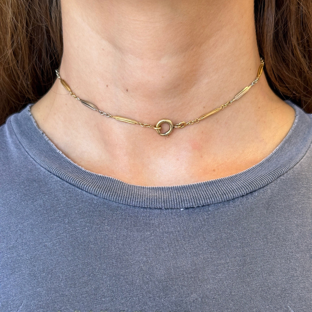 Vintage 18K Yellow and White Gold Watch Chain