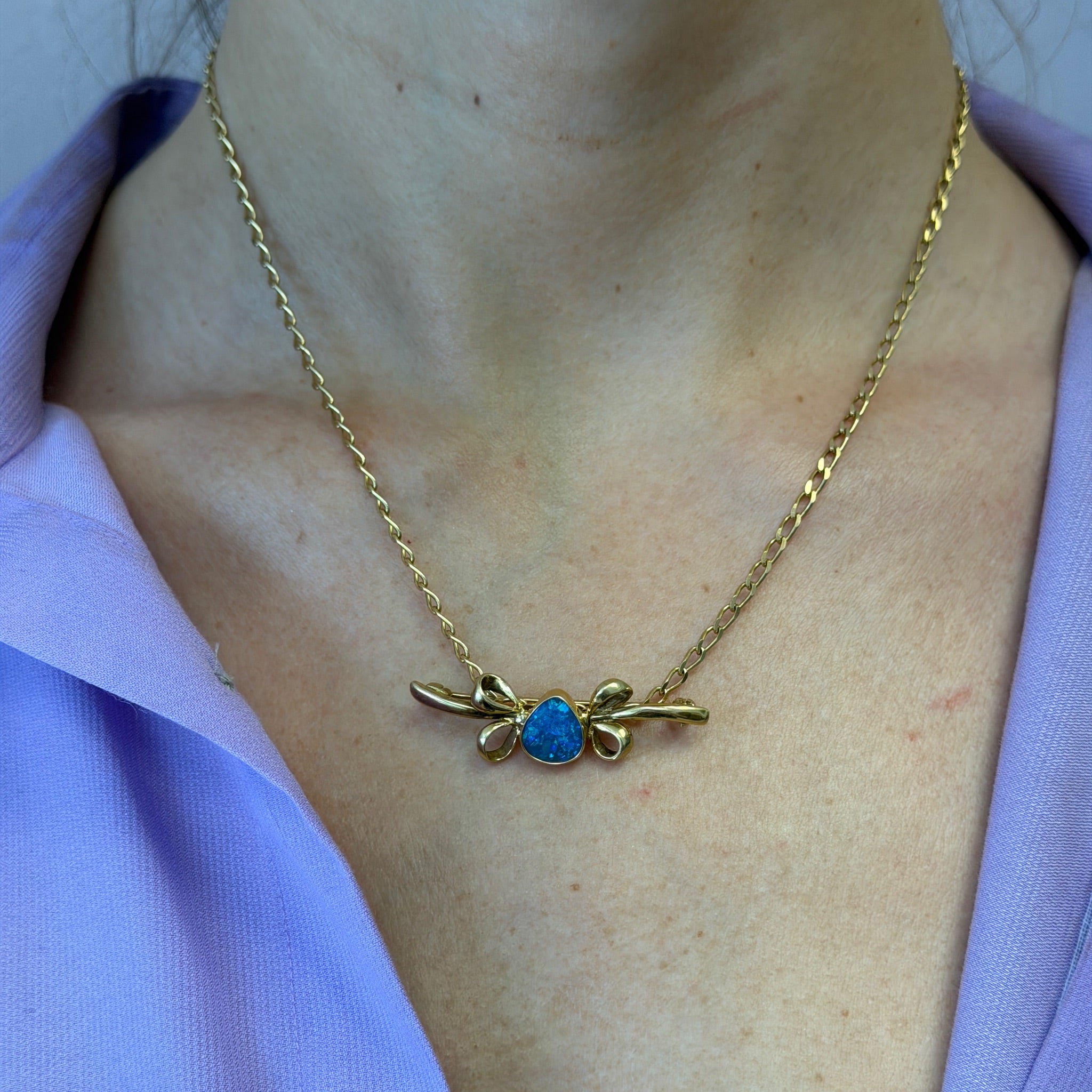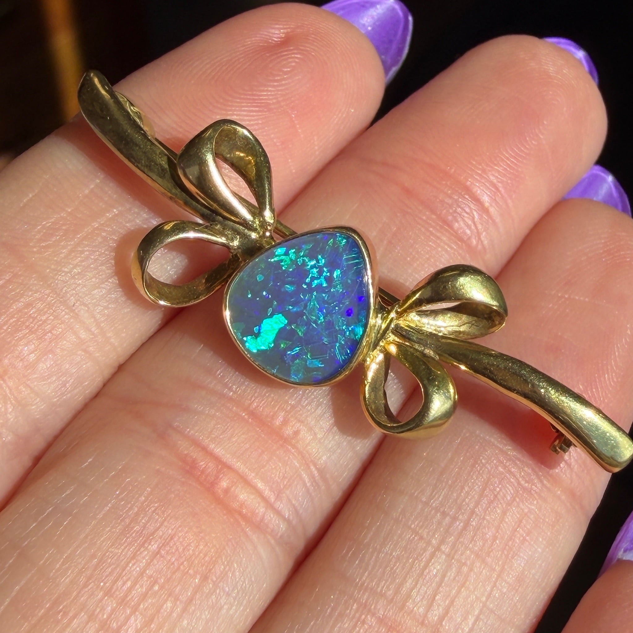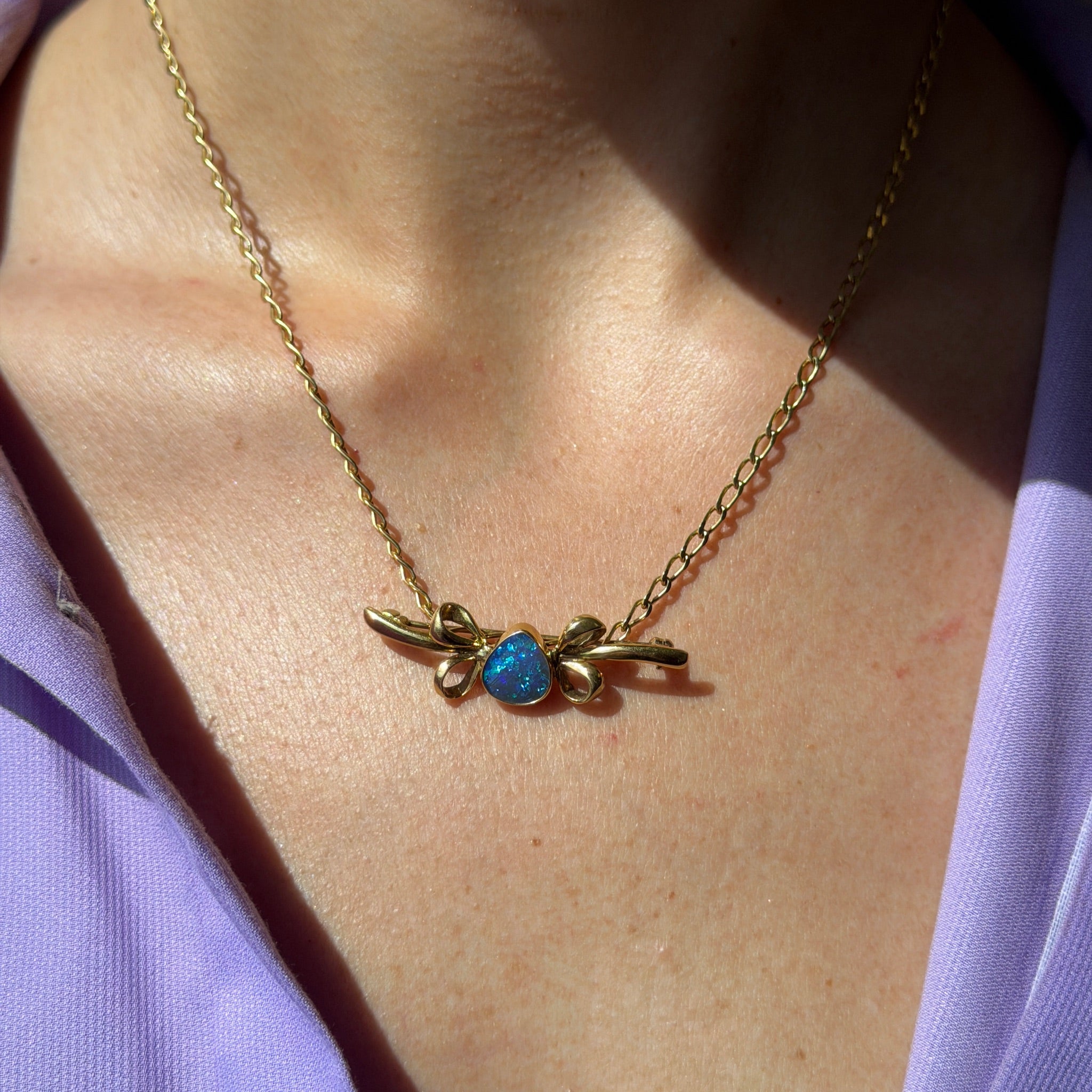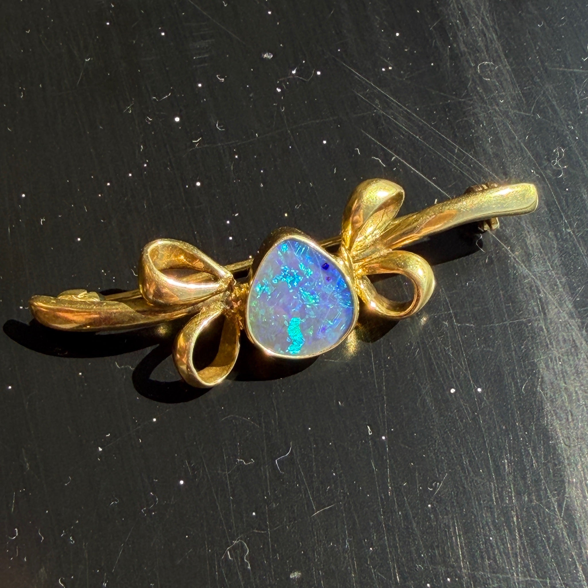Vintage 18K Yellow Gold Opal Brooch. Wear as a brooch, or hang from a chain.