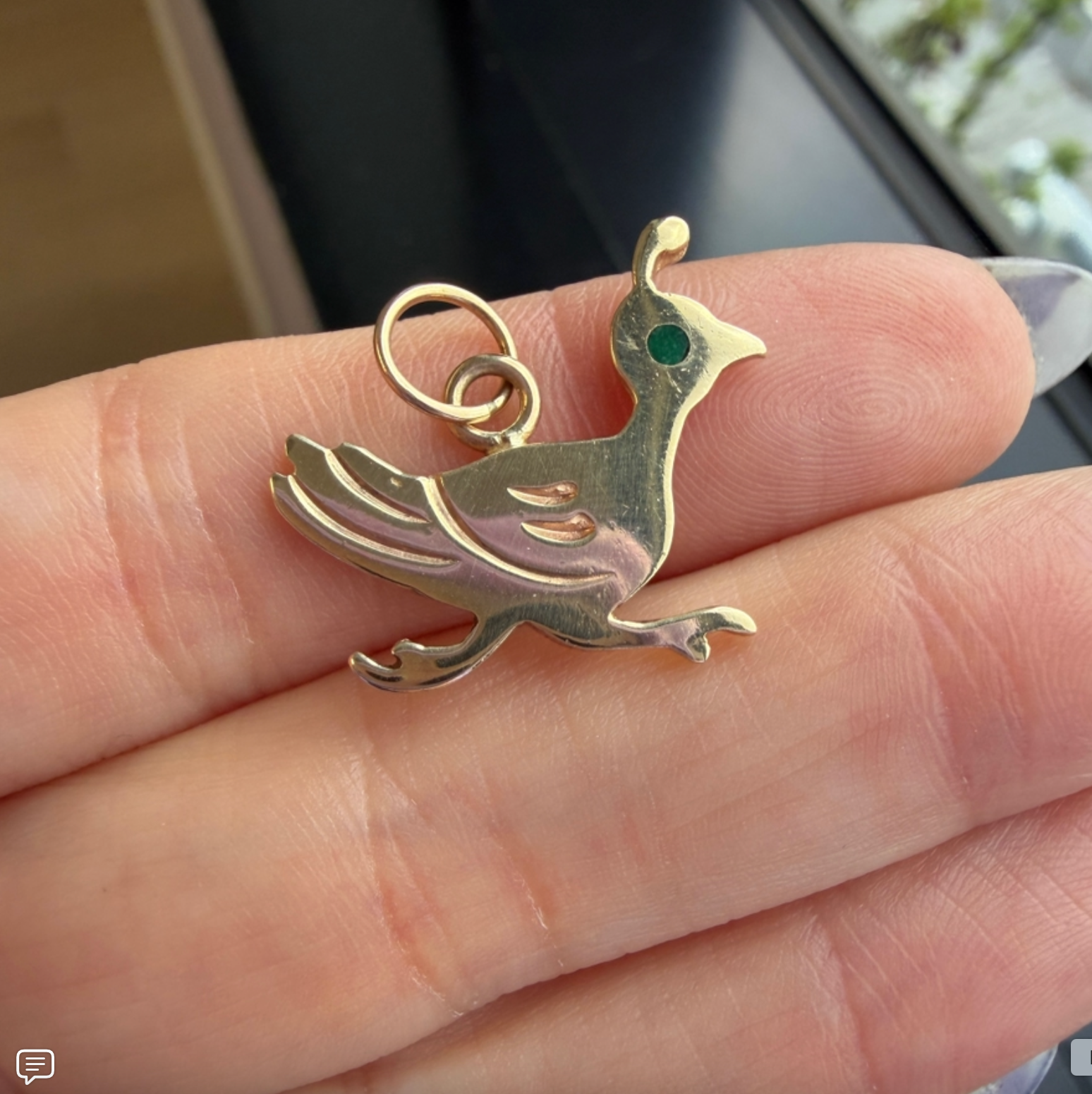 Vintage 14K Yellow Gold RoadRunner Charm with Green Enamel Eye