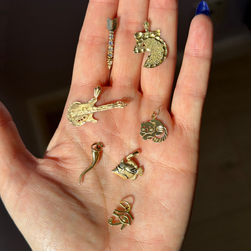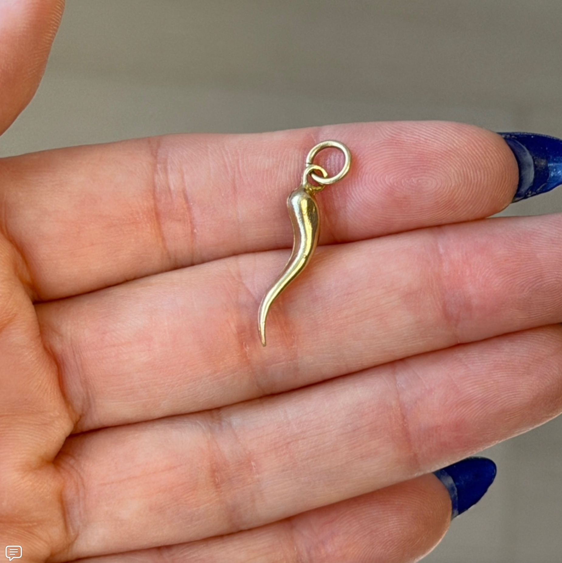 14K Yellow Gold Little Solid Cornicello Italian Horn Charm