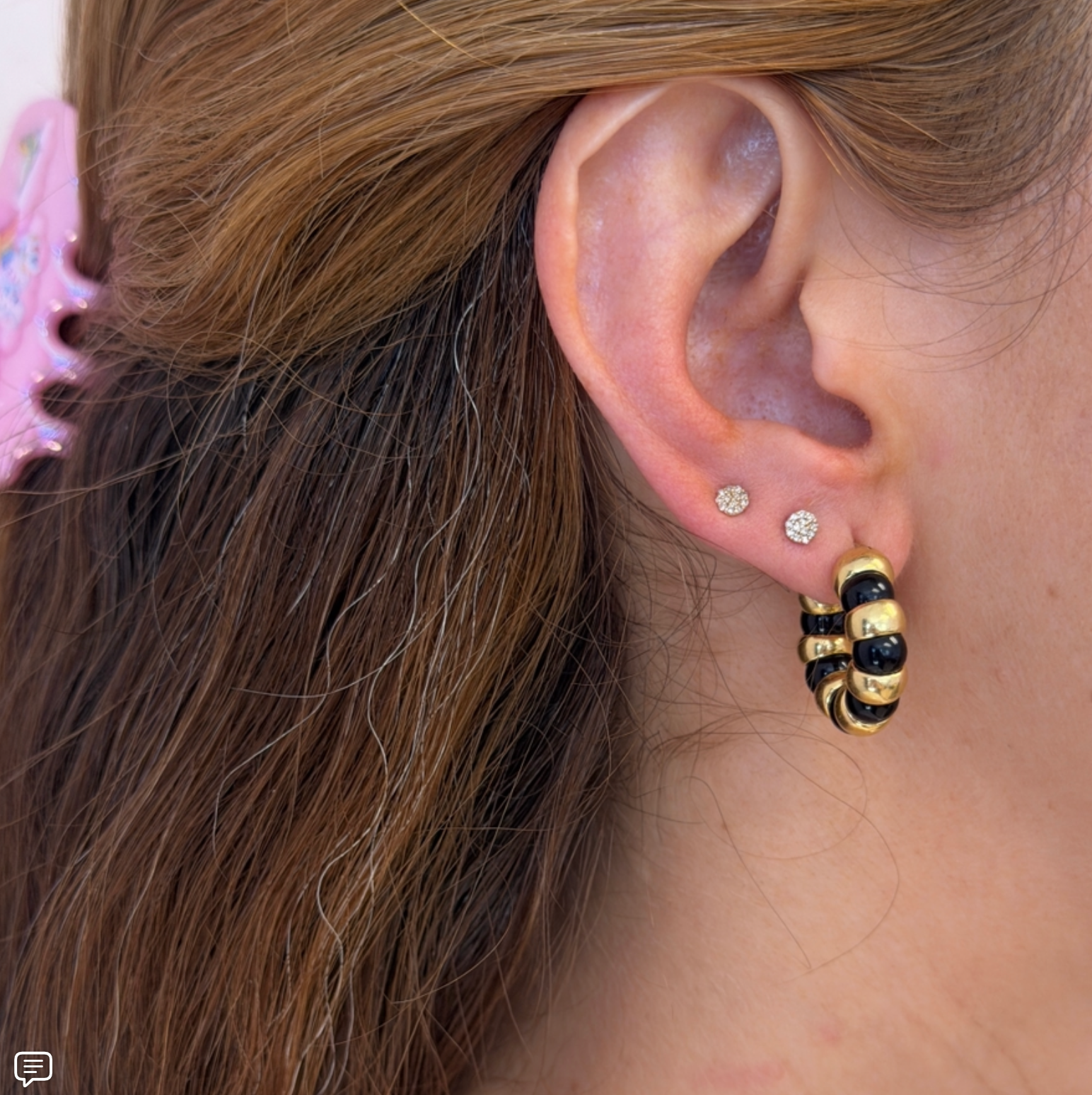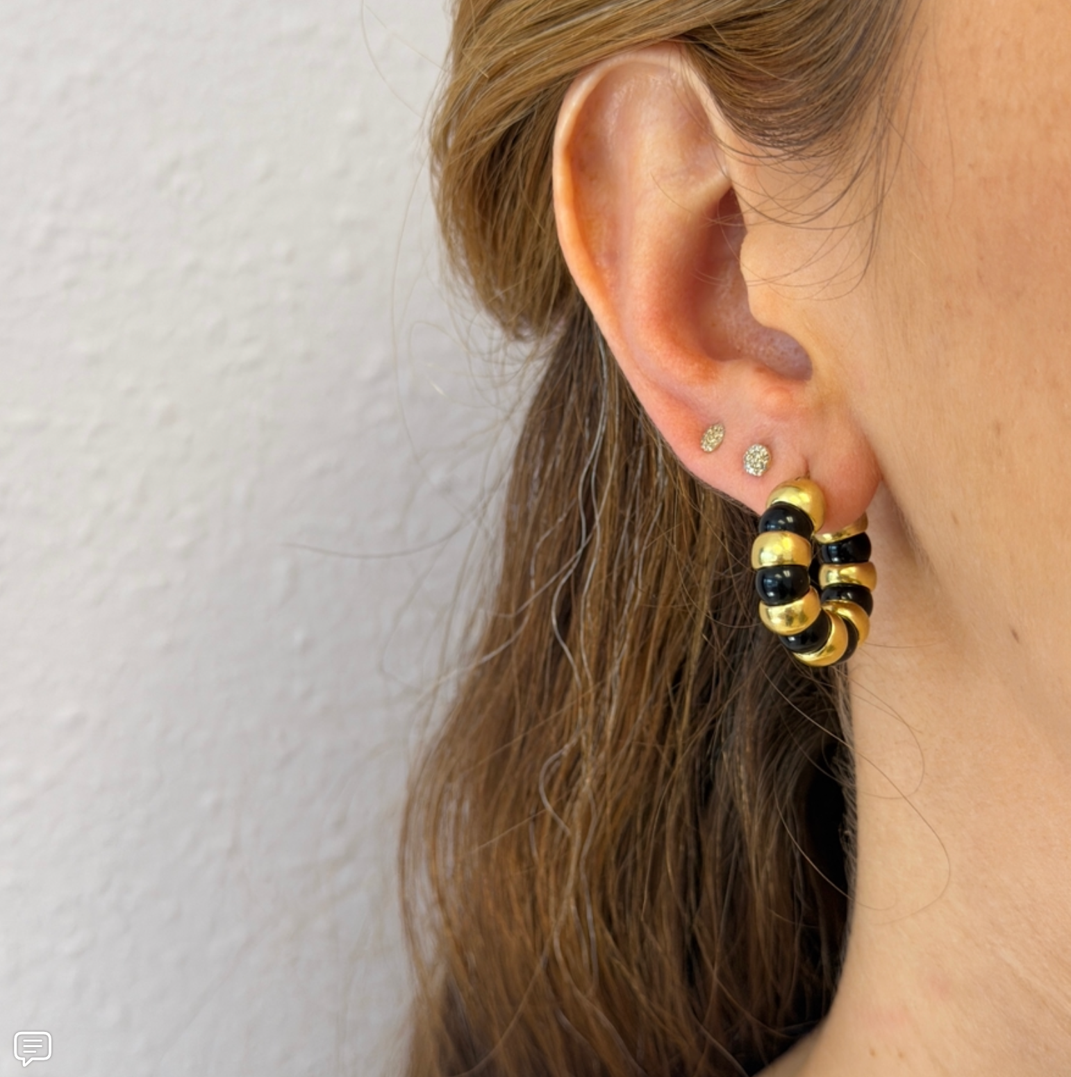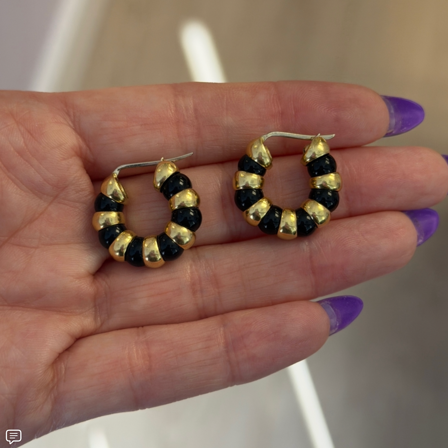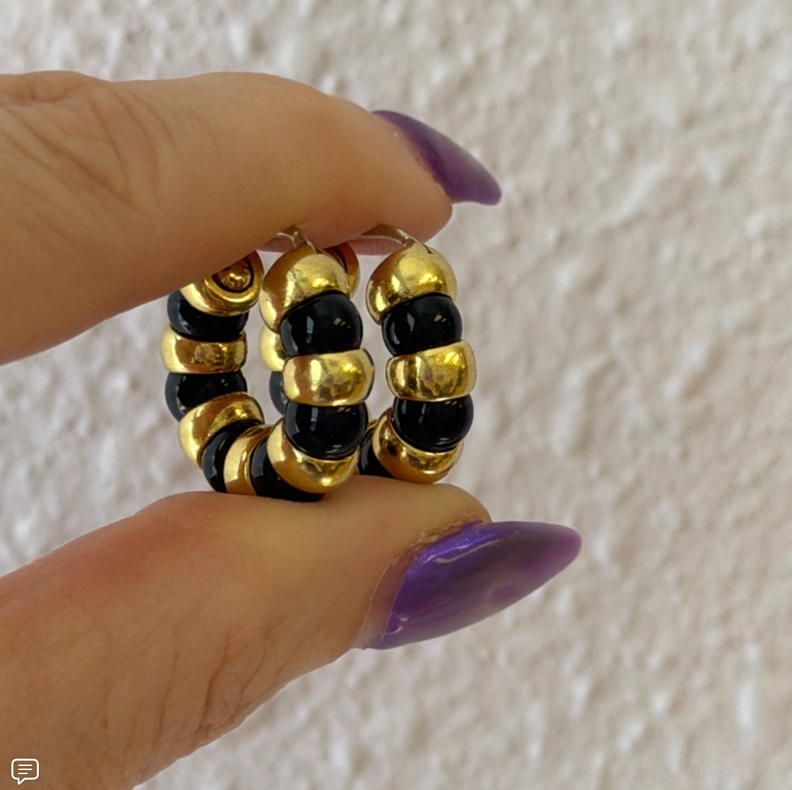 Vintage 18K Italy Yellow Gold and Onyx Hoops