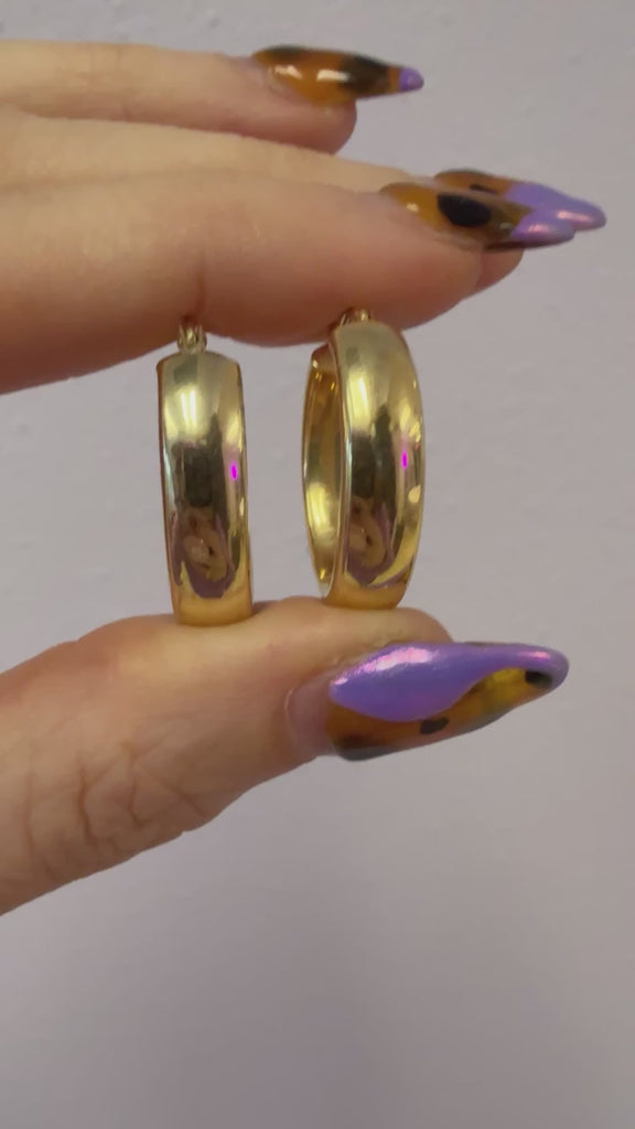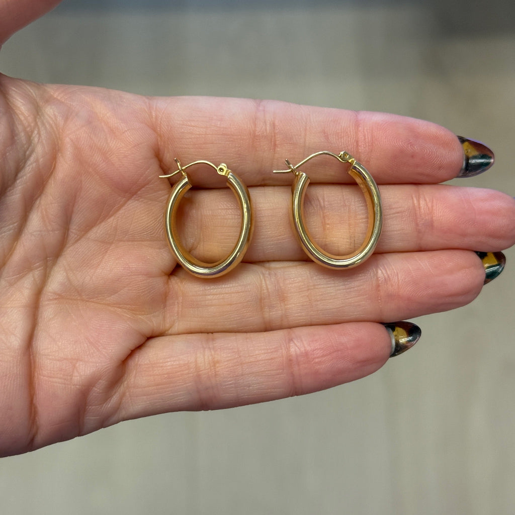 Vintage 14K Yellow Gold Thick Oval Hoops