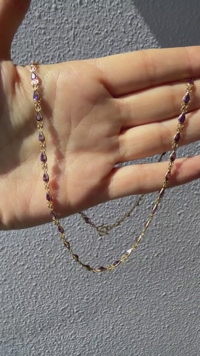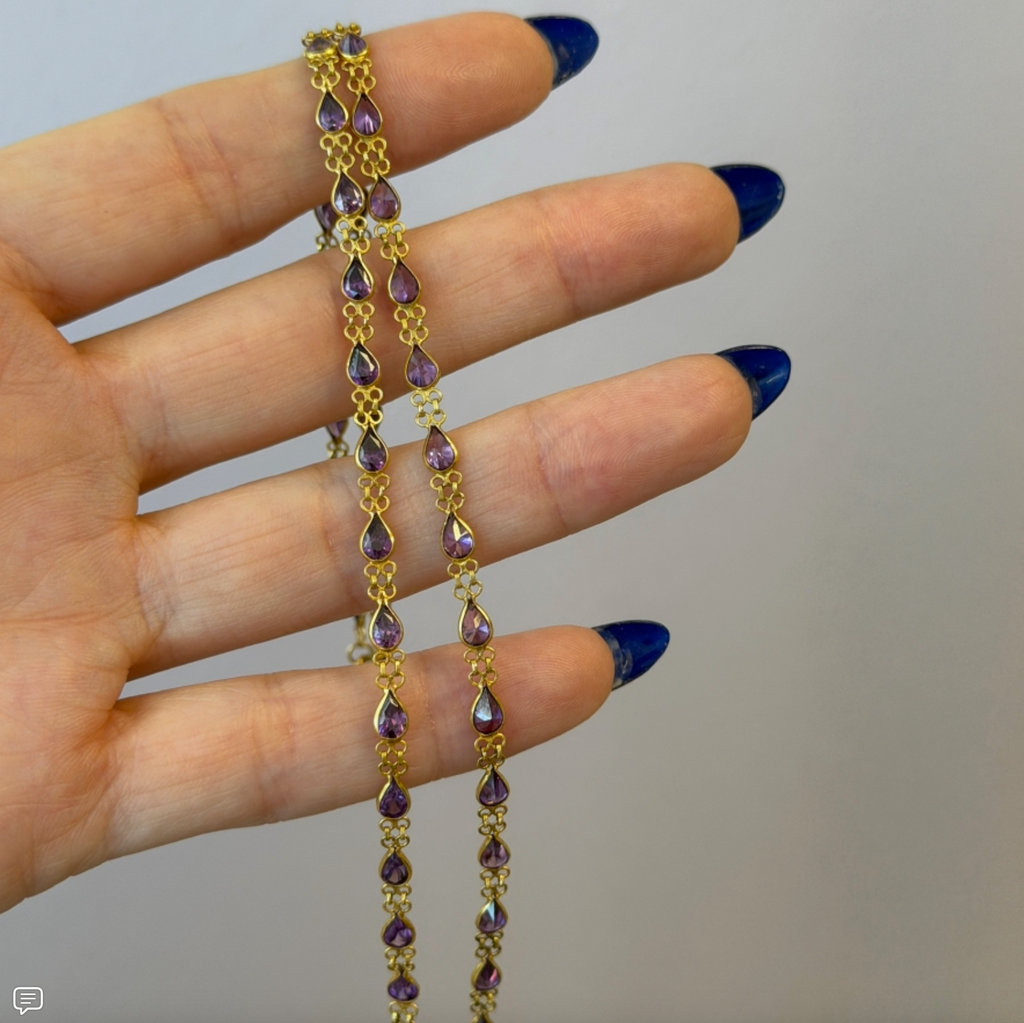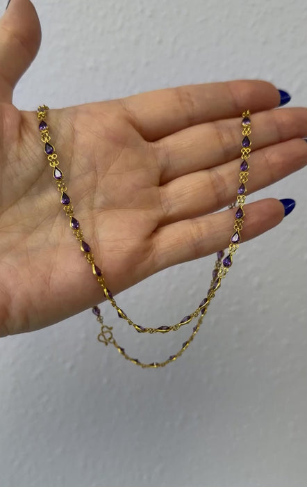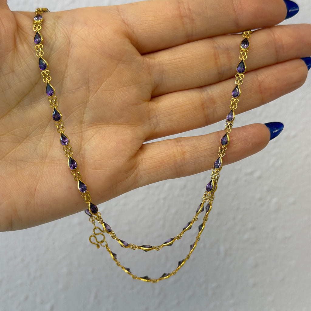 Vintage 22K Yellow Gold Necklace with Pear Shaped Natural Amethysts
