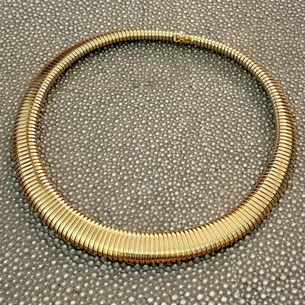 Vintage 14K Italy Yellow Gold Graduated Tubogas Necklace