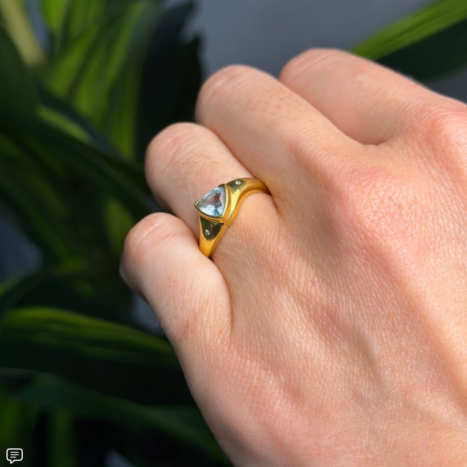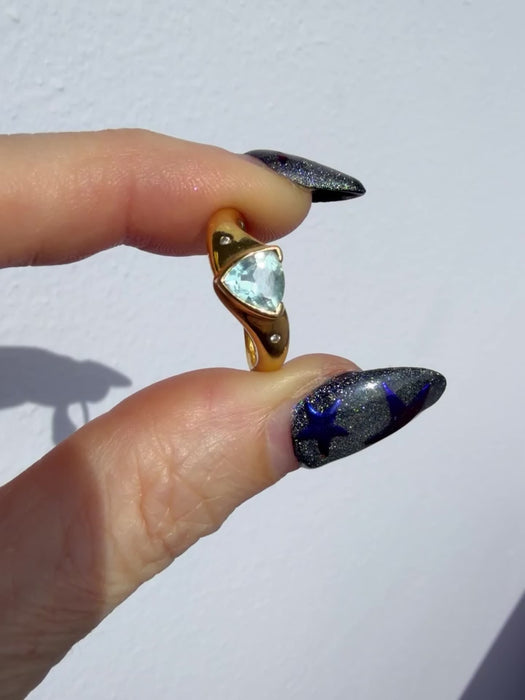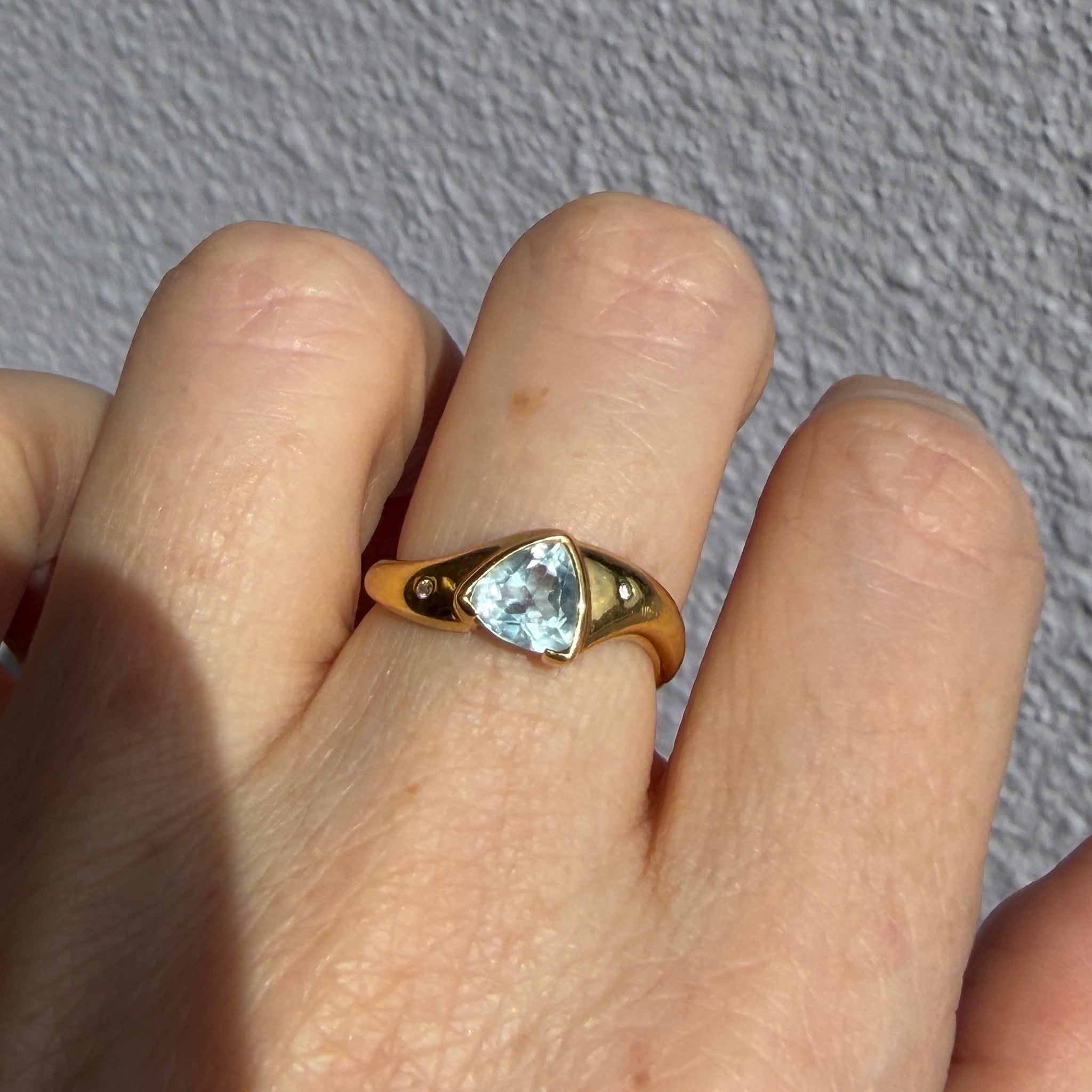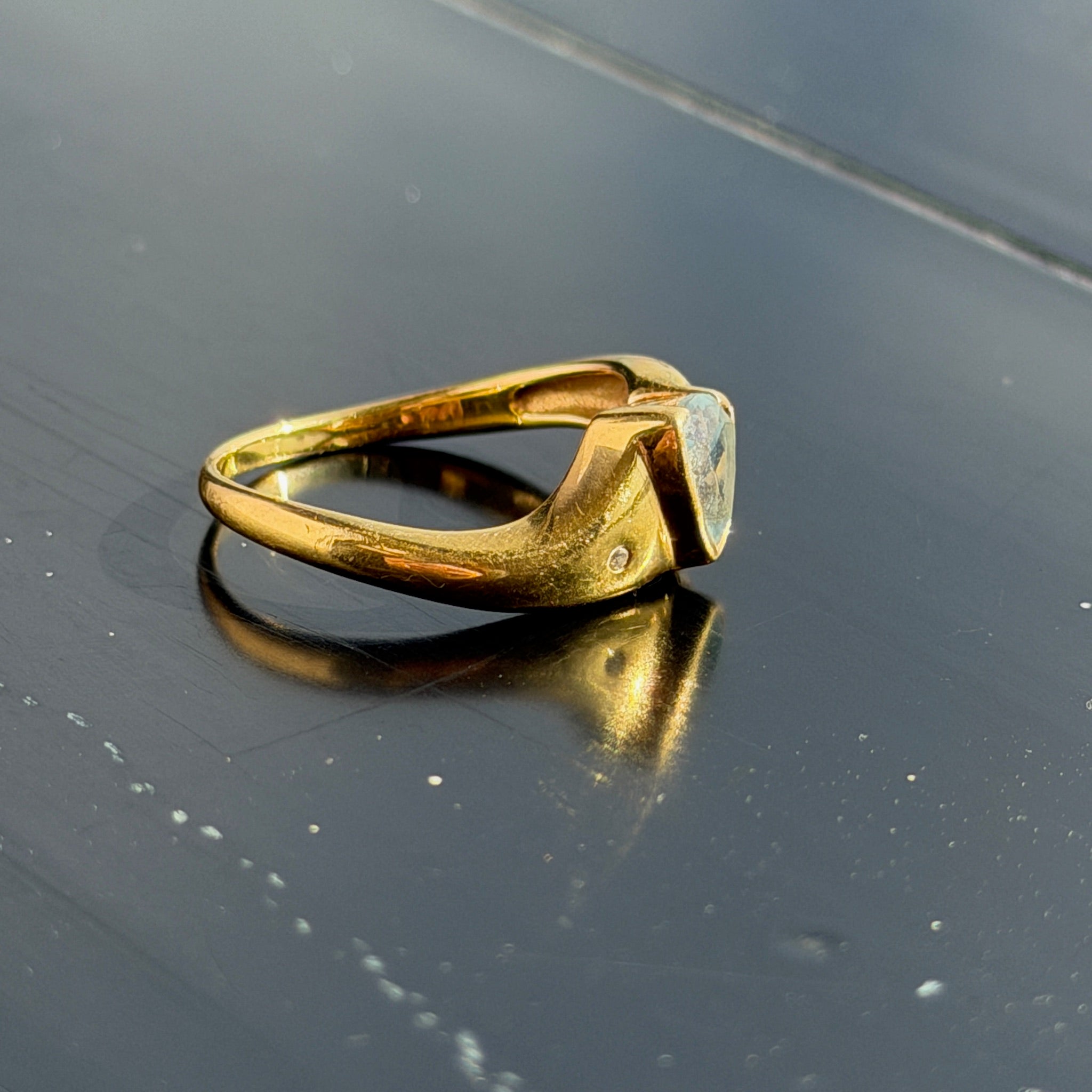 Vintage 18K Yellow Gold Topaz Ring by designer H Stern. Has two little diamonds flush set on either side of band