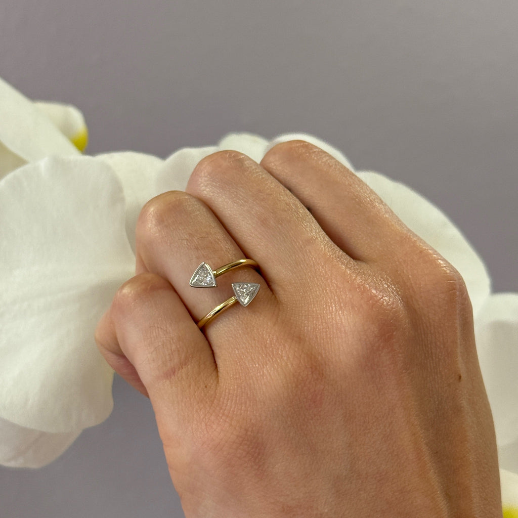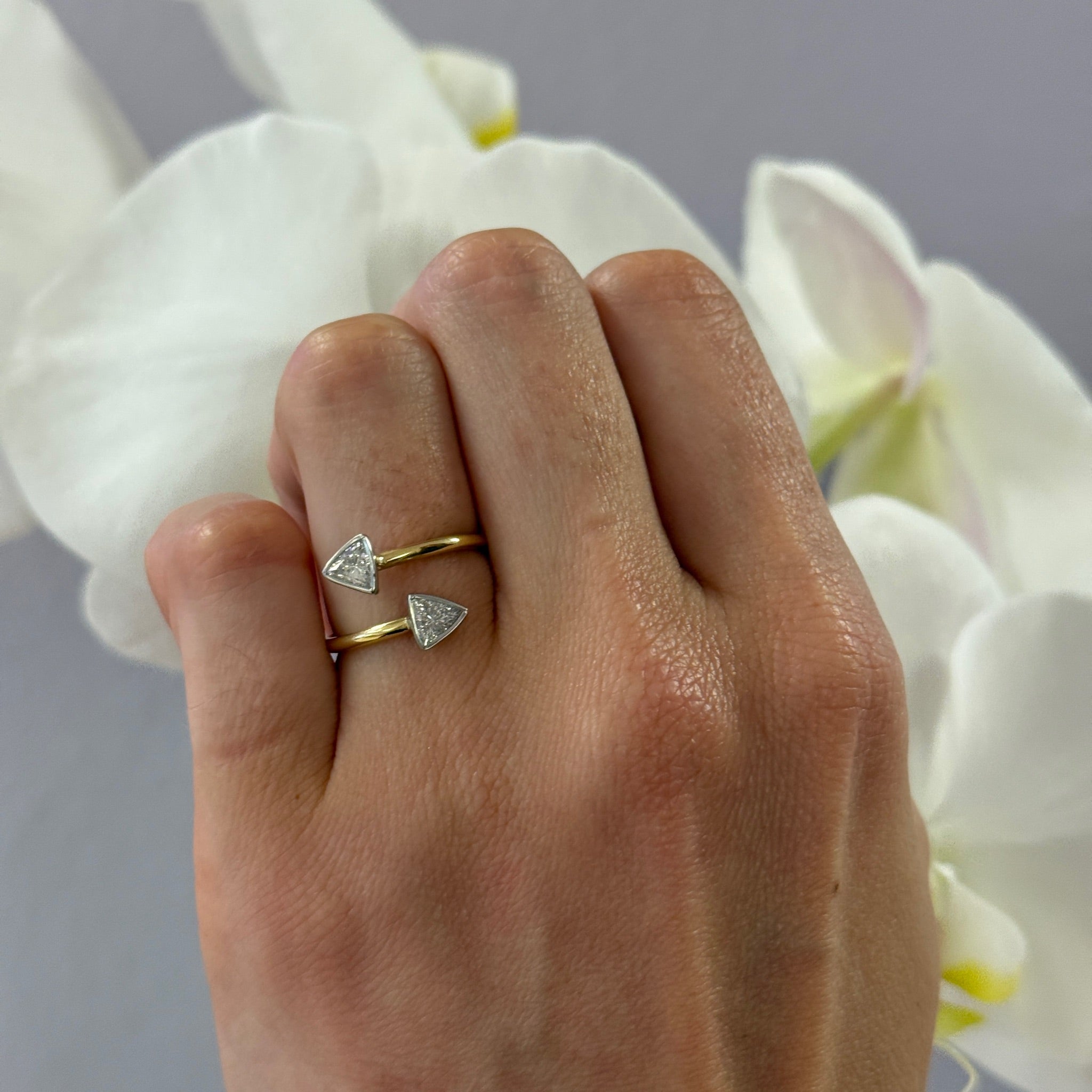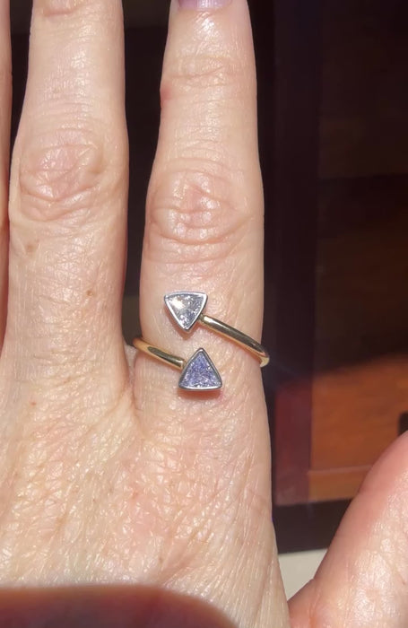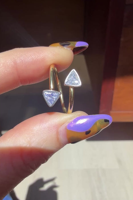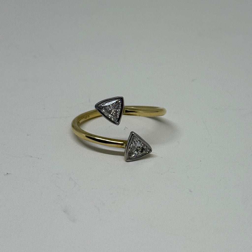 Vintage 18K Yellow Gold & Platinum Double Arrow Diamond Ring
