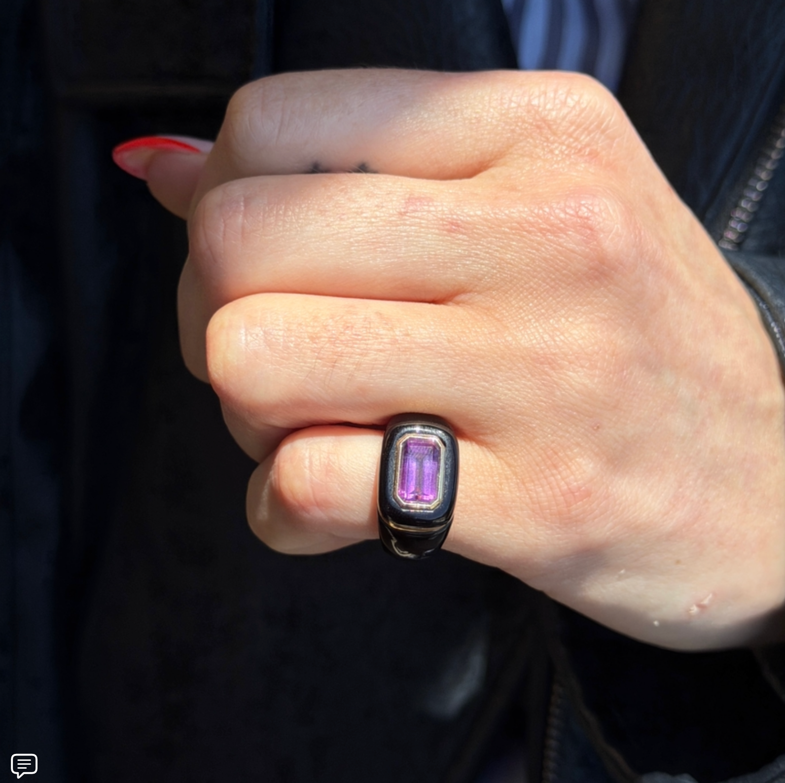 Amethyst and Onyx Ring is backordered and will ship as soon as it is back in stock.