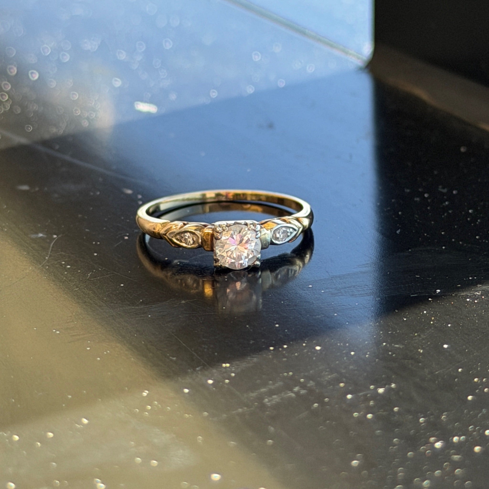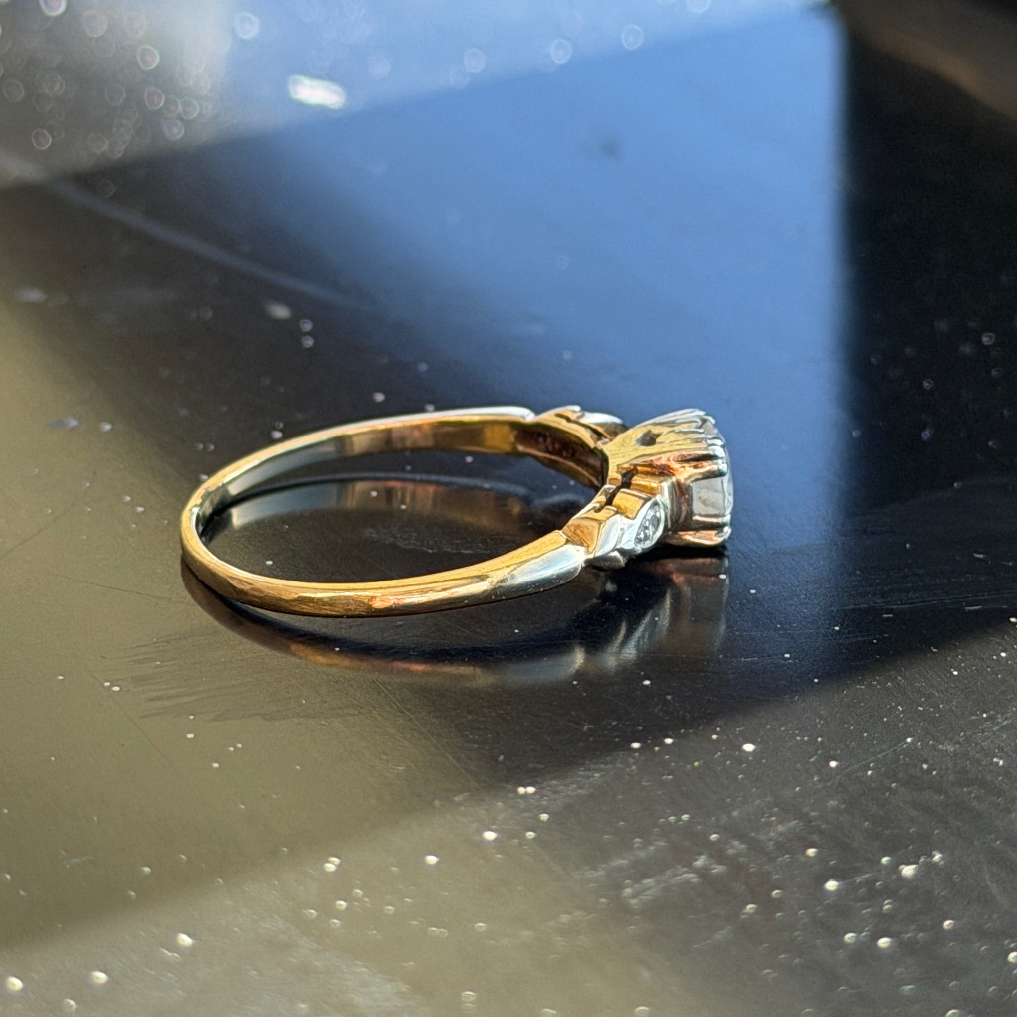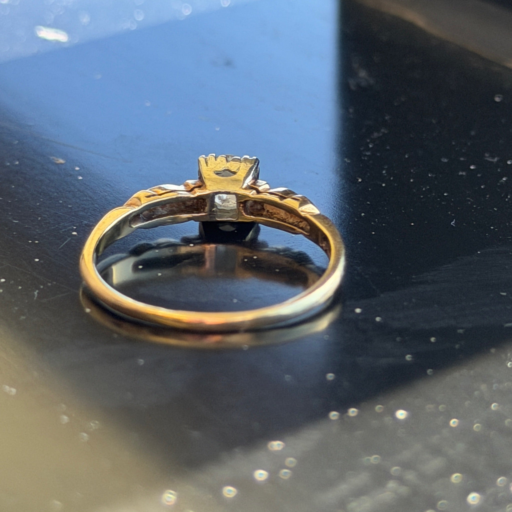 Antique 14K Yellow Gold "Engagement" Ring with Round Center Diamond