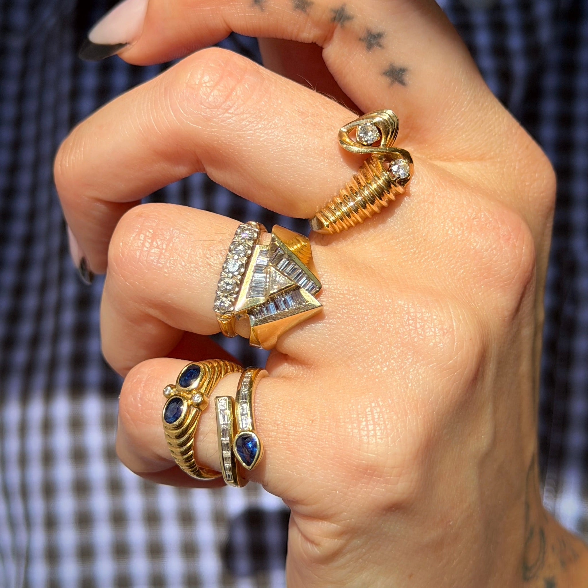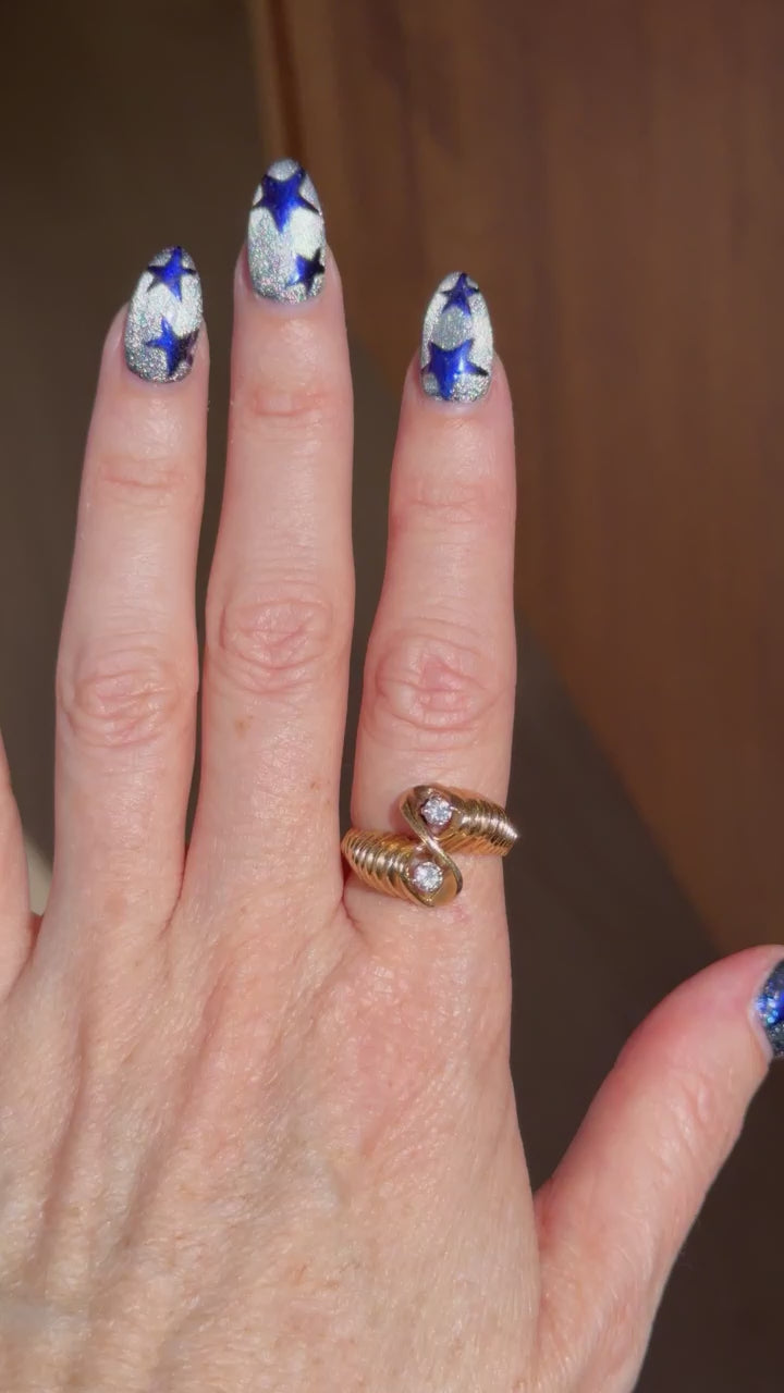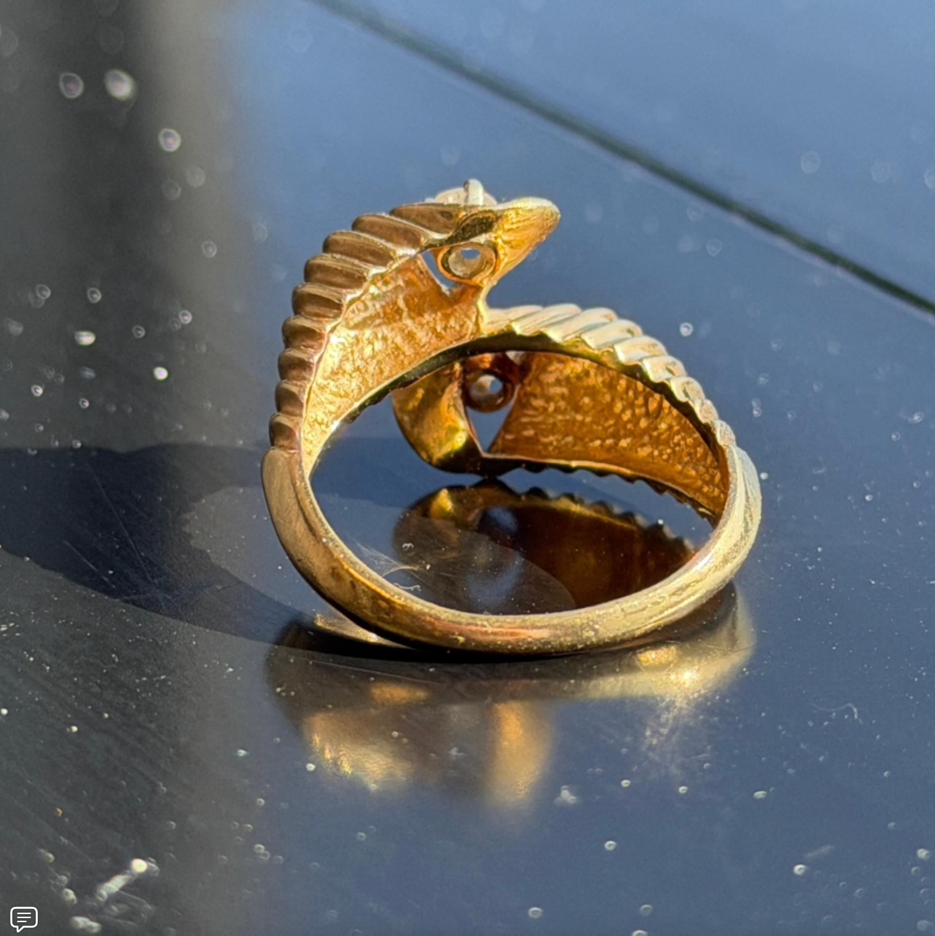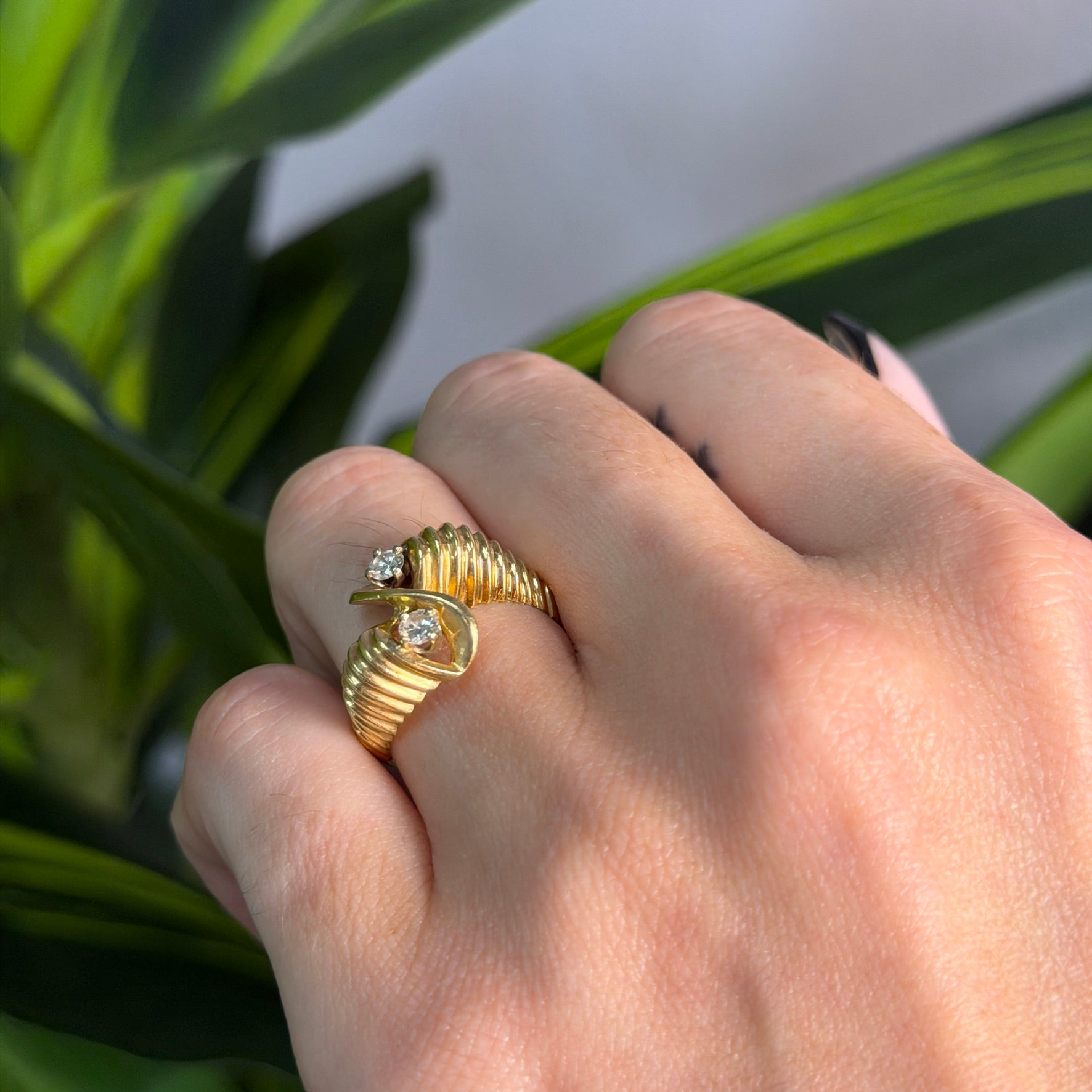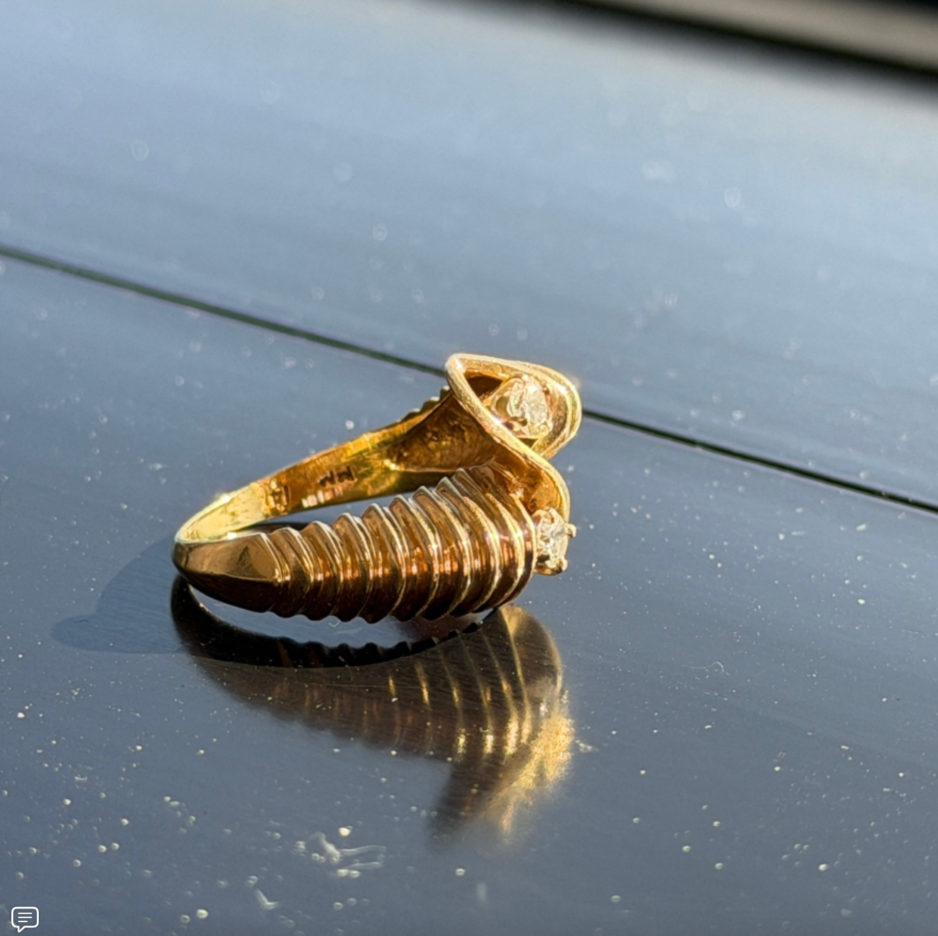 Vintage 14K Yellow Gold Ribbed Bypass Diamond Ring