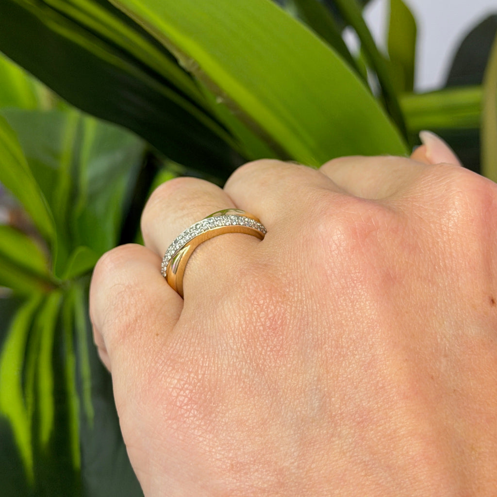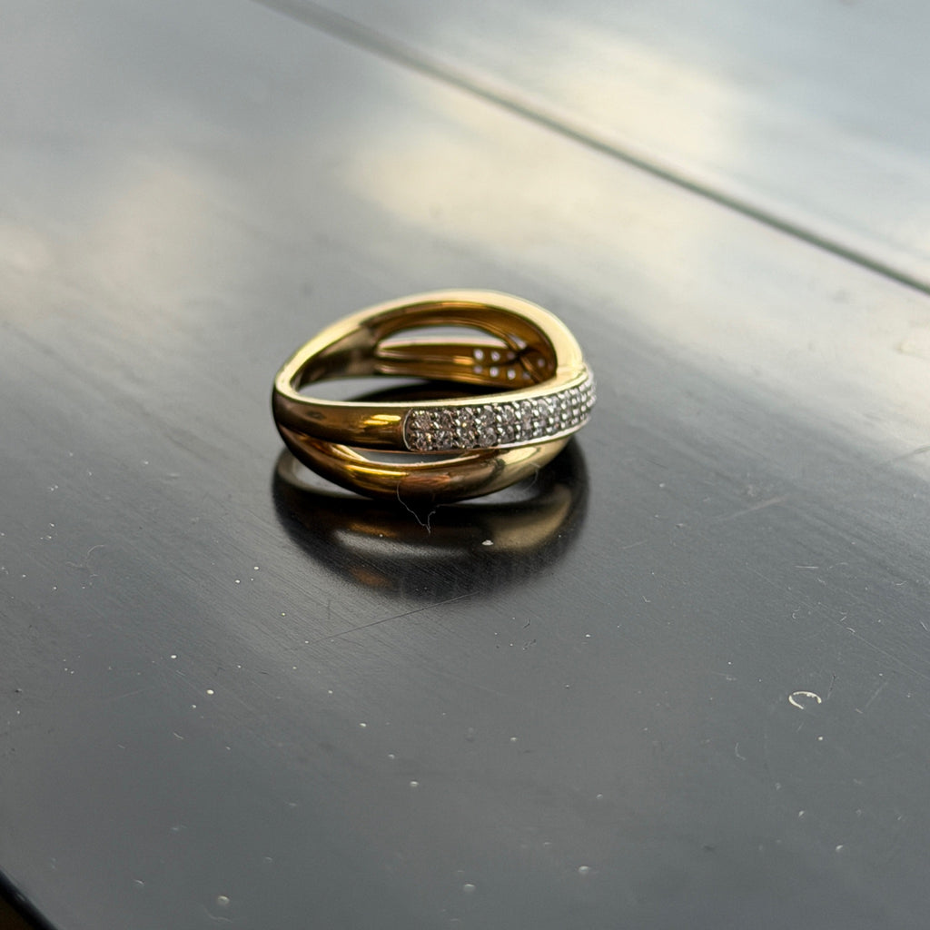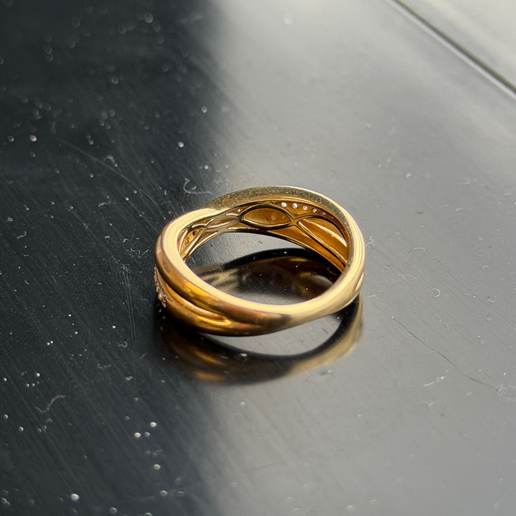 Vintage 14K Yellow Gold Criss-Cross Ring with Diamonds