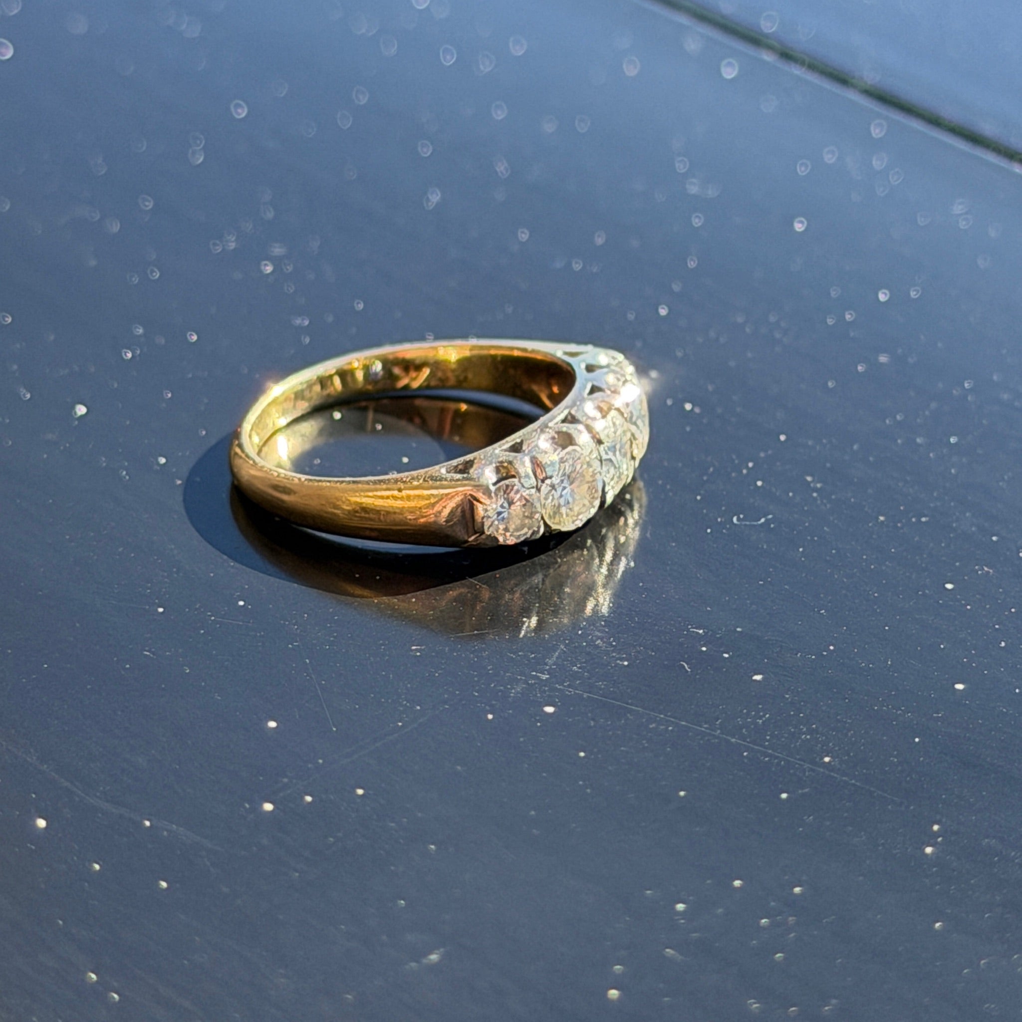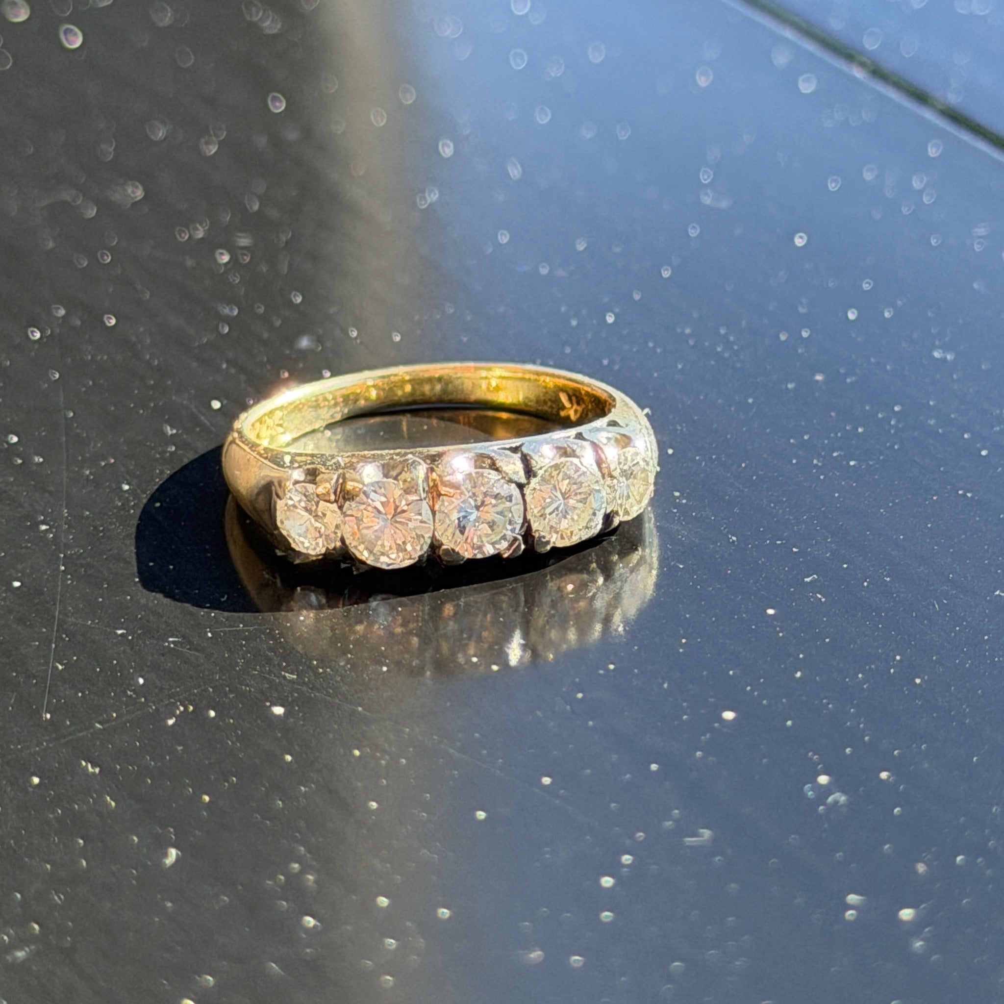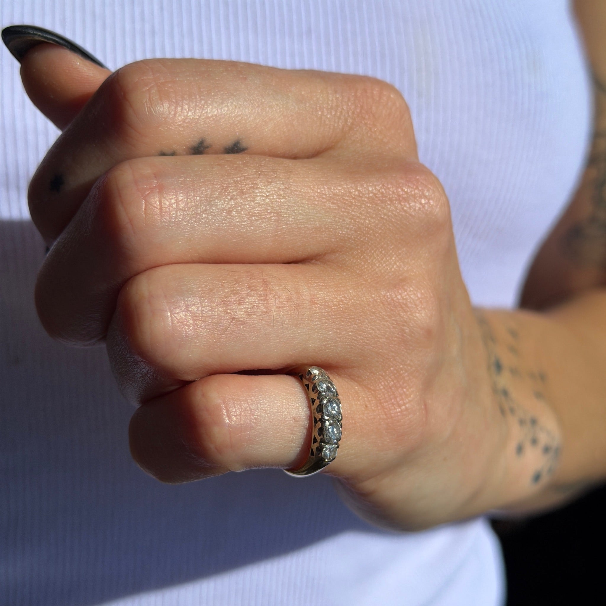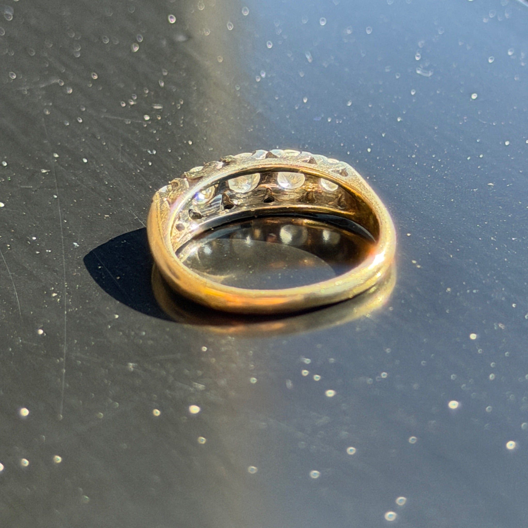 Vintage 14K Yellow and White Gold Band with Five Diamonds.