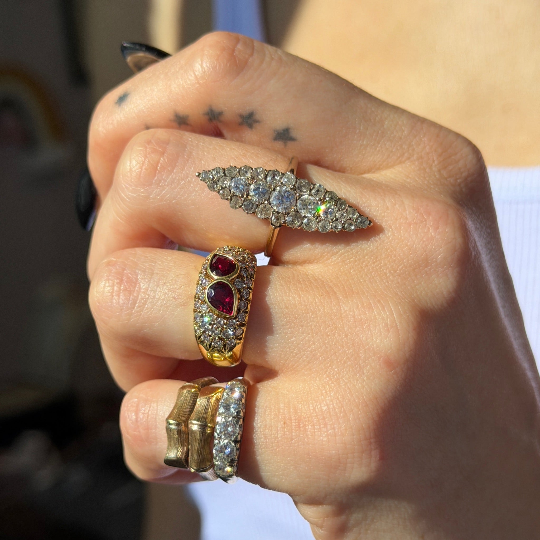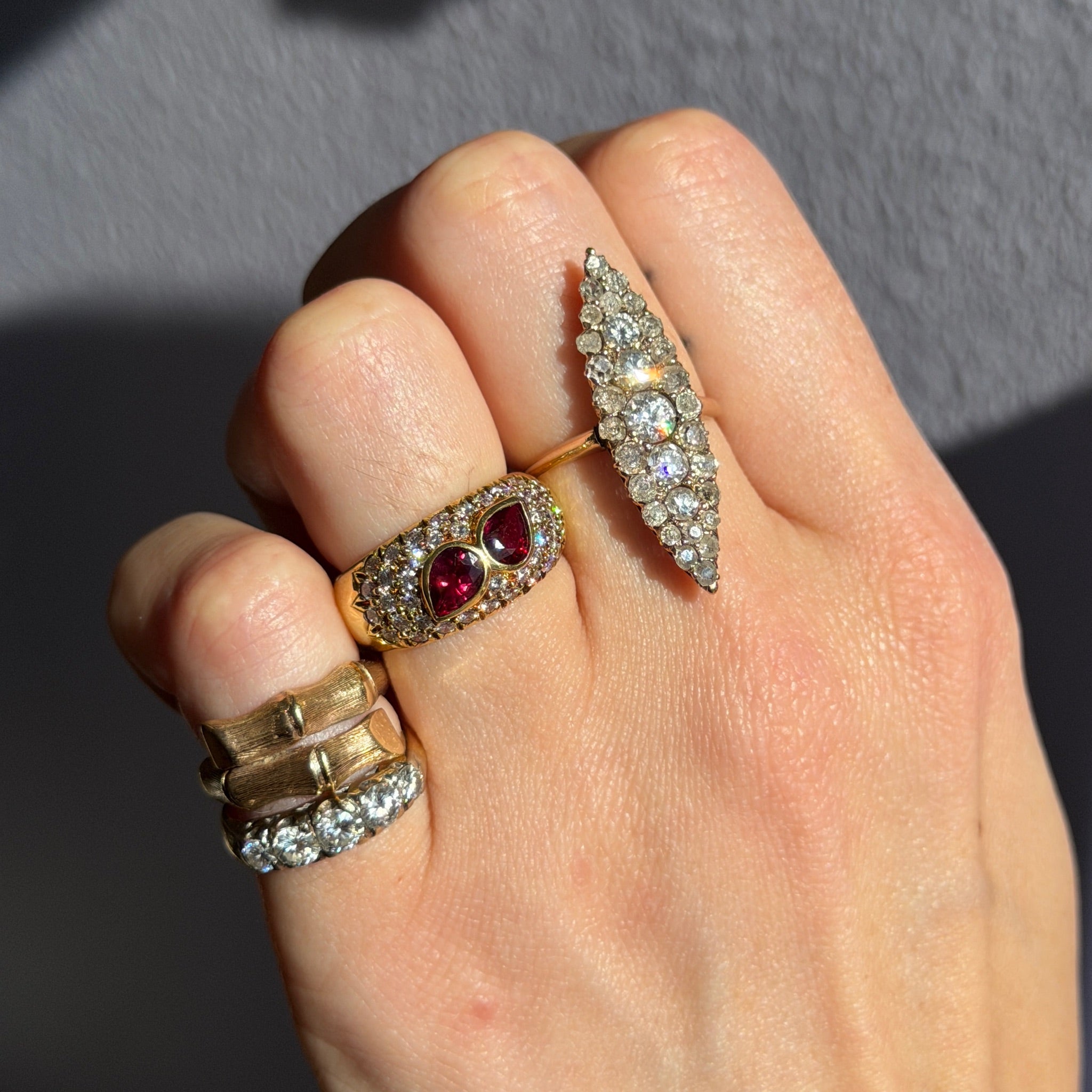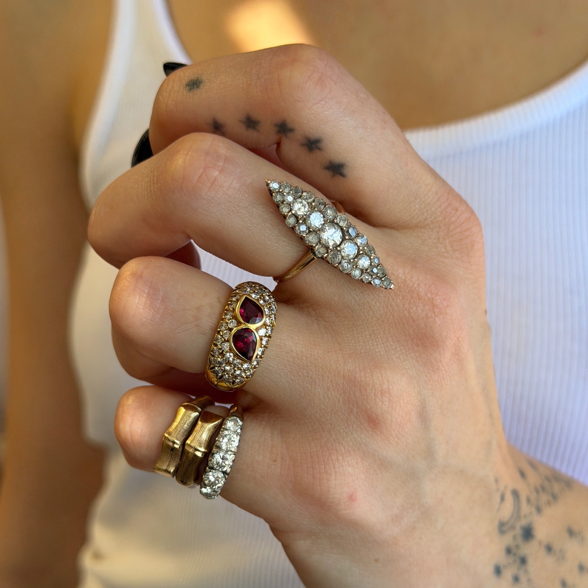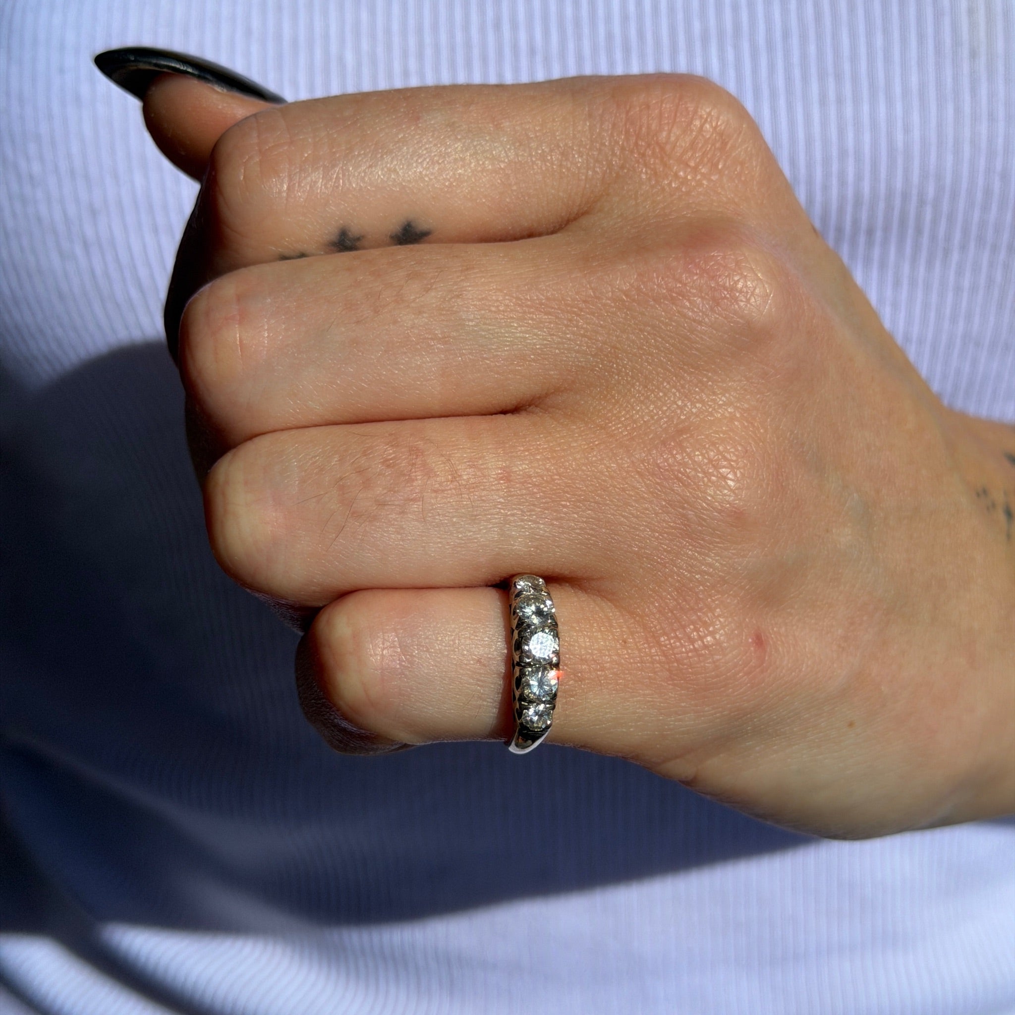 Vintage 14K Yellow and White Gold Band with Five Diamonds.