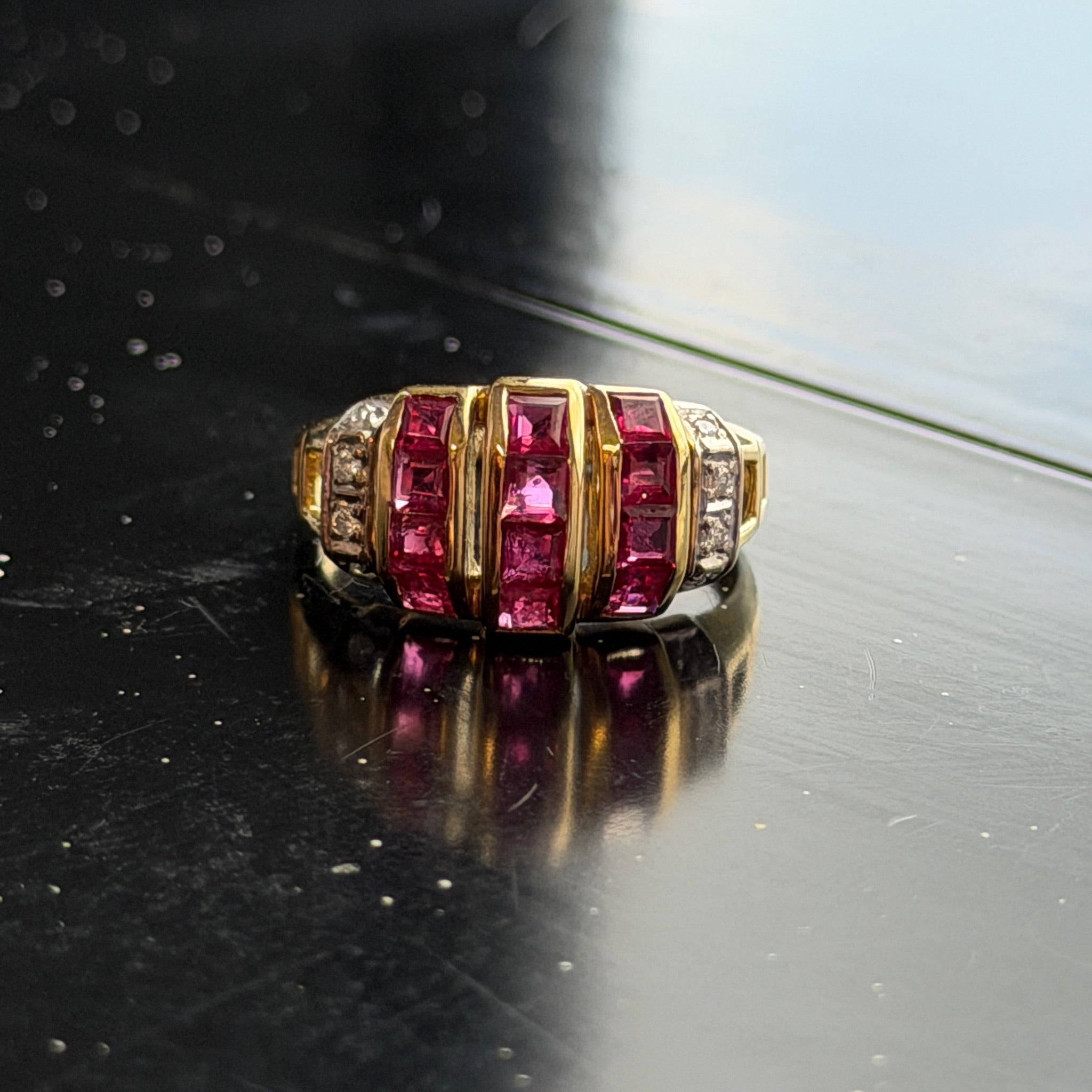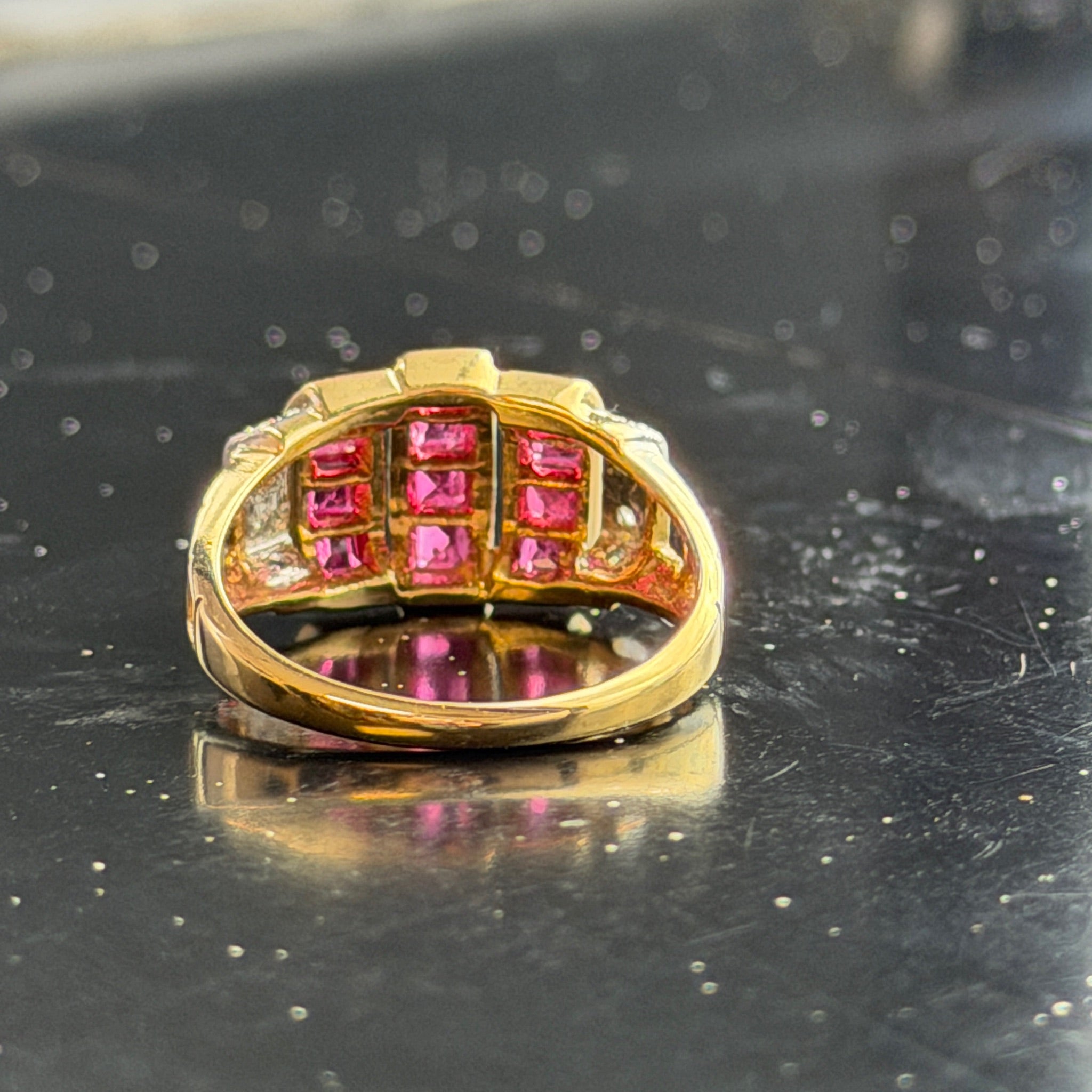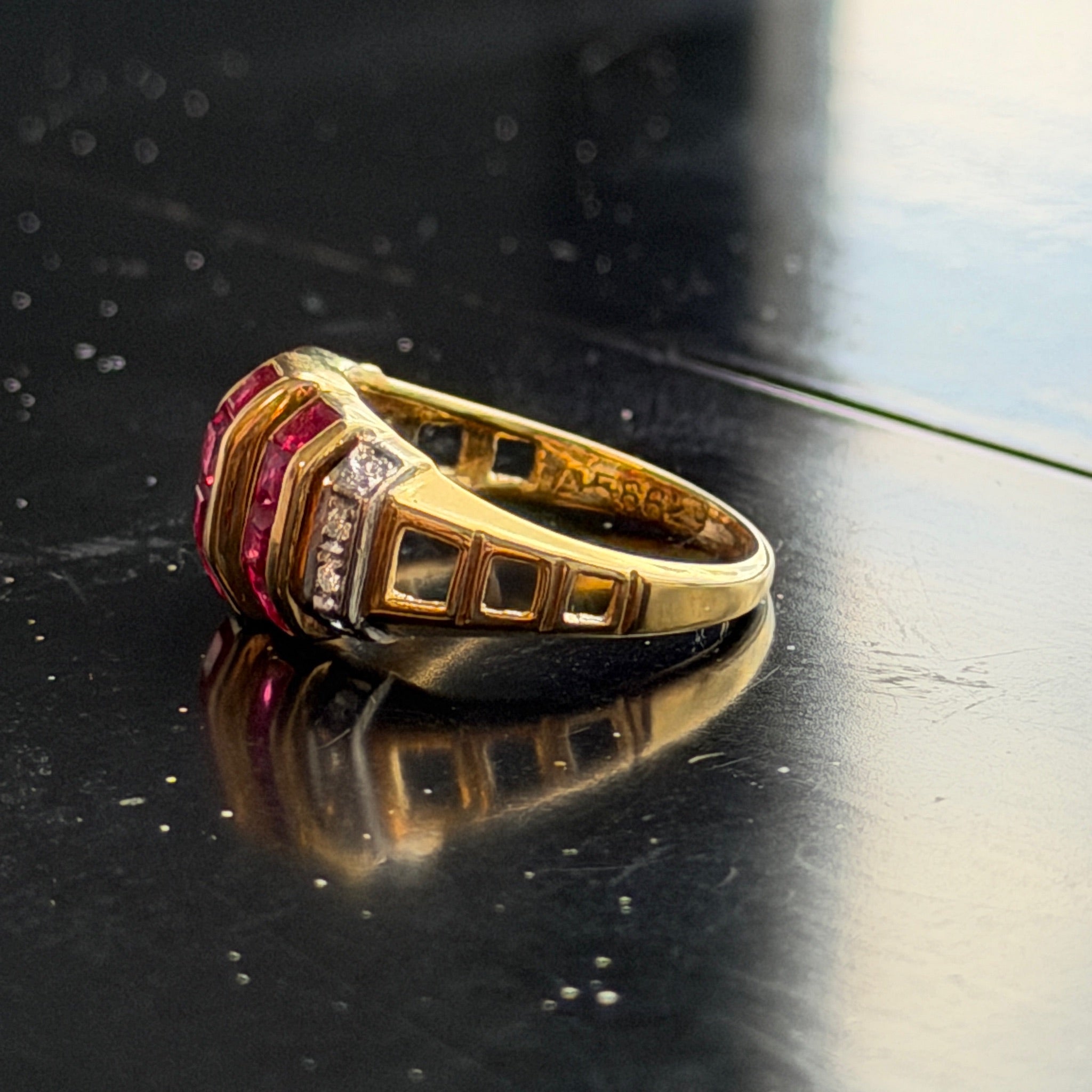 Vintage 18K Yellow Gold Ring with Rubies and Diamonds