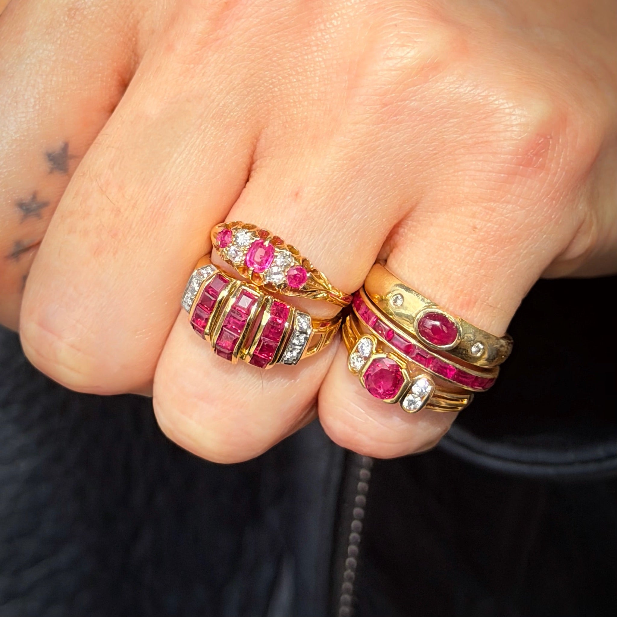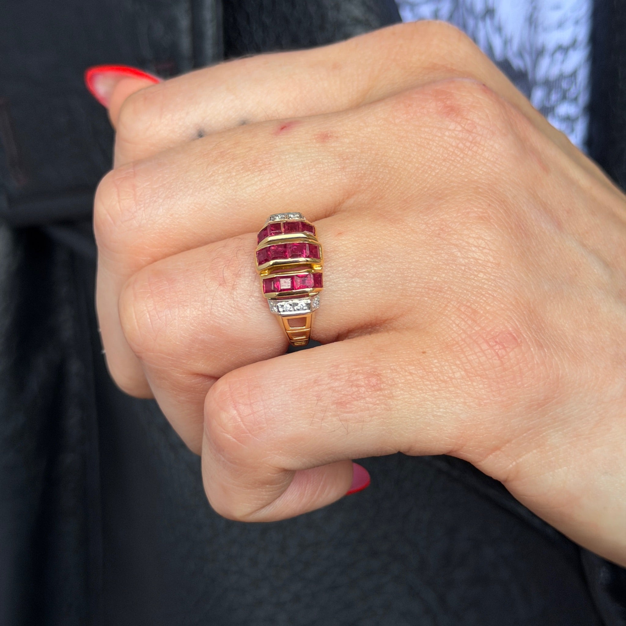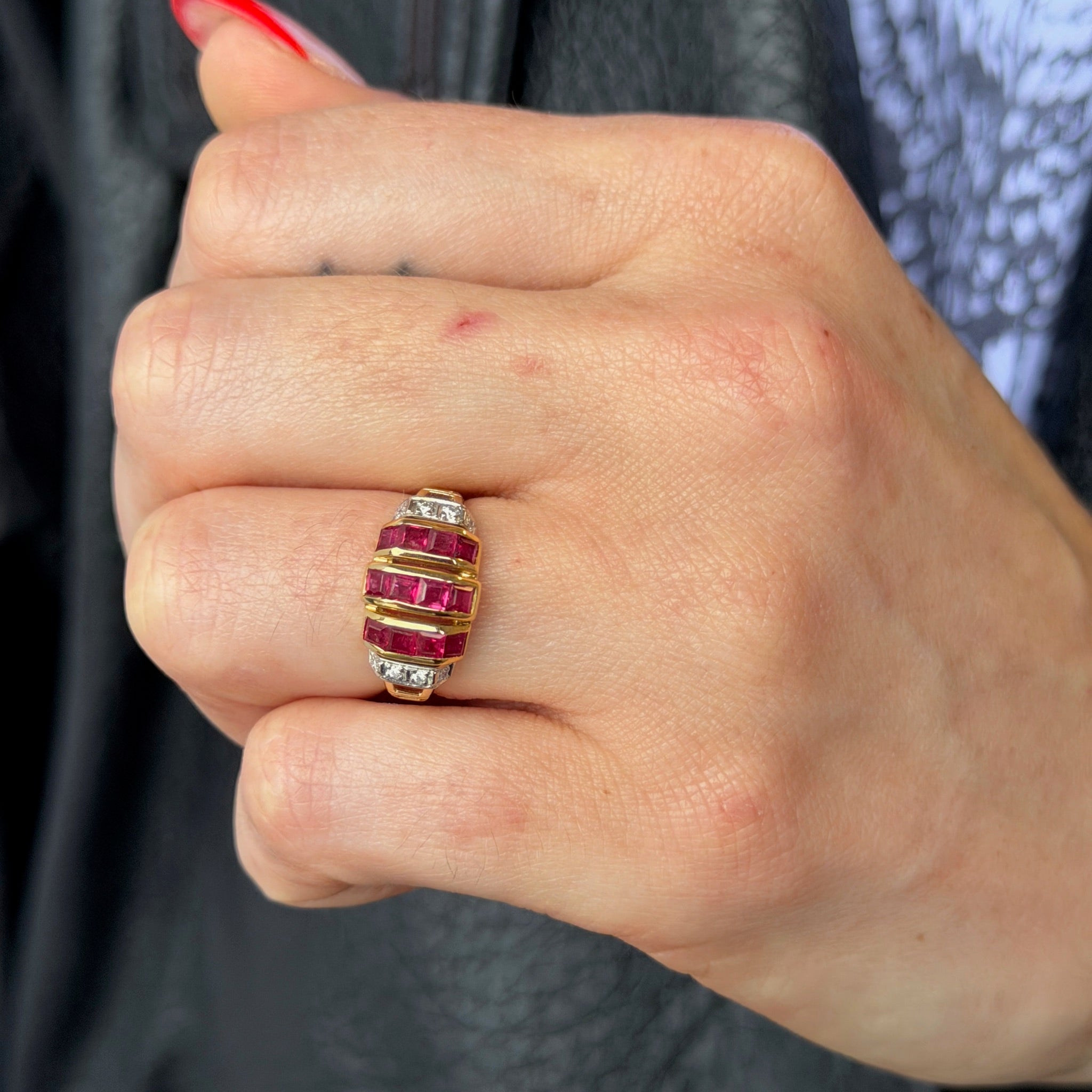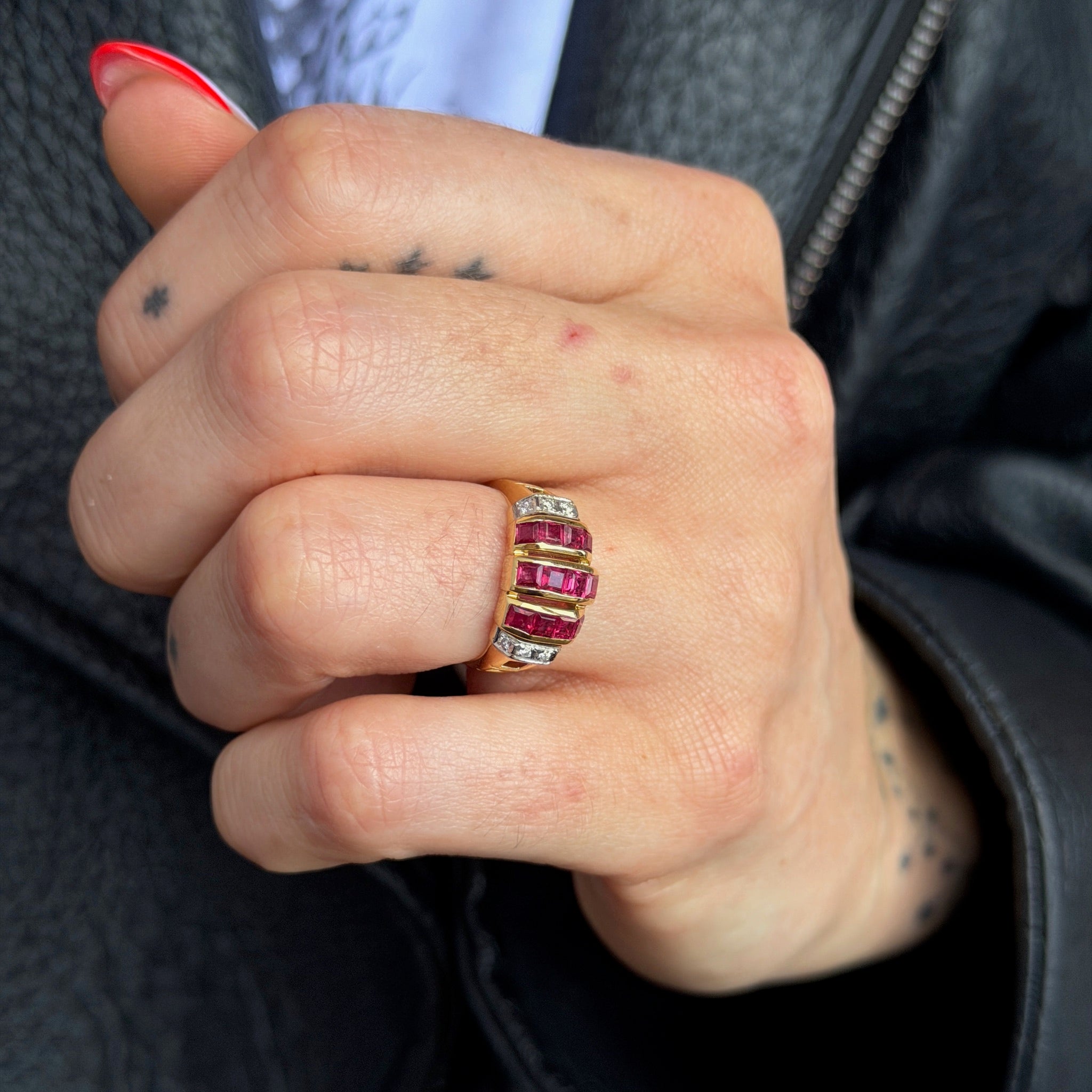 Vintage 18K Yellow Gold Ring with Rubies and Diamonds