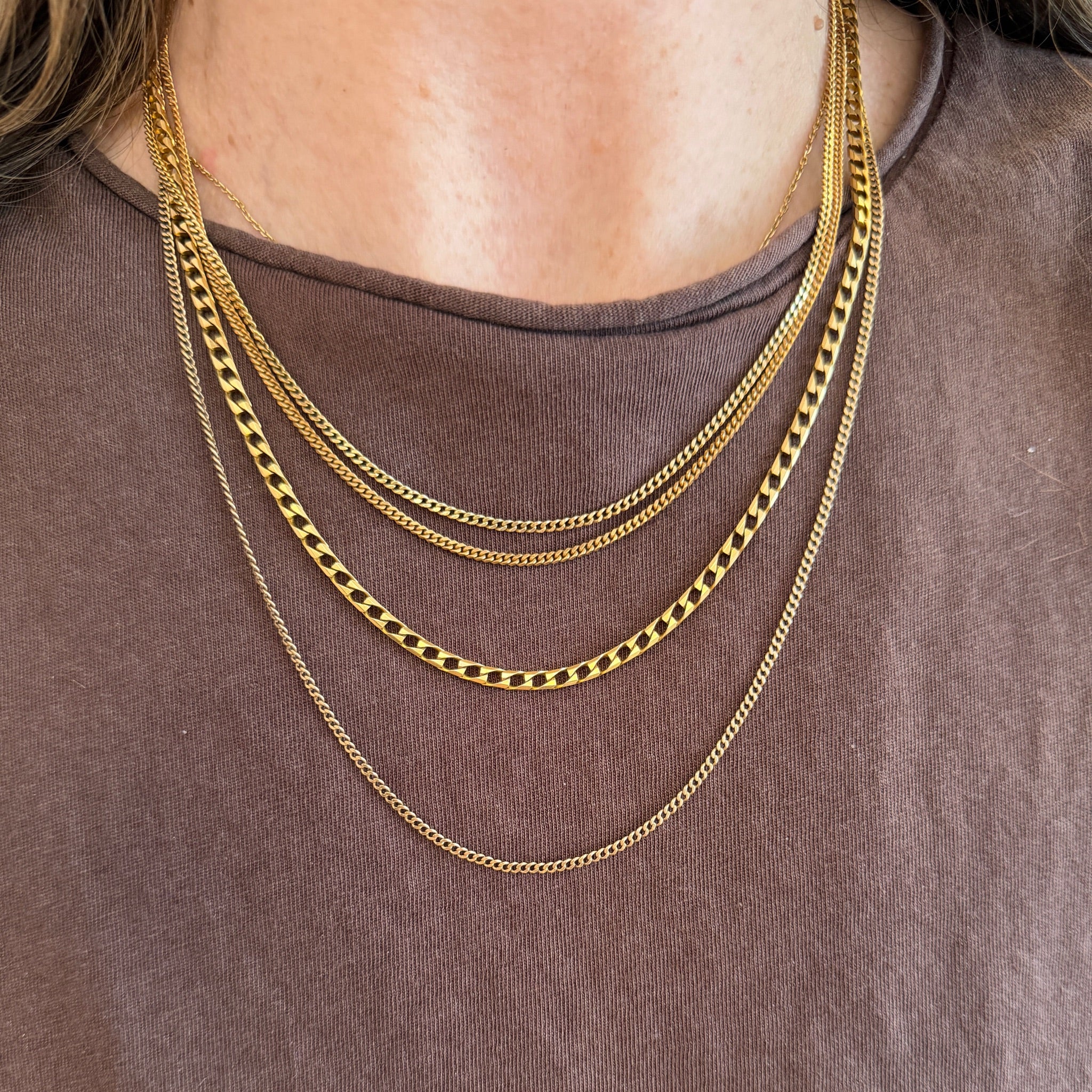 Vintage 18K Yellow Gold Square Curb Chain