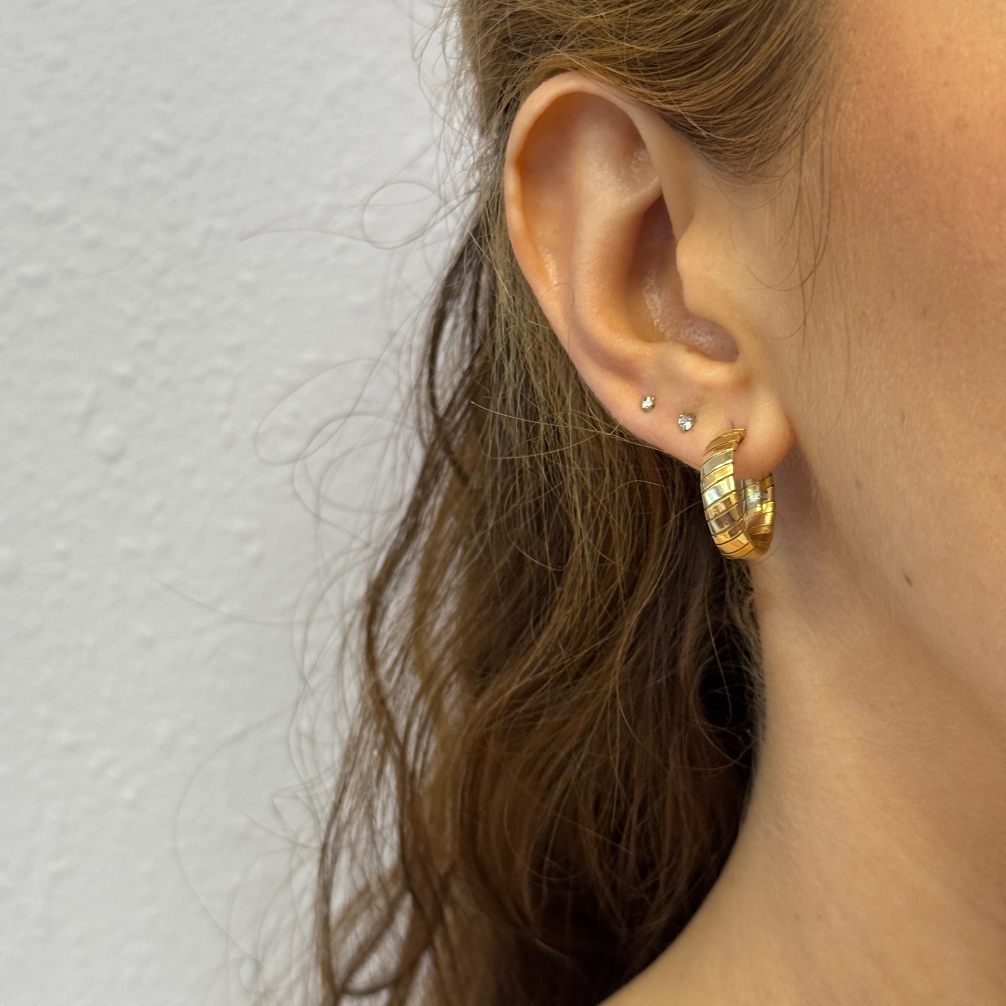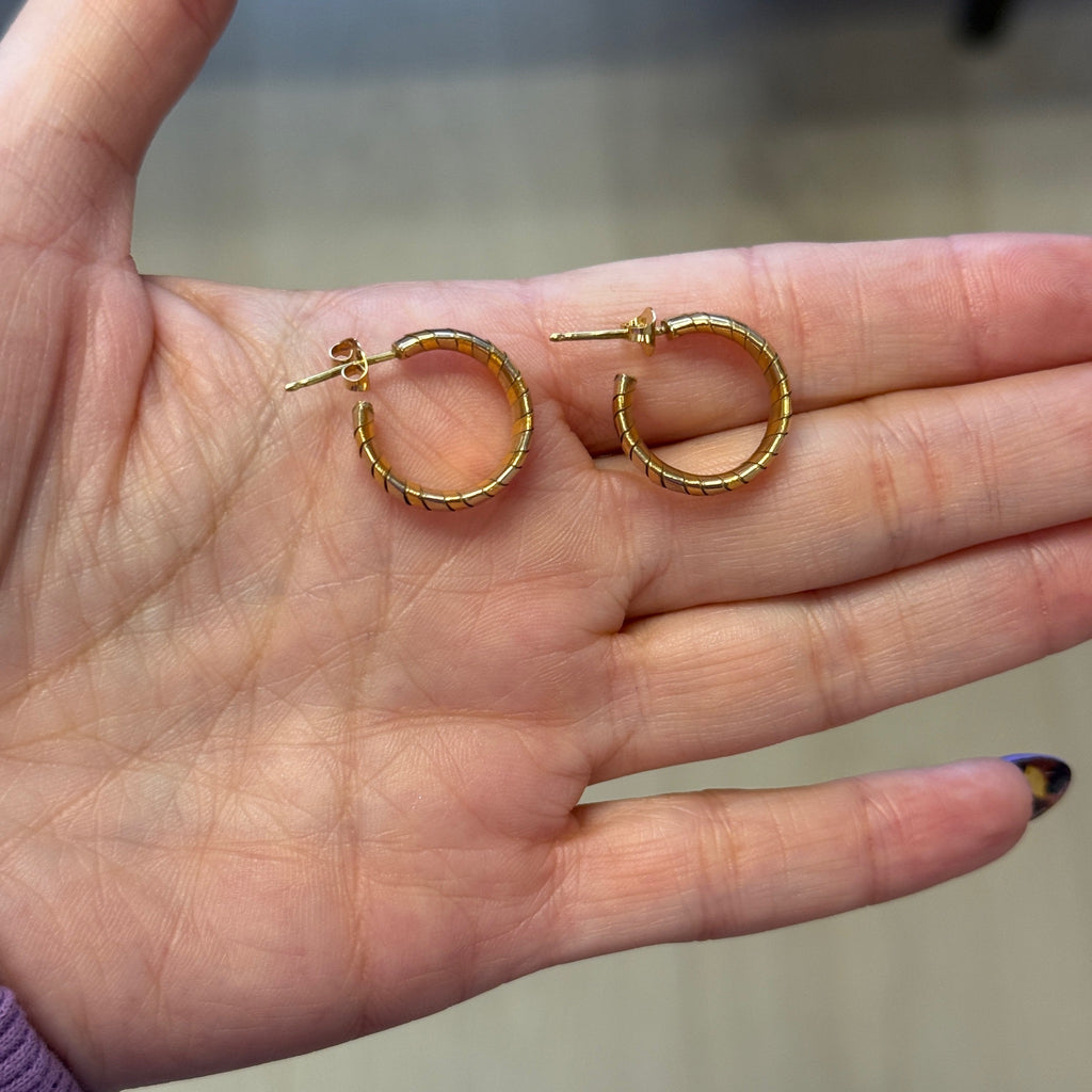 18K Two Tone Tubogas Earrings is backordered and will ship as soon as it is back in stock.