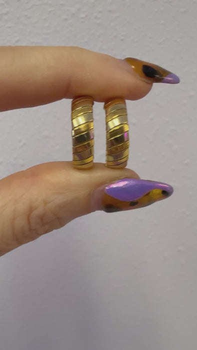 Vintage Italy 18K Yellow and White Gold Open Back Tubogas Earrings
