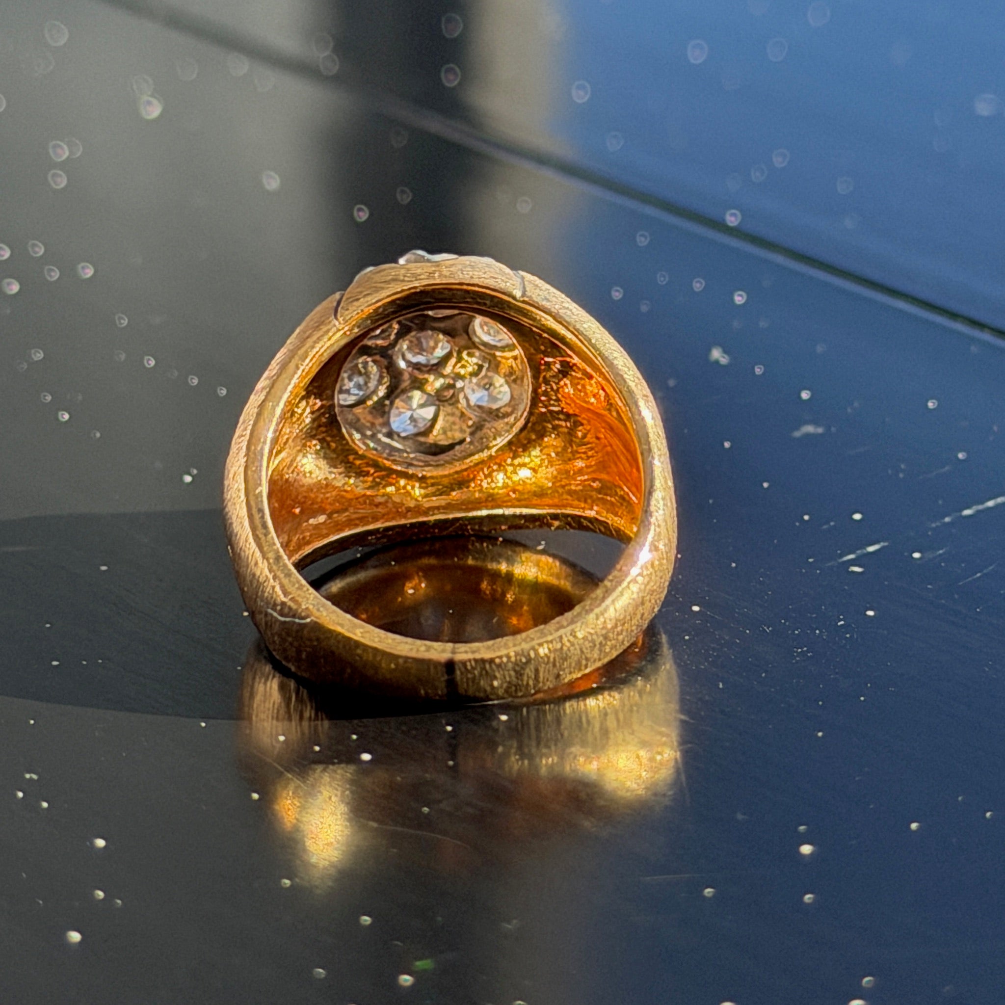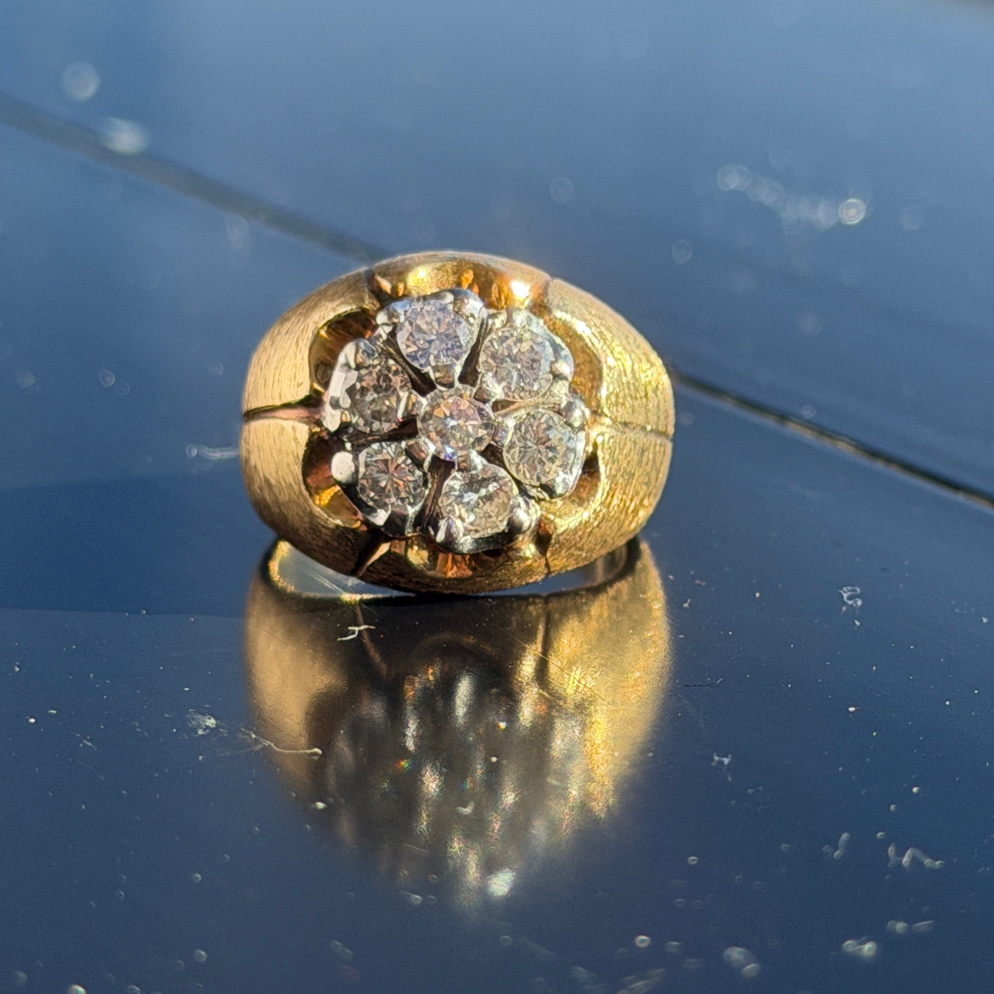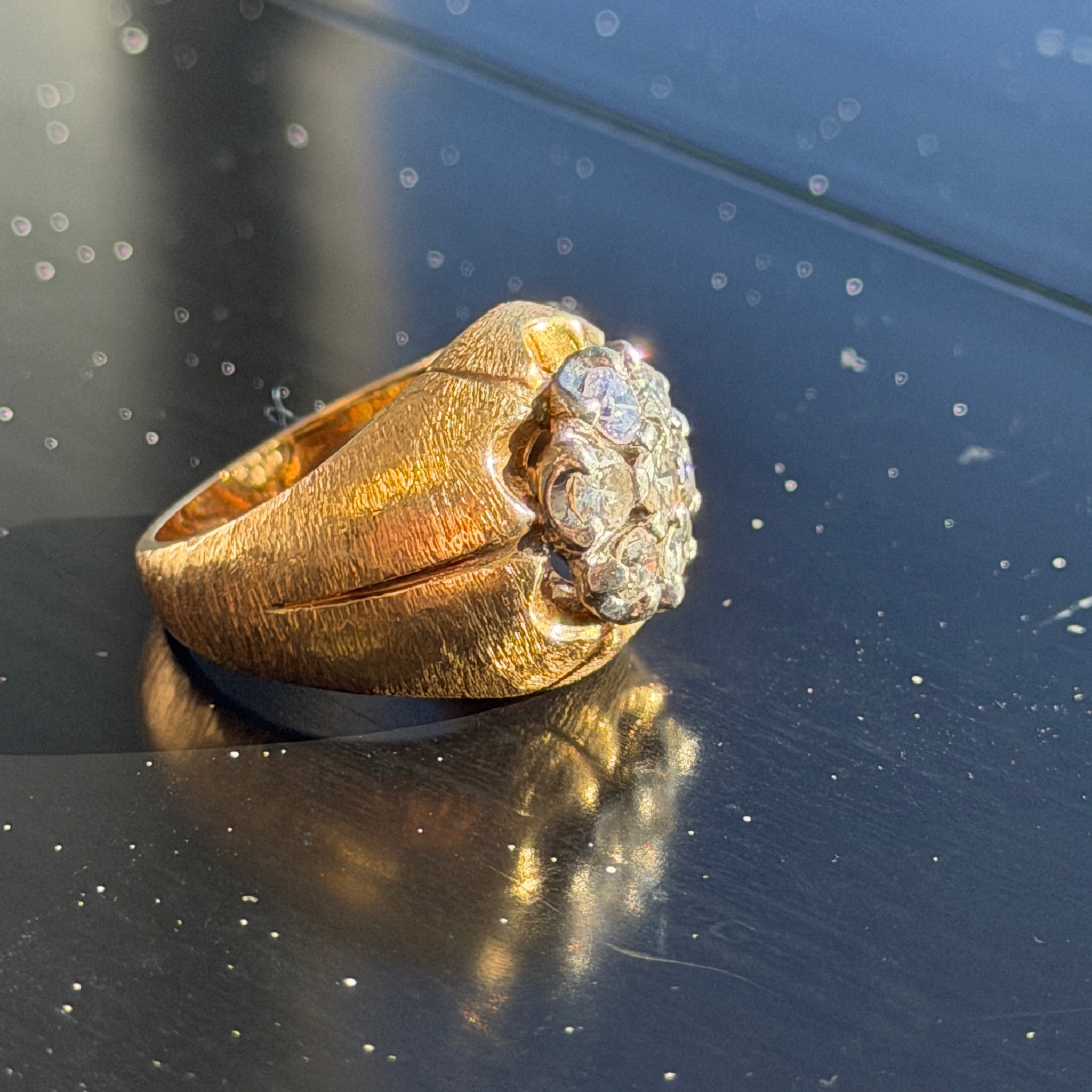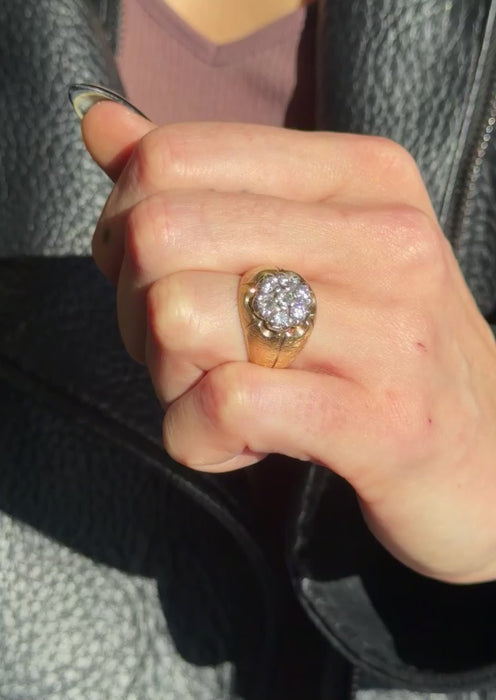 Vintage 14K Yellow Gold Chunky Gold Diamond Flower Ring with super sparkly diamonds.