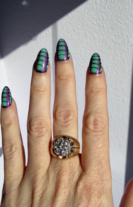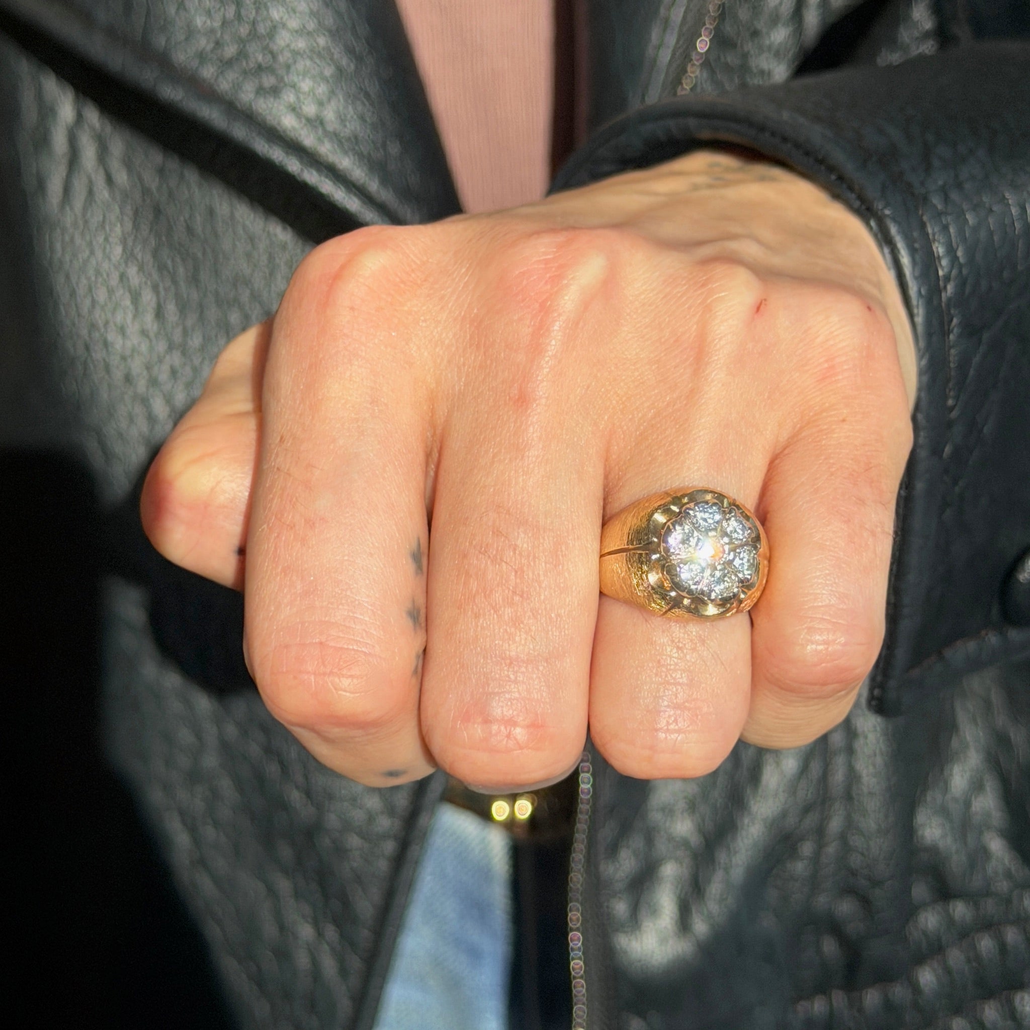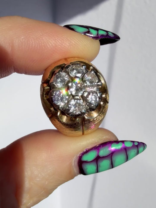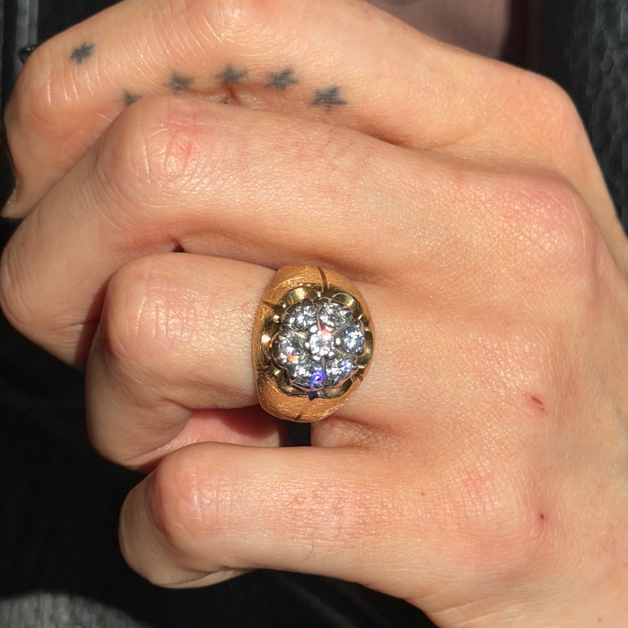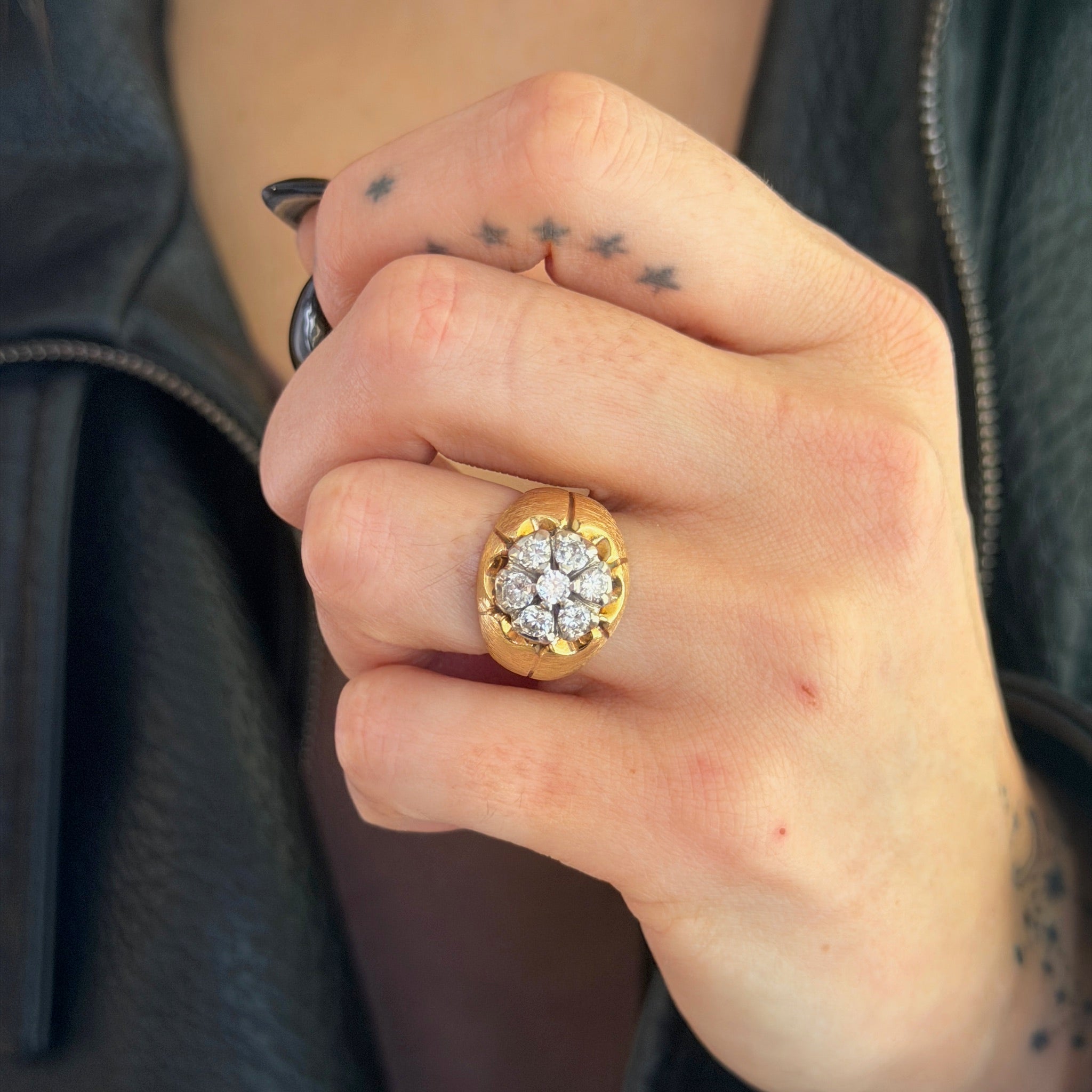Vintage 14K Yellow Gold Chunky Gold Diamond Flower Ring with super sparkly diamonds.