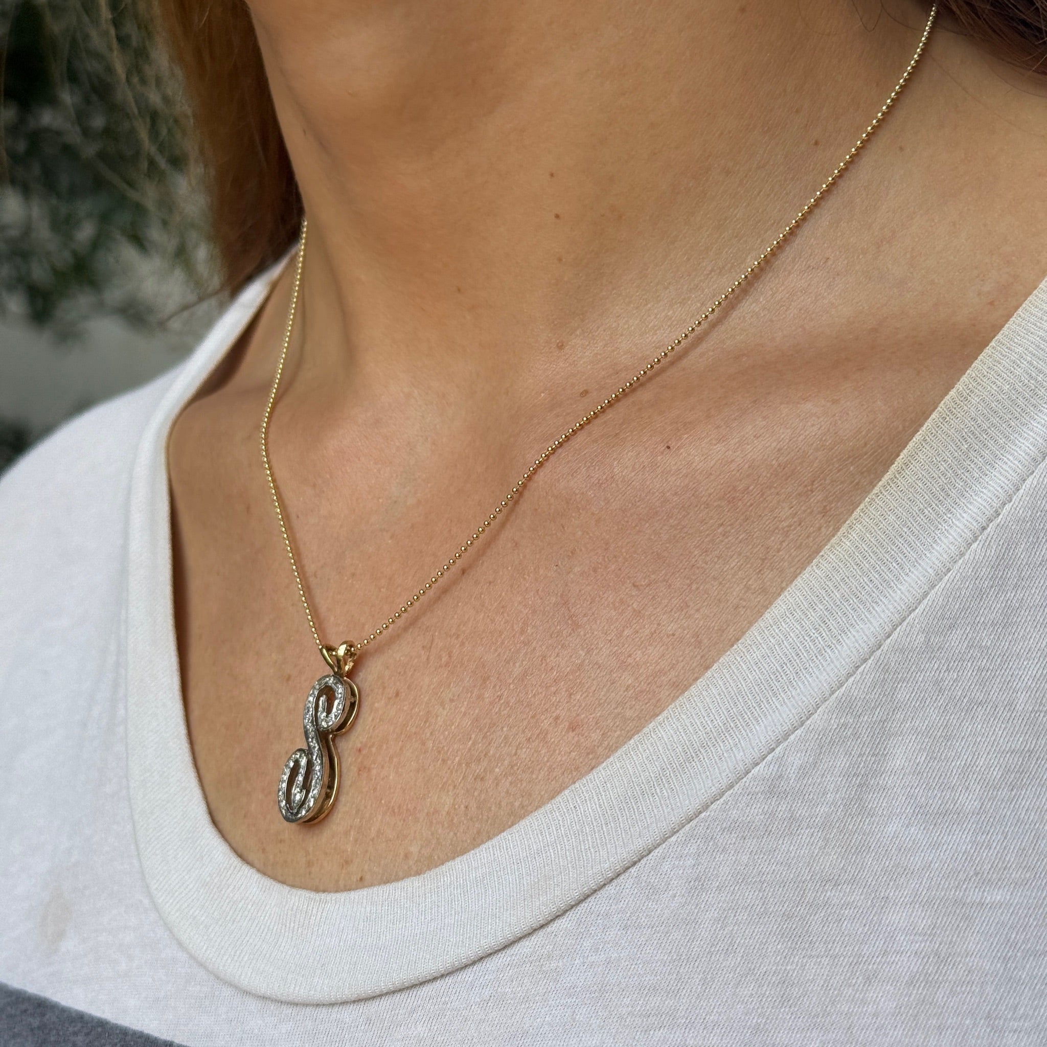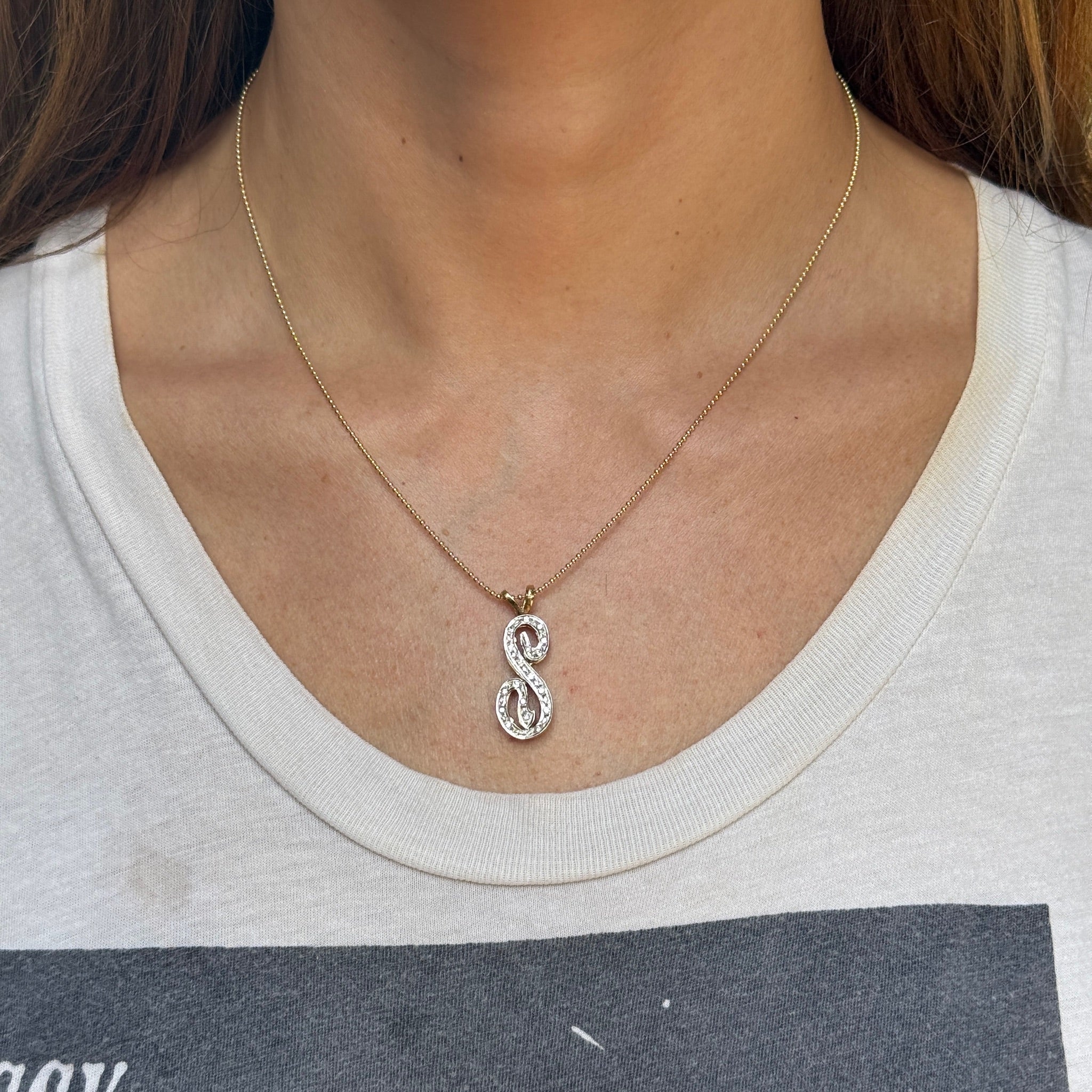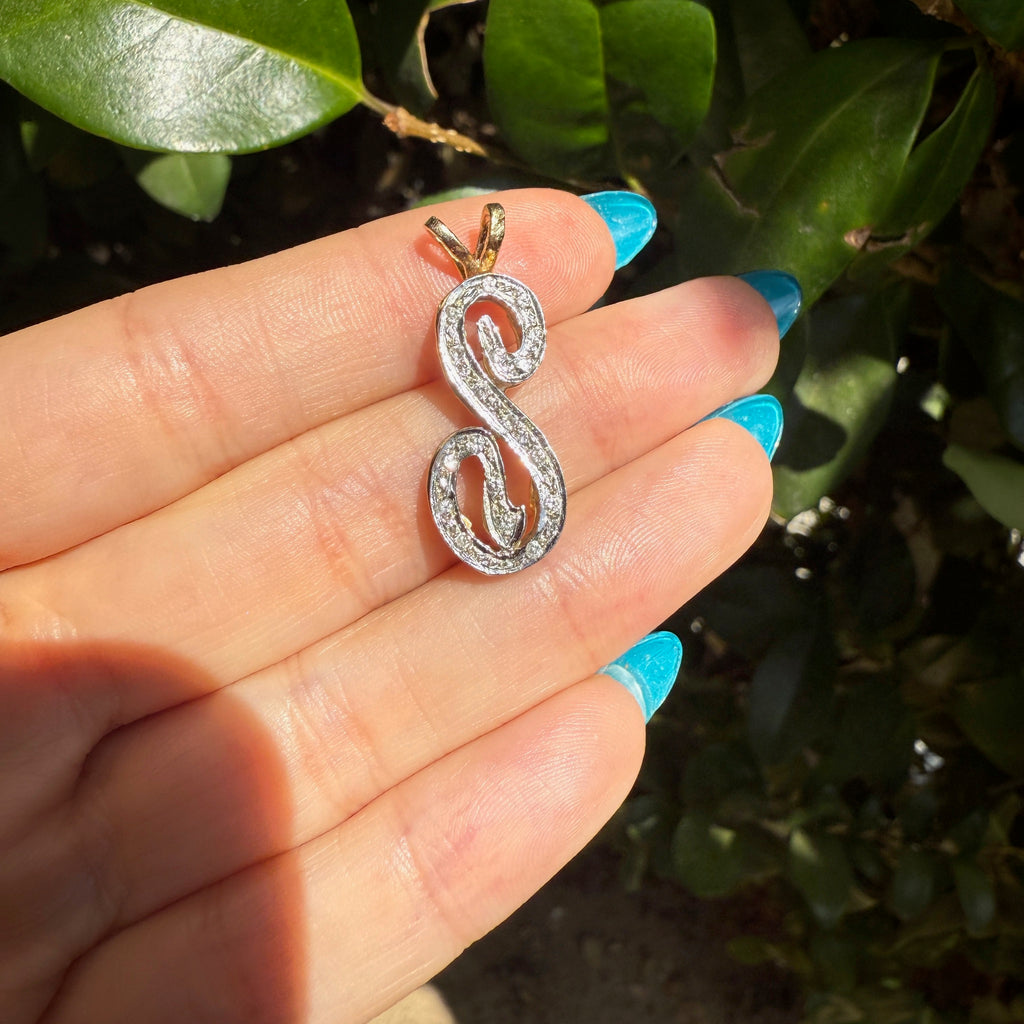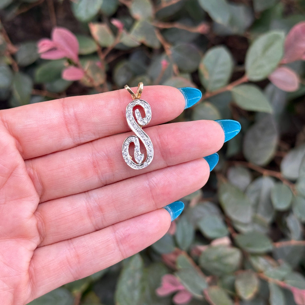 Vintage 14K Yellow Gold Diamond "S" Charm