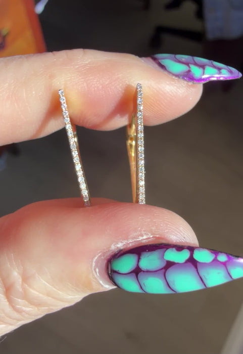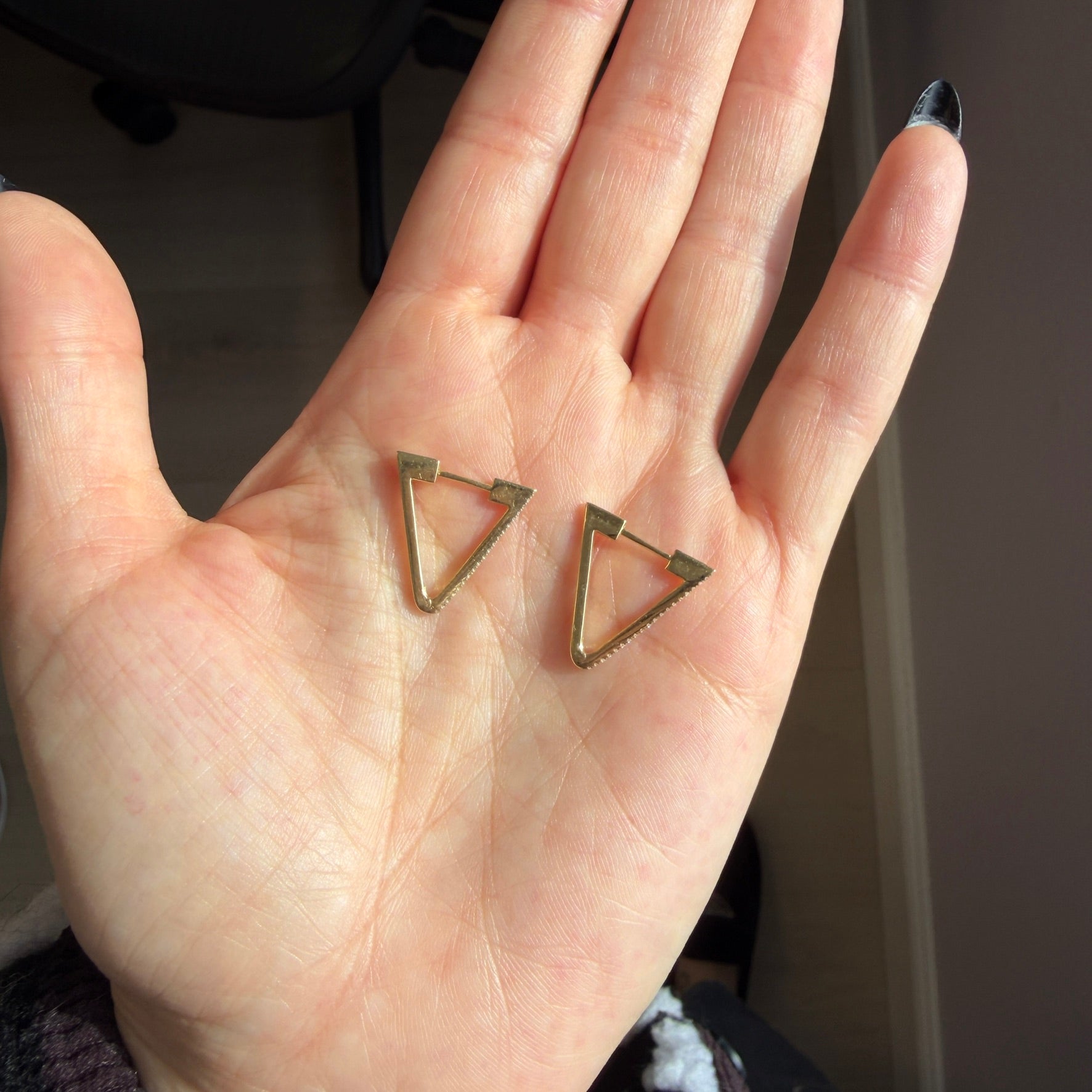 14K Yellow Gold Diamond Triangle Shaped Huggies