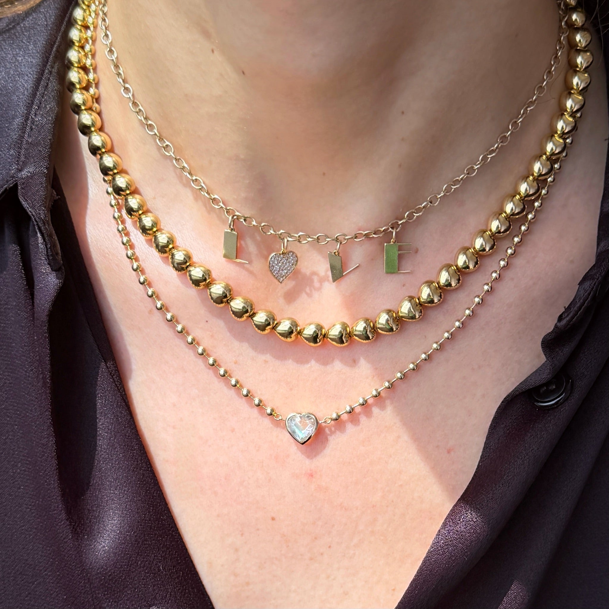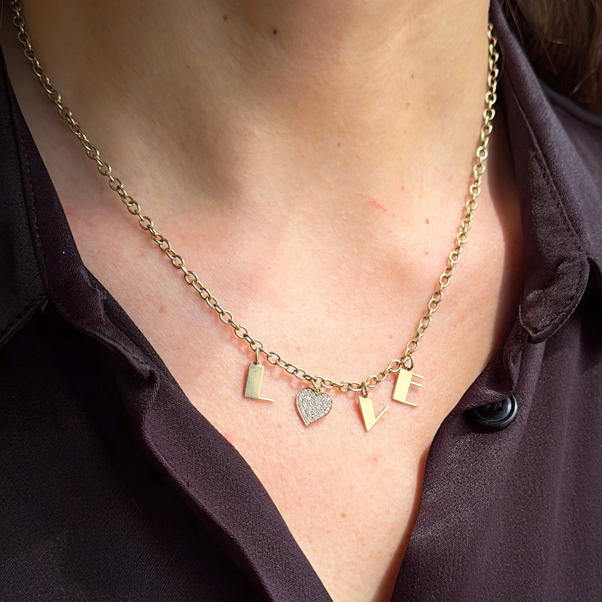 Estate 14K Yellow Gold "Love" Necklace by Designer Sydney Evan. Chain is Solid. Heart has pave diamonds. Wear it solo, or in a stack.