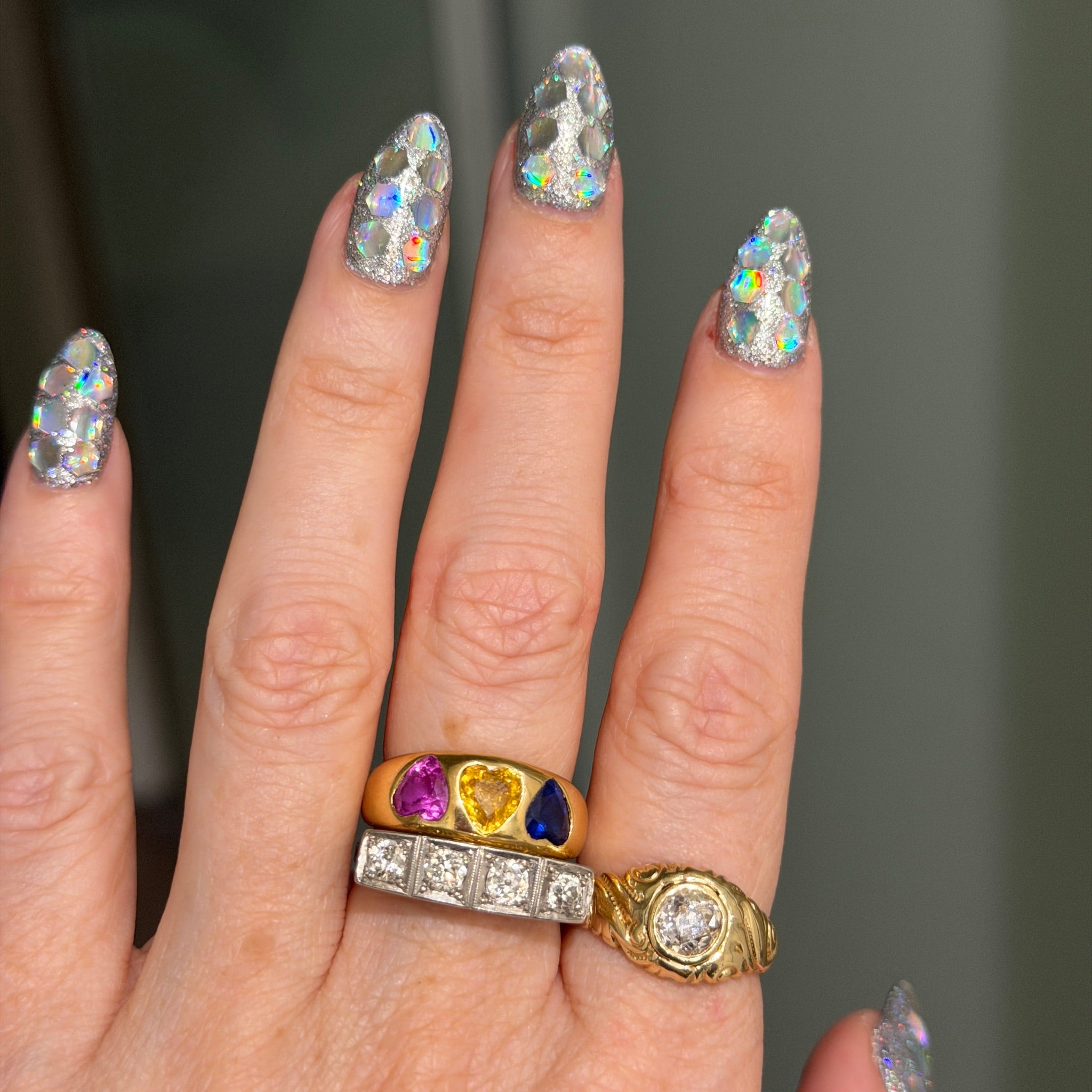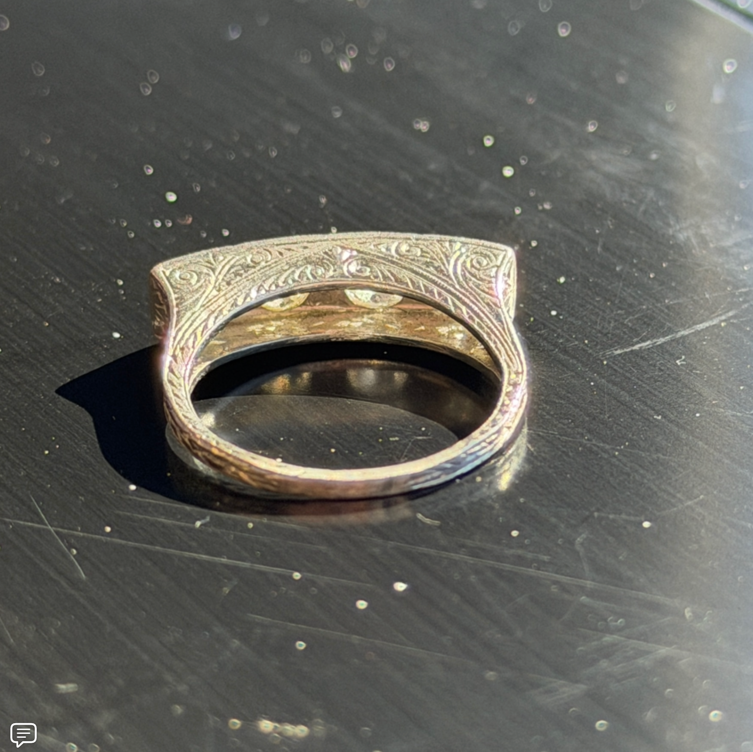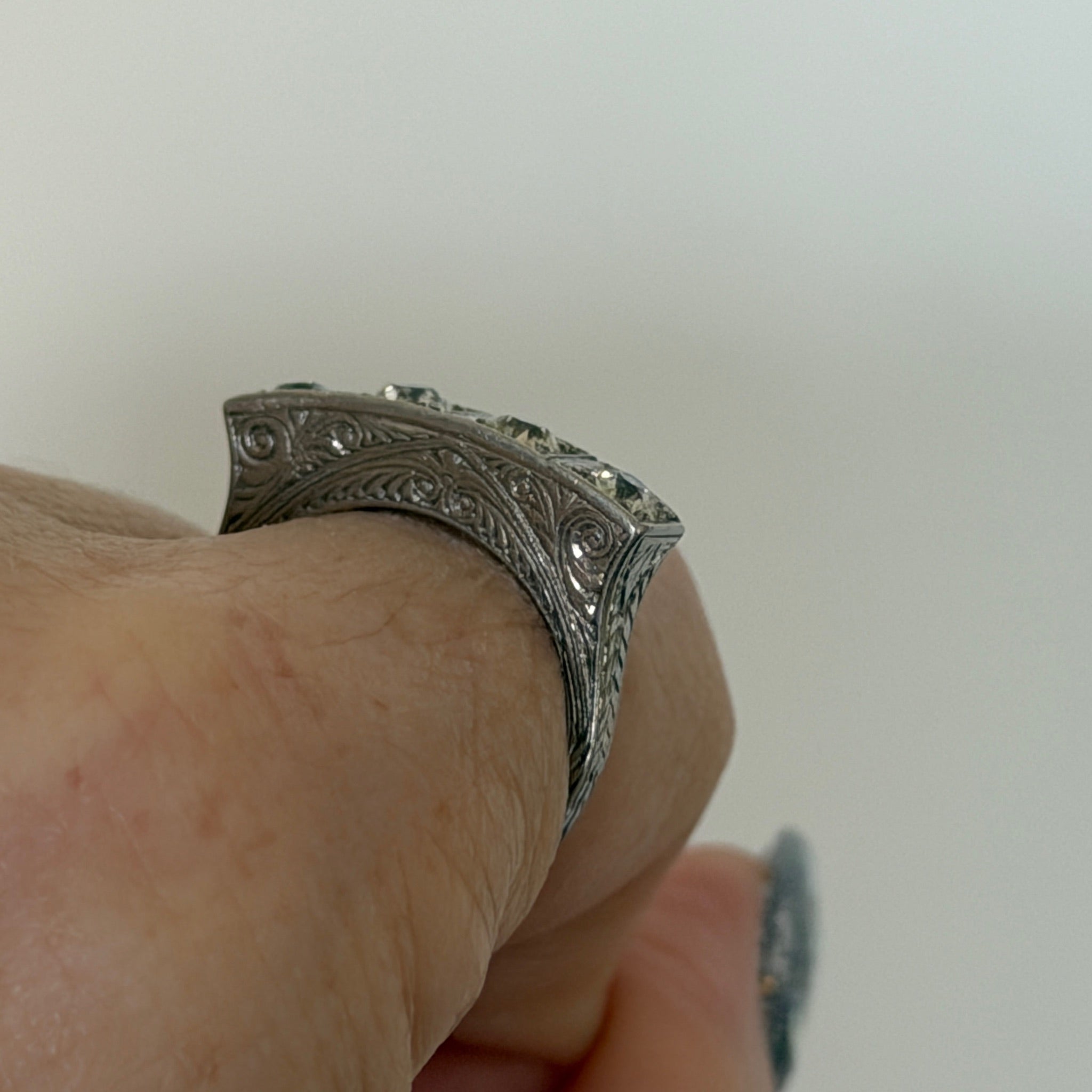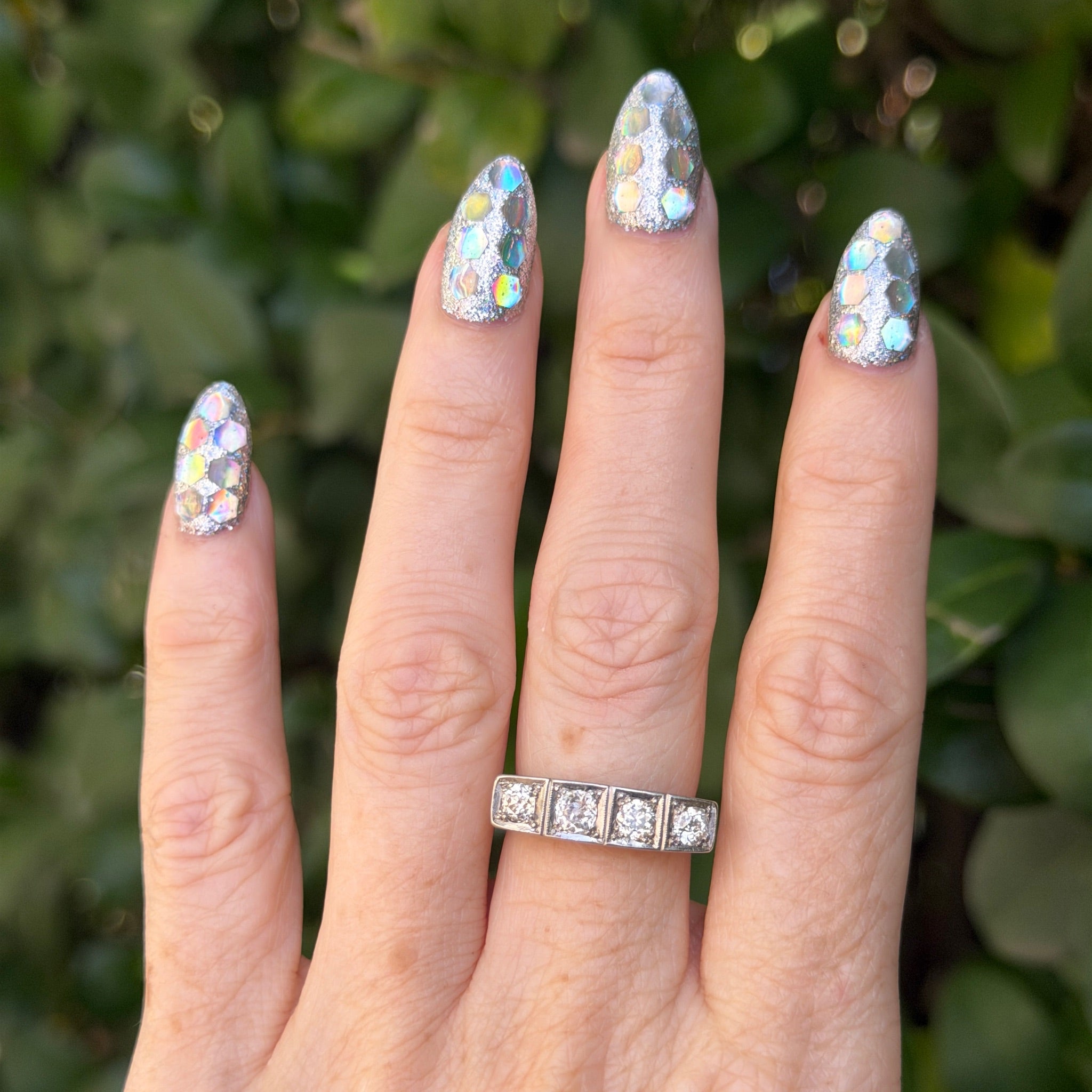 Antique Platinum Art Deco Ring with Four Old Mine Cut Diamonds