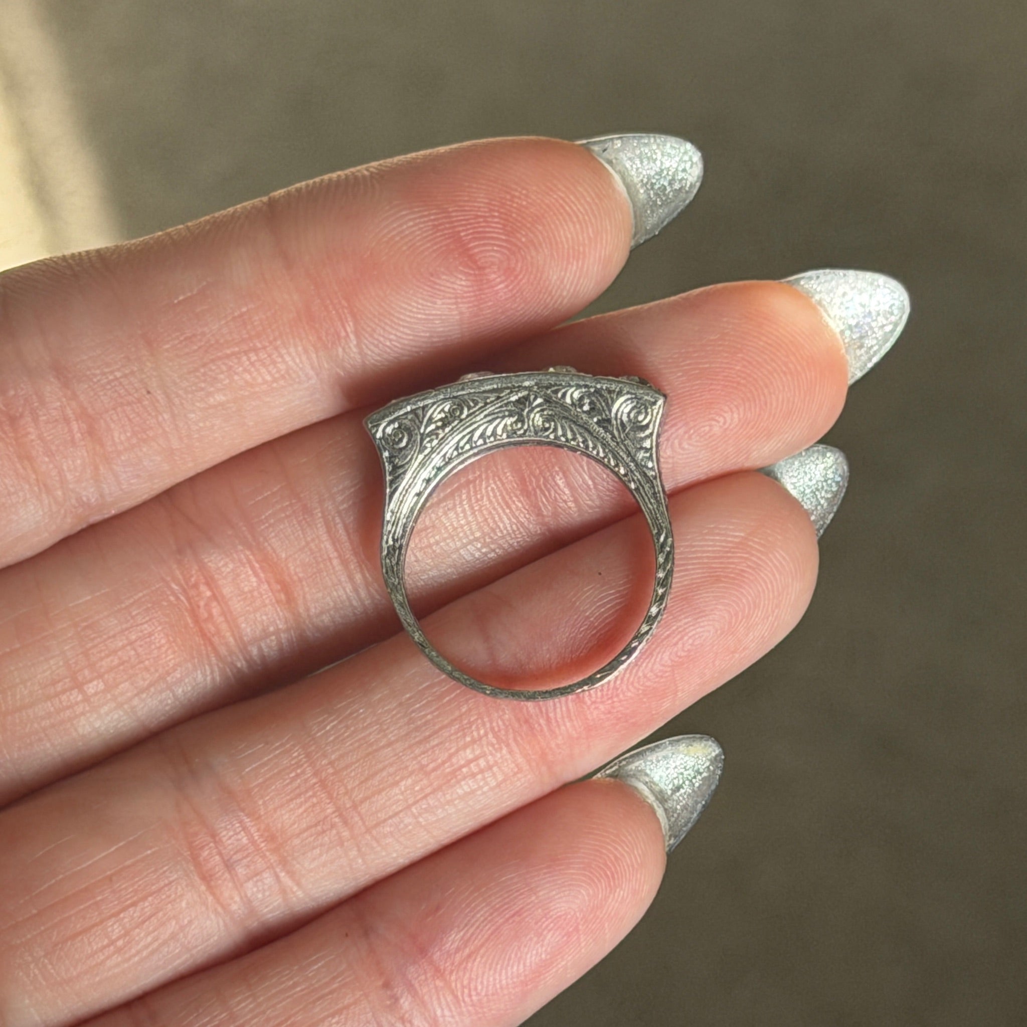 Antique Platinum Ring with Old Mine Cut Diamonds
