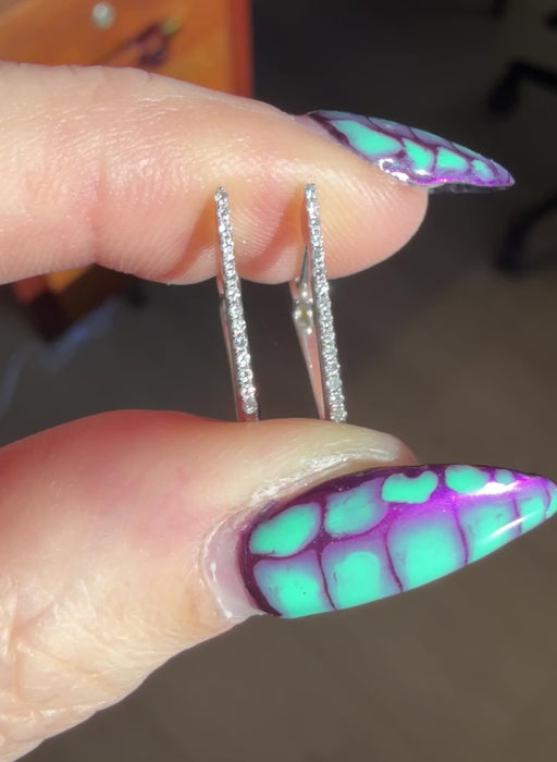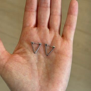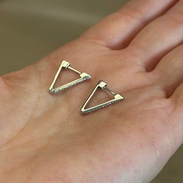 14K White Gold Small Diamond Triangle Shaped Huggies