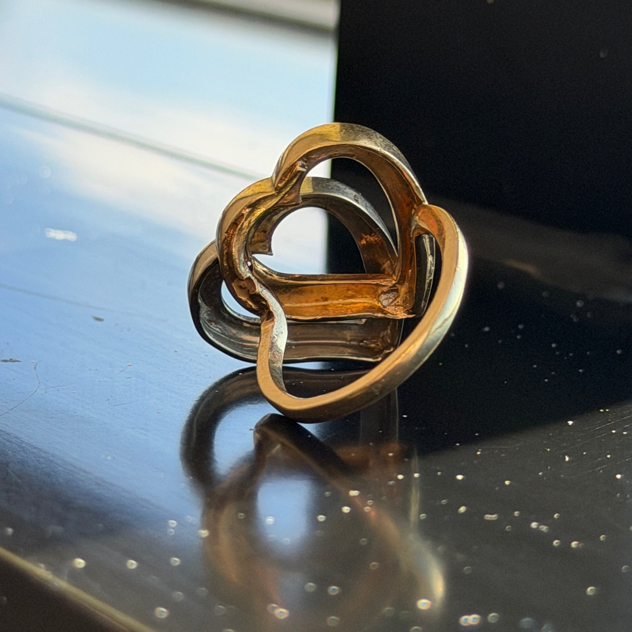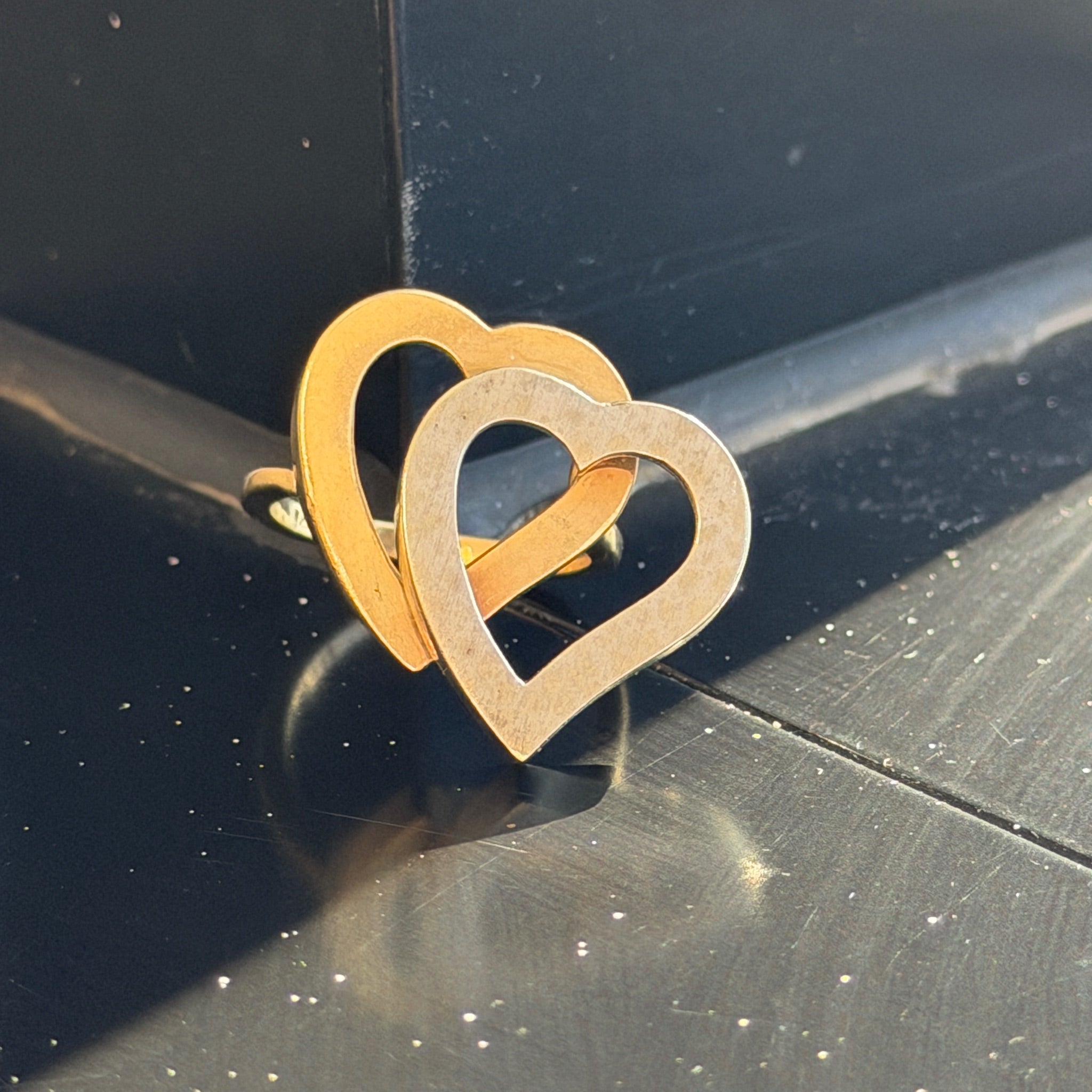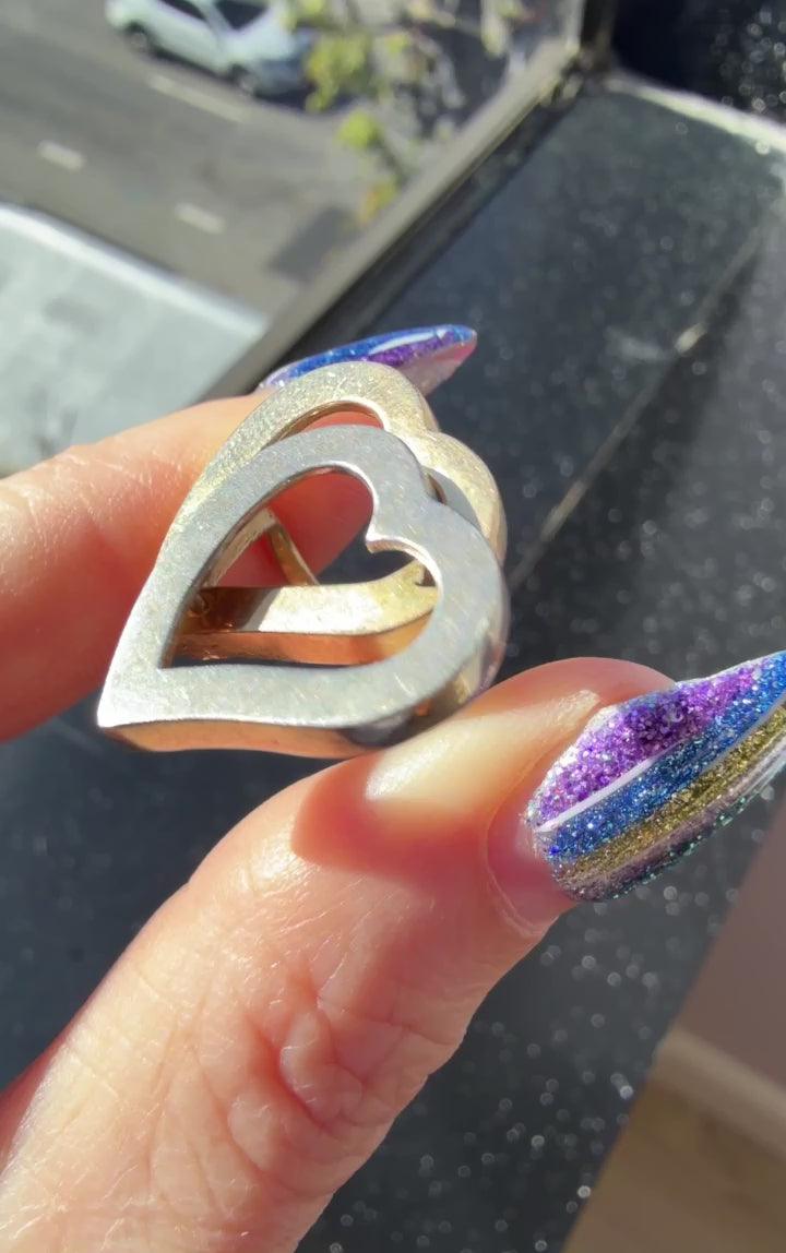Vintage 14K Yellow and White Gold Double Open Heart Ring