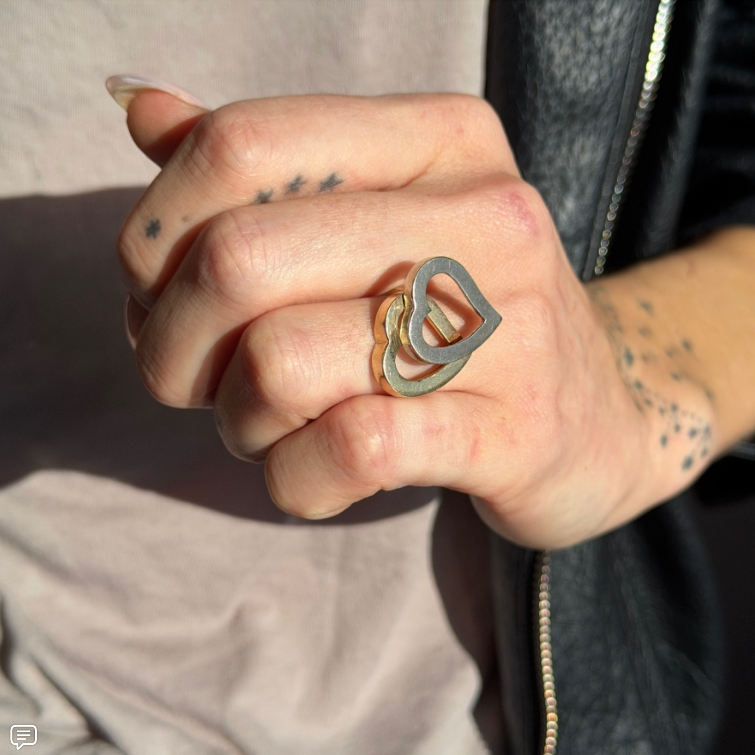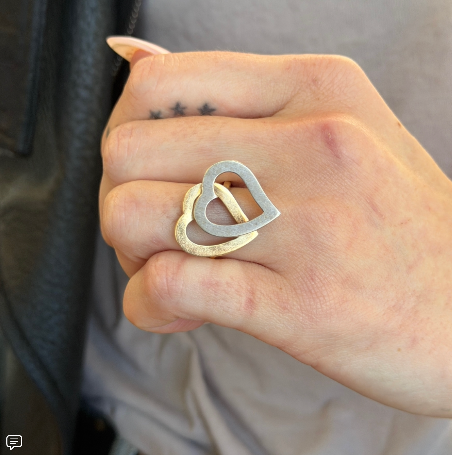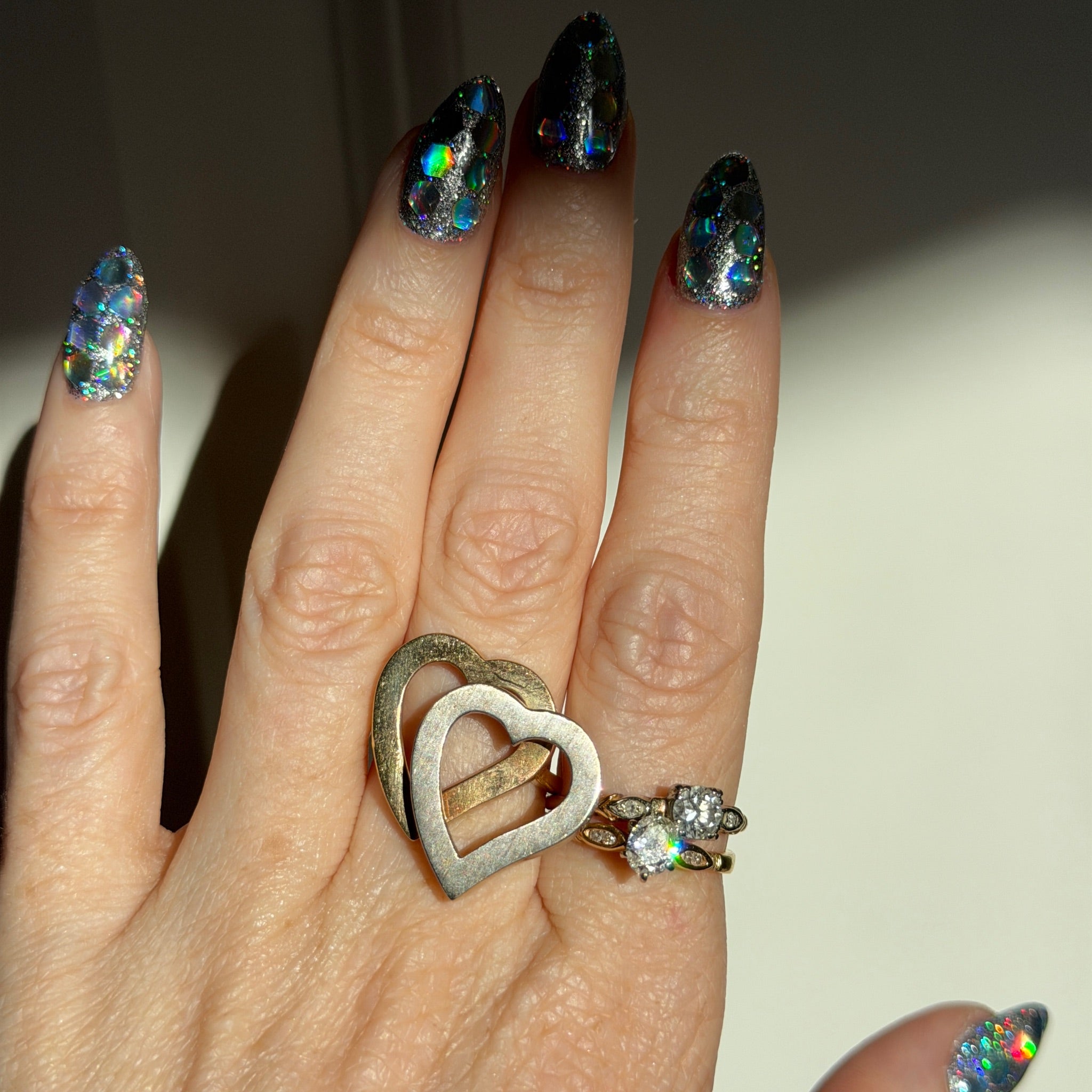 Vintage 14K Yellow and White Gold Double Open Heart Ring